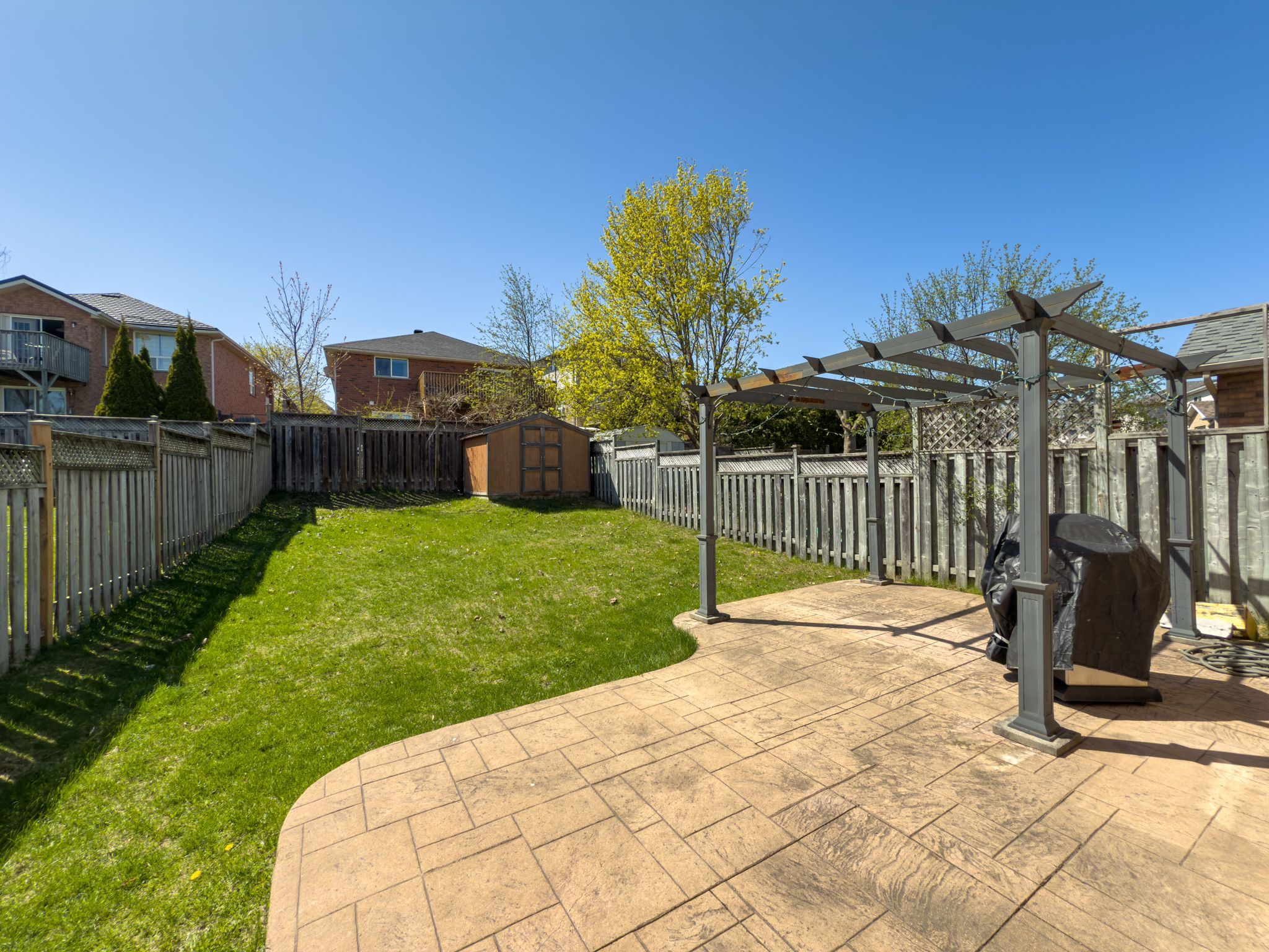 • Fully fenced backyard offers privacy and room for outdoor fun.