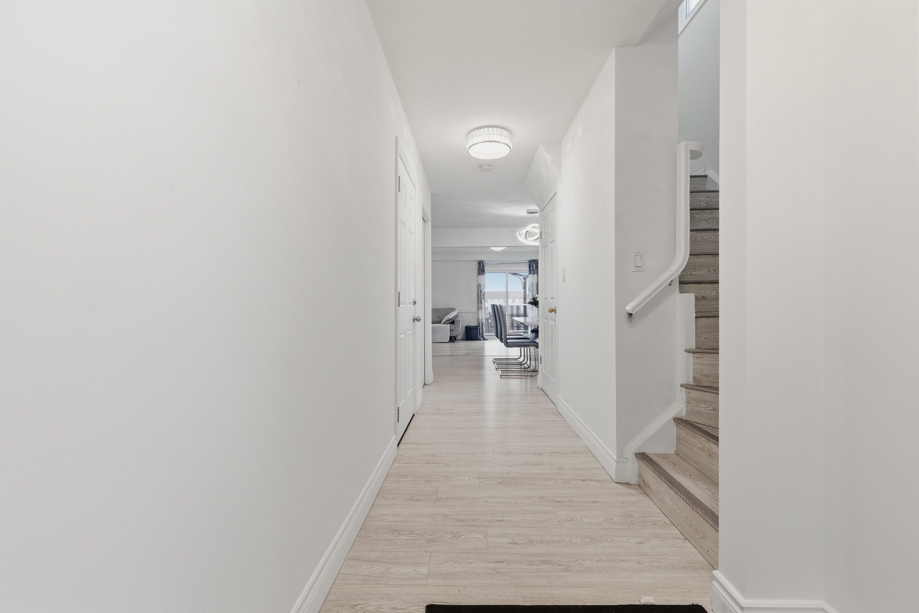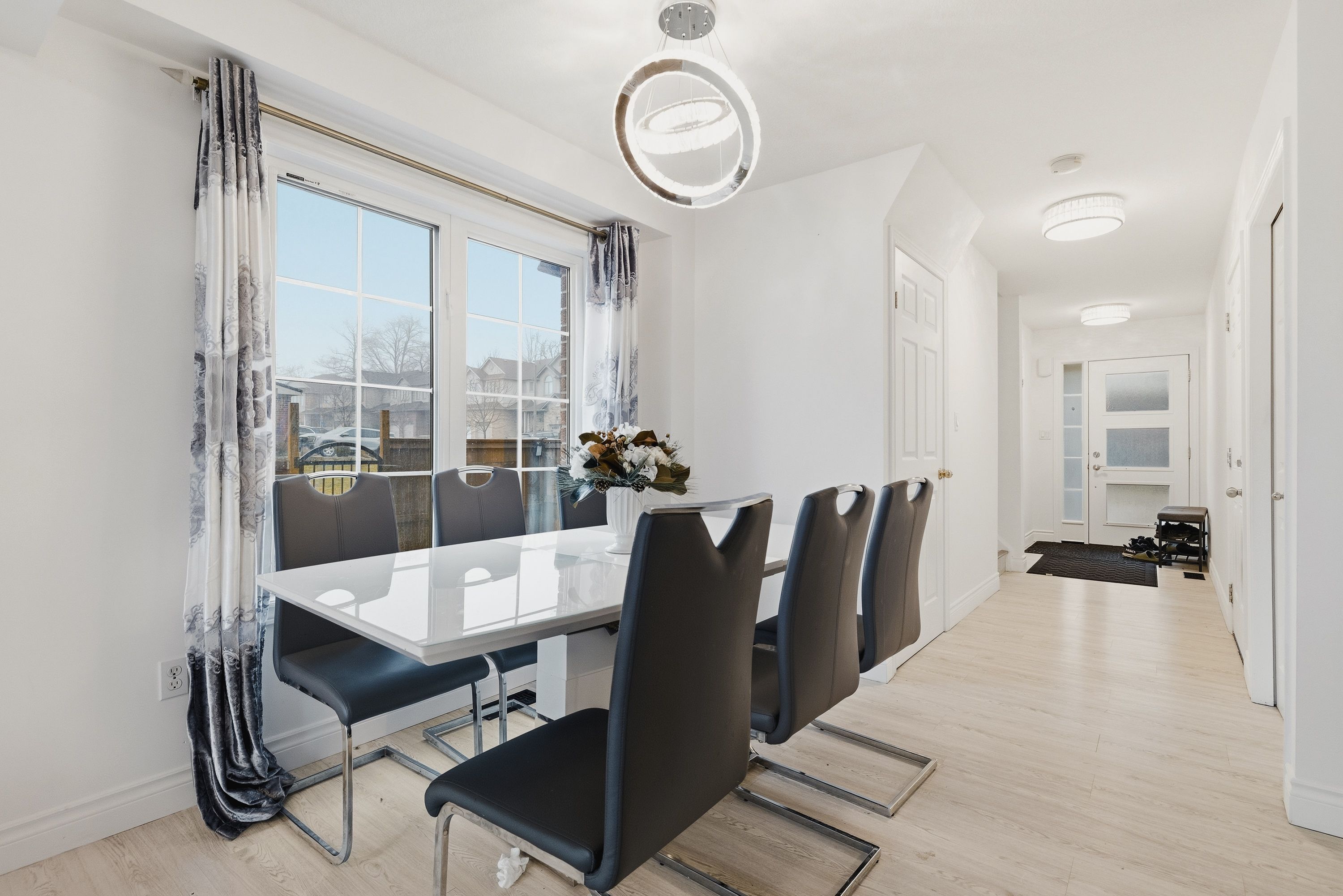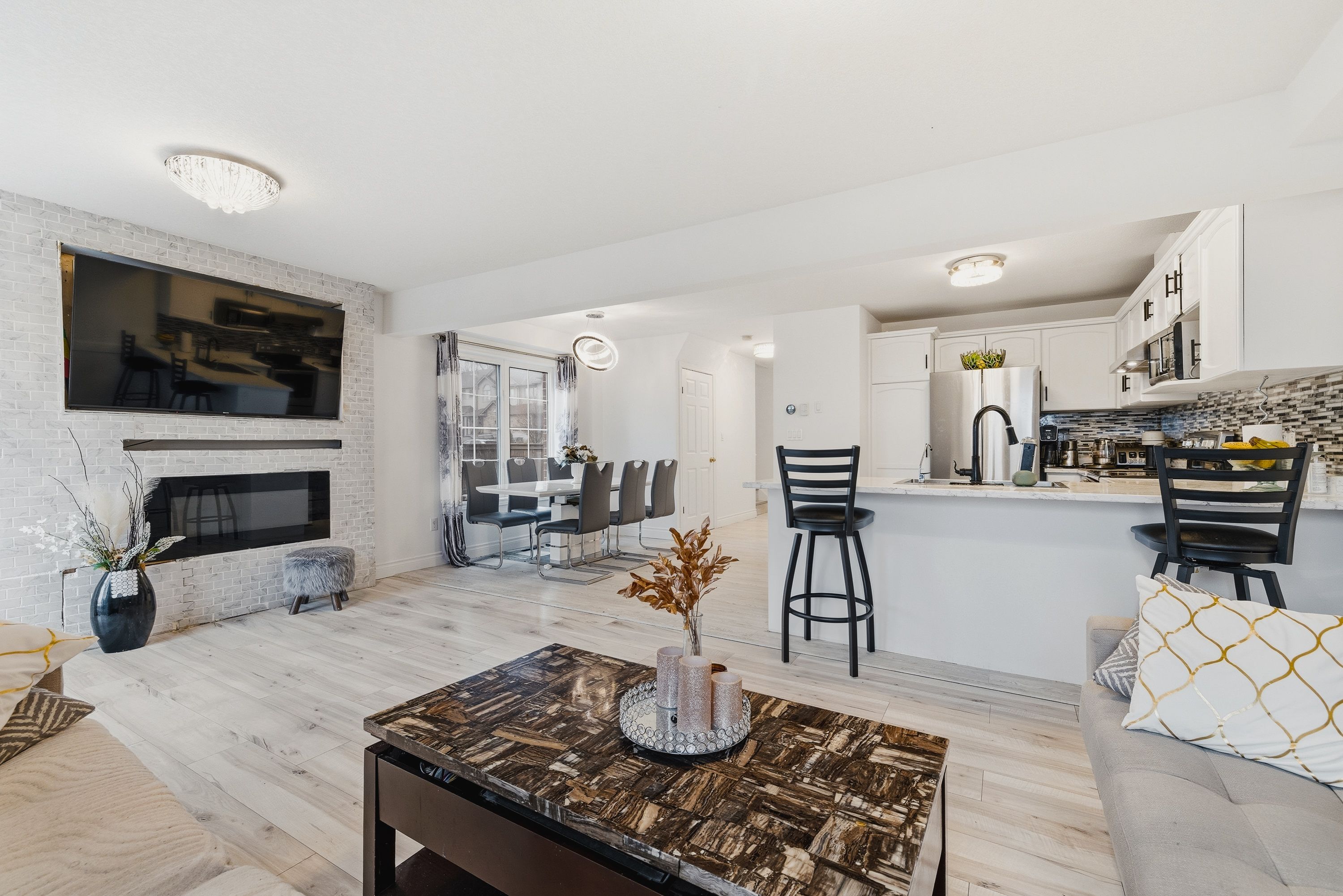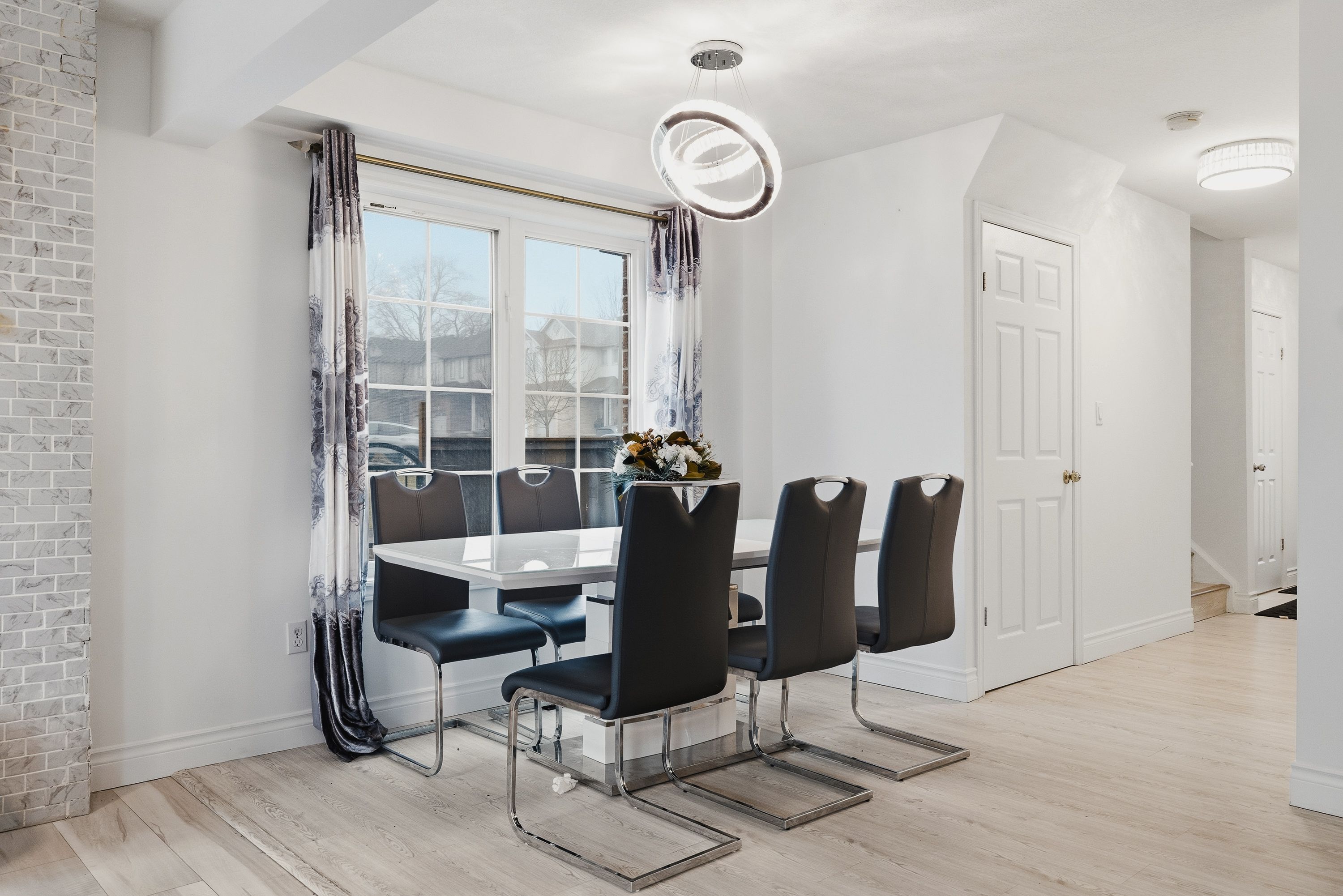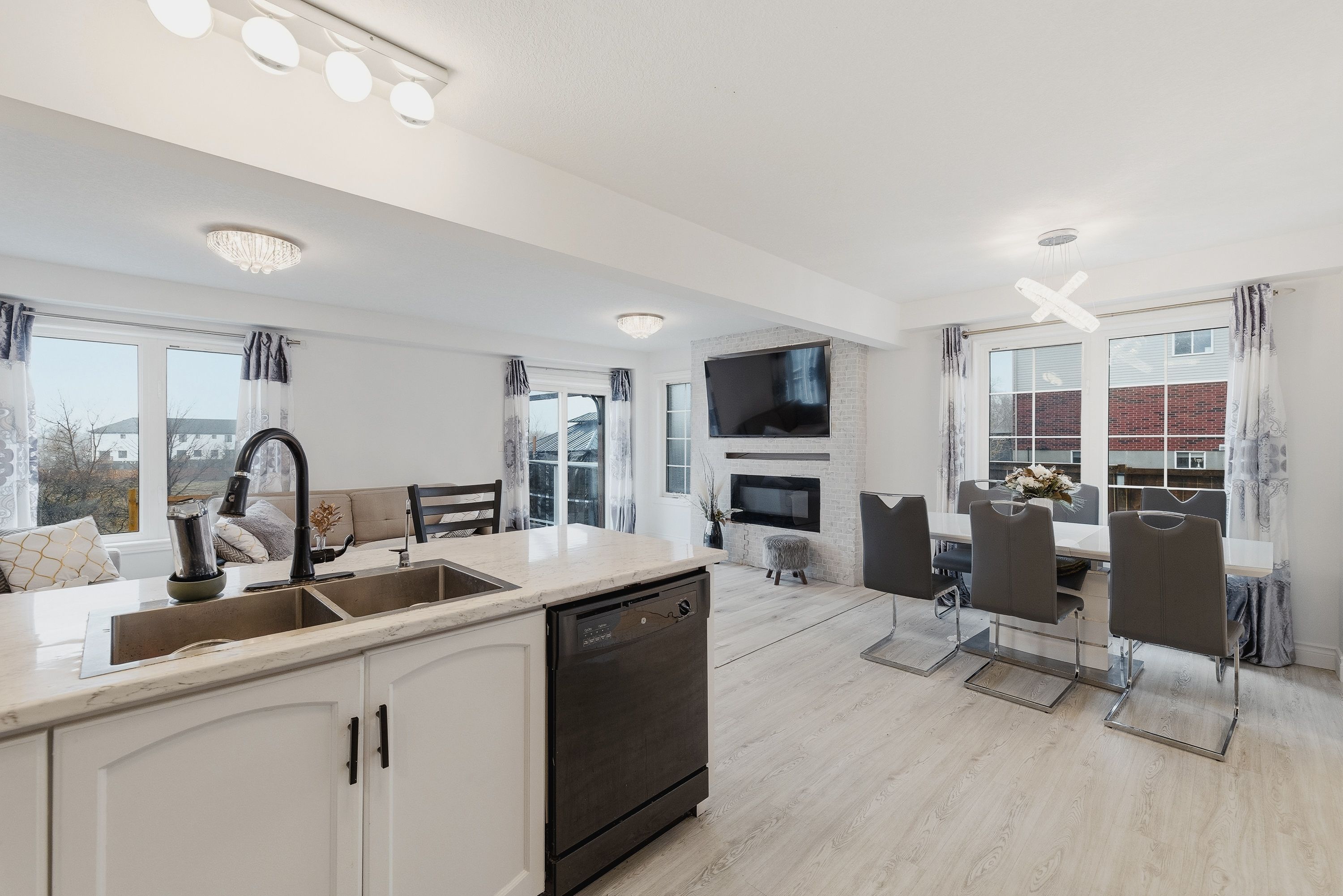 Welcome to this luxurious freehold corner townhouse at 147 kemp crescent, unit #9, guelph, beautifully built by claysam homes and located in a quiet, family-friendly neighbourhood. Kemp crescent is known for its peaceful residential setting with easy access to parks, schools, shopping, and everyday amenities, while still being just a short drive from guelph's vibrant downtown, restaurants, and entertainment options. This stunning end-unit home offers extra privacy and natural light, highlighted by a charming wrap-around covered porch and an open-concept main floor designed for comfortable living and entertaining. The bright living and dining space flows seamlessly into the modern open kitchen with breakfast bar, creating the perfect layout for gatherings with family and friends. Large windows and beautiful finishes throughout make the home feel warm, spacious, and inviting. The home features 3+1 bedrooms and 3. 5 bathrooms, providing plenty of room for growing families or multi-generational living. The look-out basement with two large above-grade windows is filled with natural light and includes a separate entrance, offering excellent potential for an in-law suite or additional living space. Step outside to enjoy the beautiful backyard backing onto a green area, perfect for relaxing or entertaining. A 10x12 deck extends your living space outdoors, ideal for summer barbecues and gatherings. Additional highlights include freshly painted interiors, new furnace (2025), new refrigerator (2025), owned water softener, electric stove with gas line available, and an asphalt driveway. With its corner location, thoughtful layout, and desirable features, this home offers a rare opportunity to enjoy comfortable and flexible living in one of guelph's welcoming neighbourhoods.