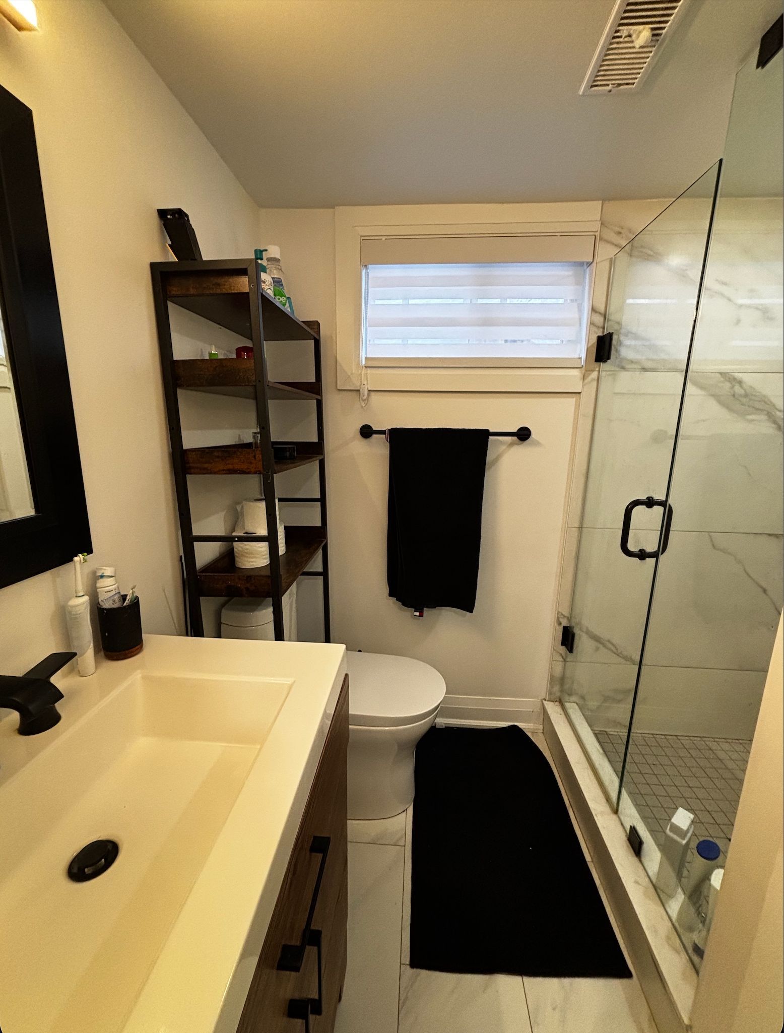 • In-suite laundry and a modern 3-piece bathroom with walk-in shower.