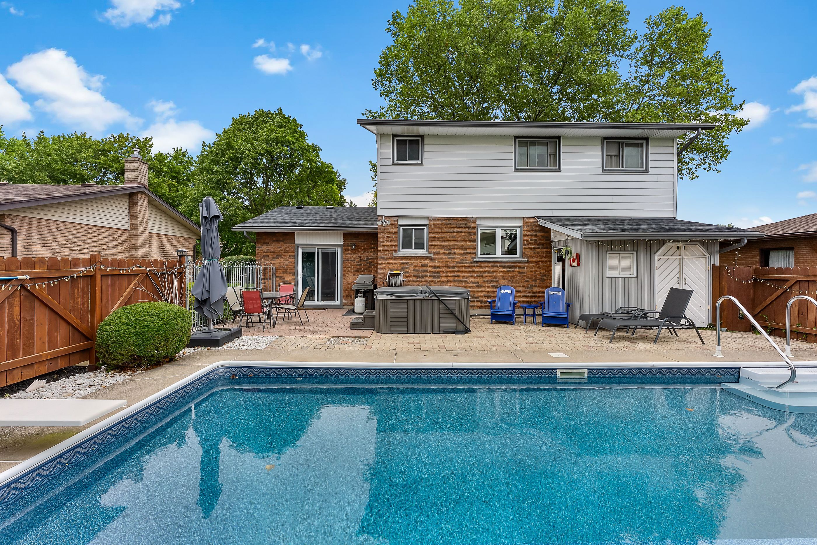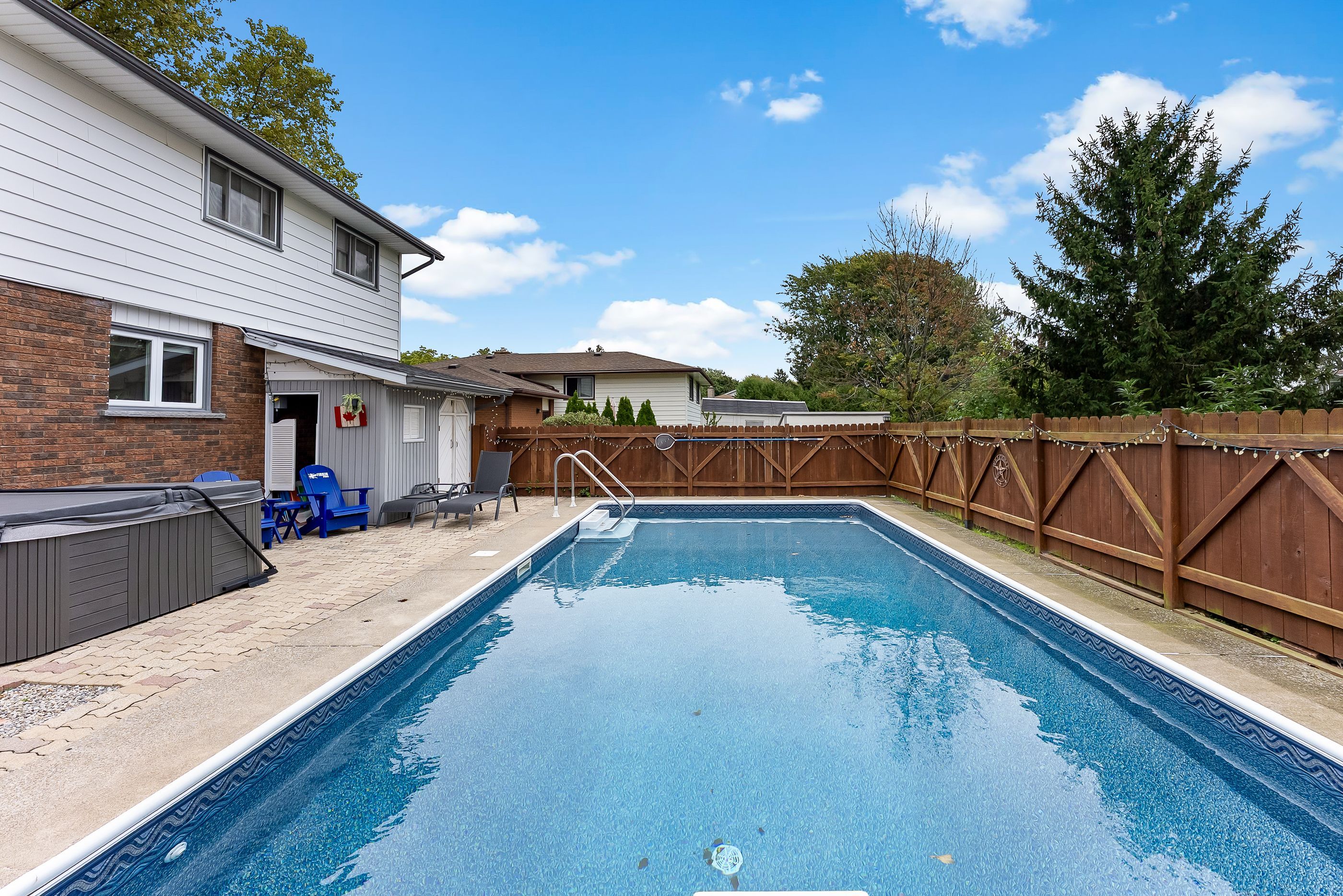 Welcome to 147 loyalist drive in welland, a well-maintained two-storey home offering three bedrooms, two bathrooms, and a fully finished basement. The main living spaces are bright and functional, providing plenty of room for everyday living and entertaining, while the finished lower level adds valuable additional space for a variety of needs. The backyard features an in-ground chlorine pool, hot tub, and garden, creating a private outdoor setting to enjoy throughout the warmer months. Important updates have already been completed, including a pool heater (2020), new liner (2023), and pump (2023). All pool equipment is included, along with the robot cleaner. The hot tub was installed in 2020. Additional peace of mind comes from the roof replacement in 2025, complete with a 30-year transferable shingle warranty, along with a new electrical panel (2020), garage door (2022), and front door (2022). Located close to excellent schools, including approximately a five-minute drive to niagara college, this home is also near the youngs sportsplex and popular walking/cycling routes such as the welland canal trail and the steve bauer trail.
