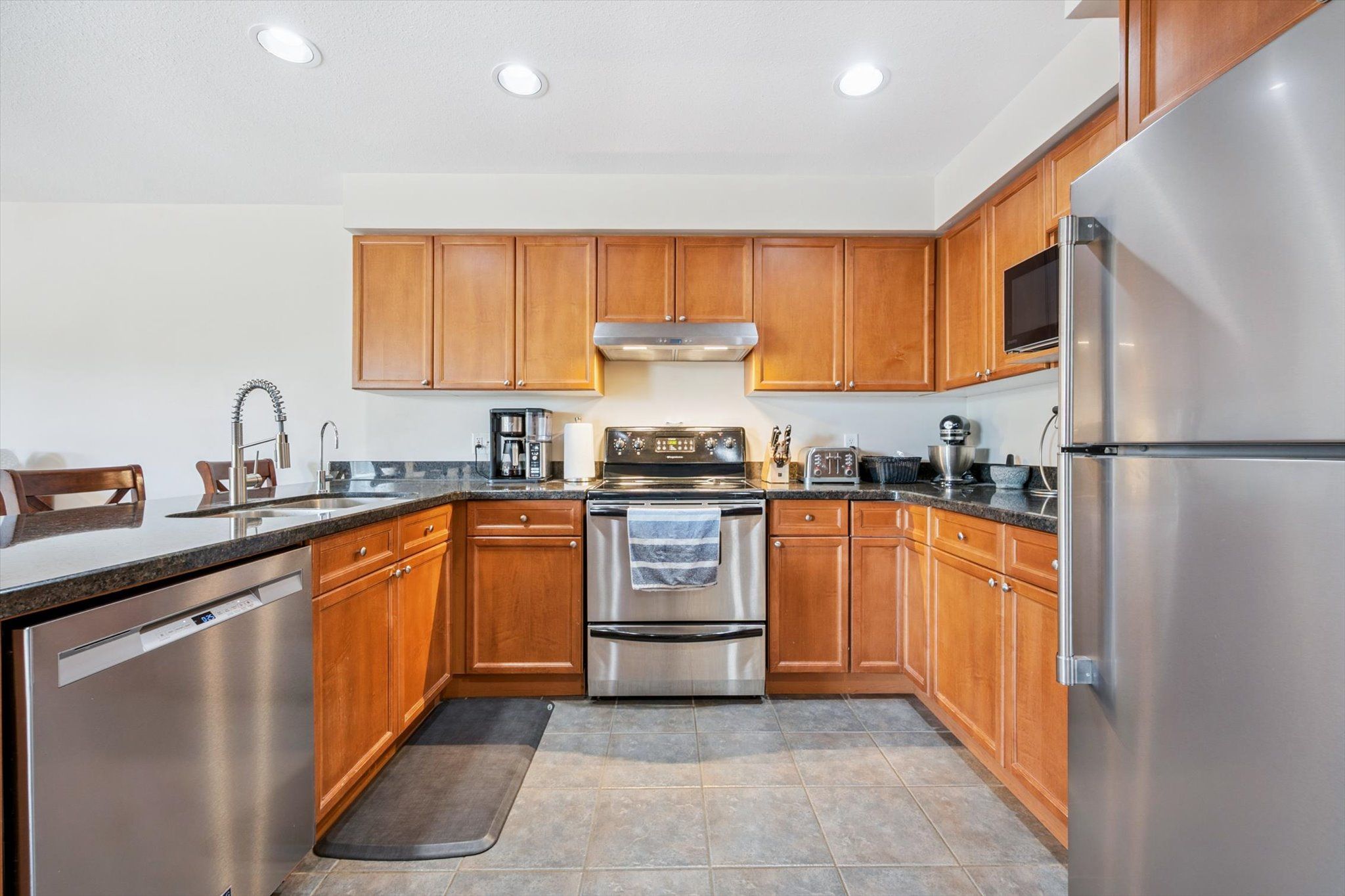 • Open kitchen with granite countertops and breakfast bar for easy meals.