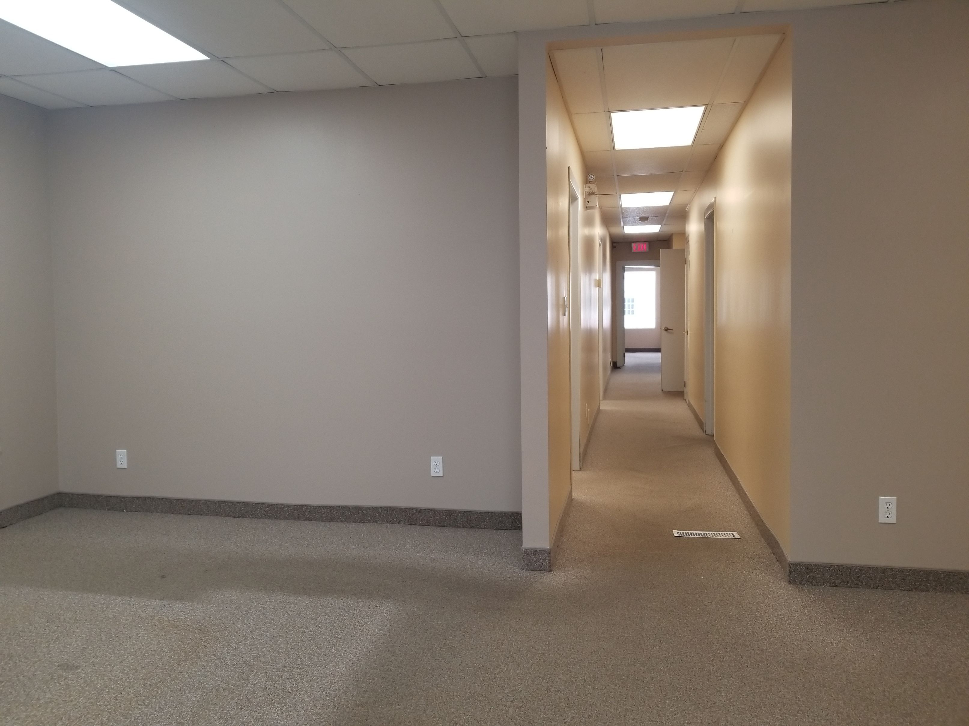 • Includes two private offices, a kitchenette, and a two-piece bath.