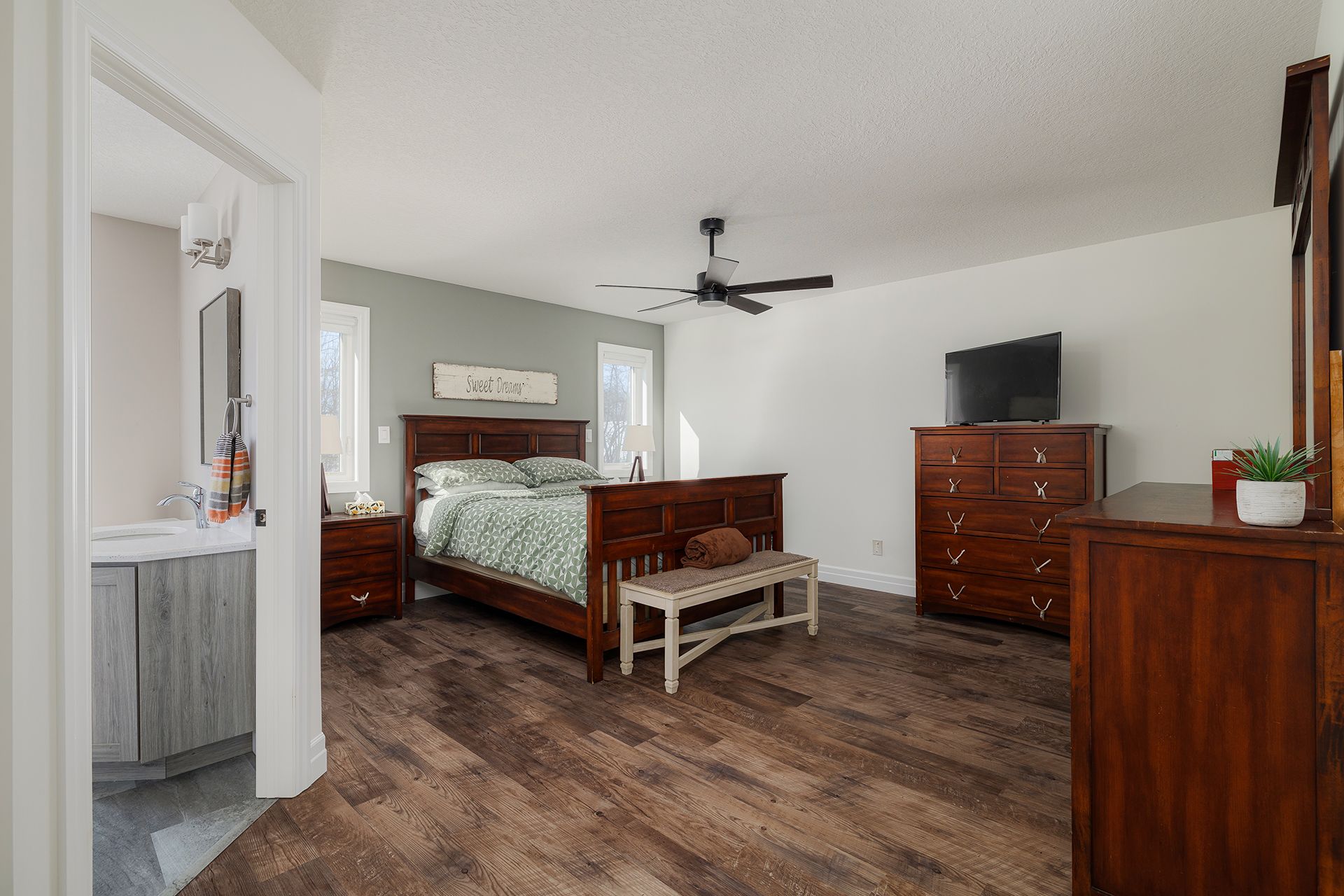 • Primary bedroom features a private en-suite and walk-in closet.