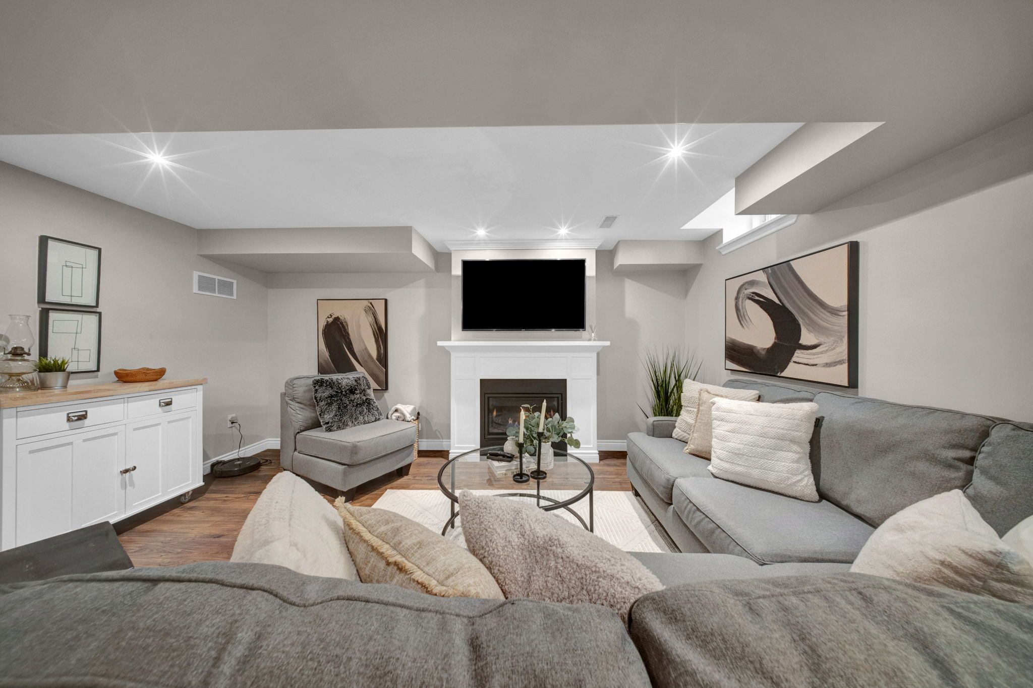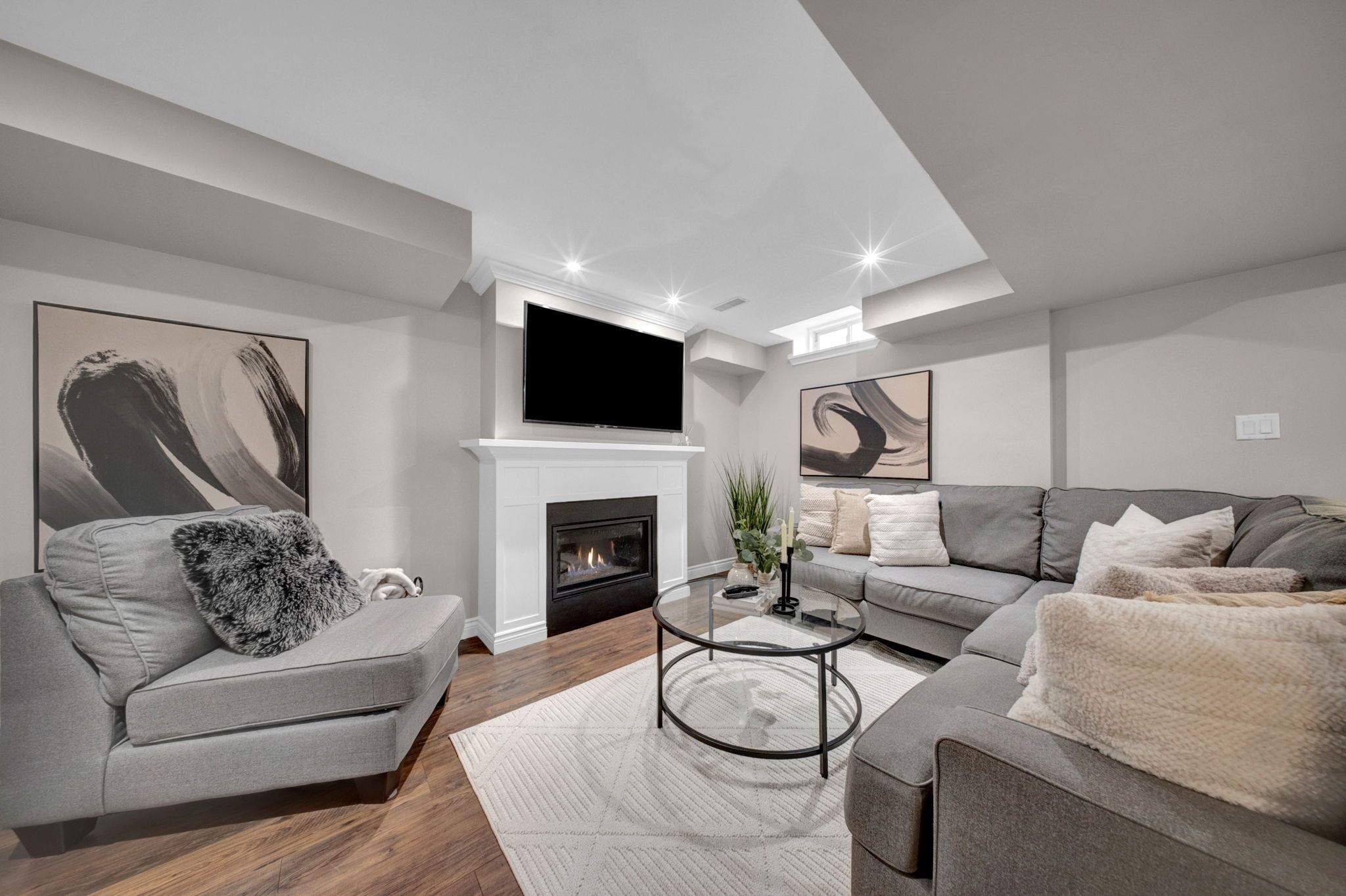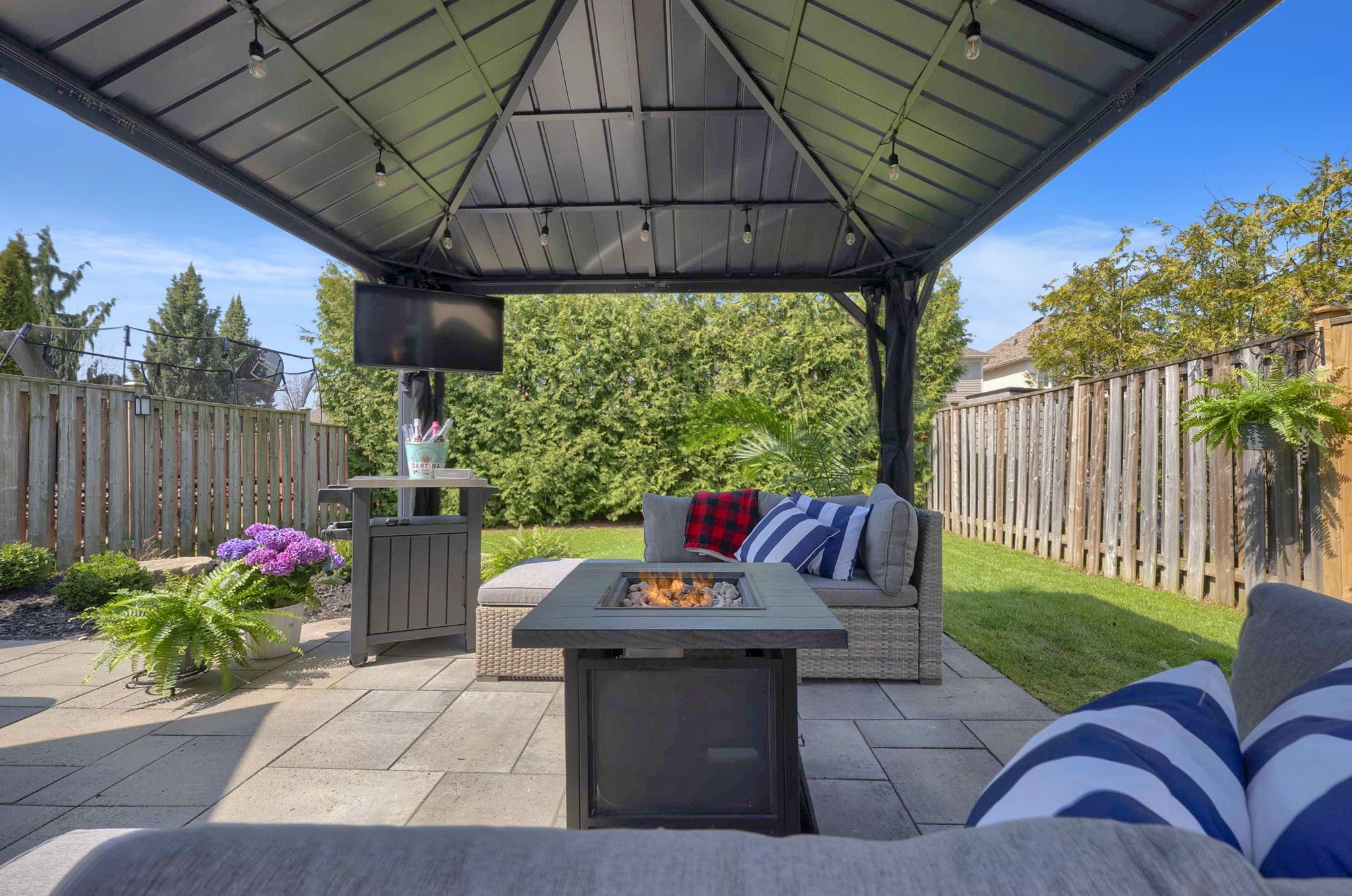• Fully renovated basement with a gas fireplace for cozy gatherings.