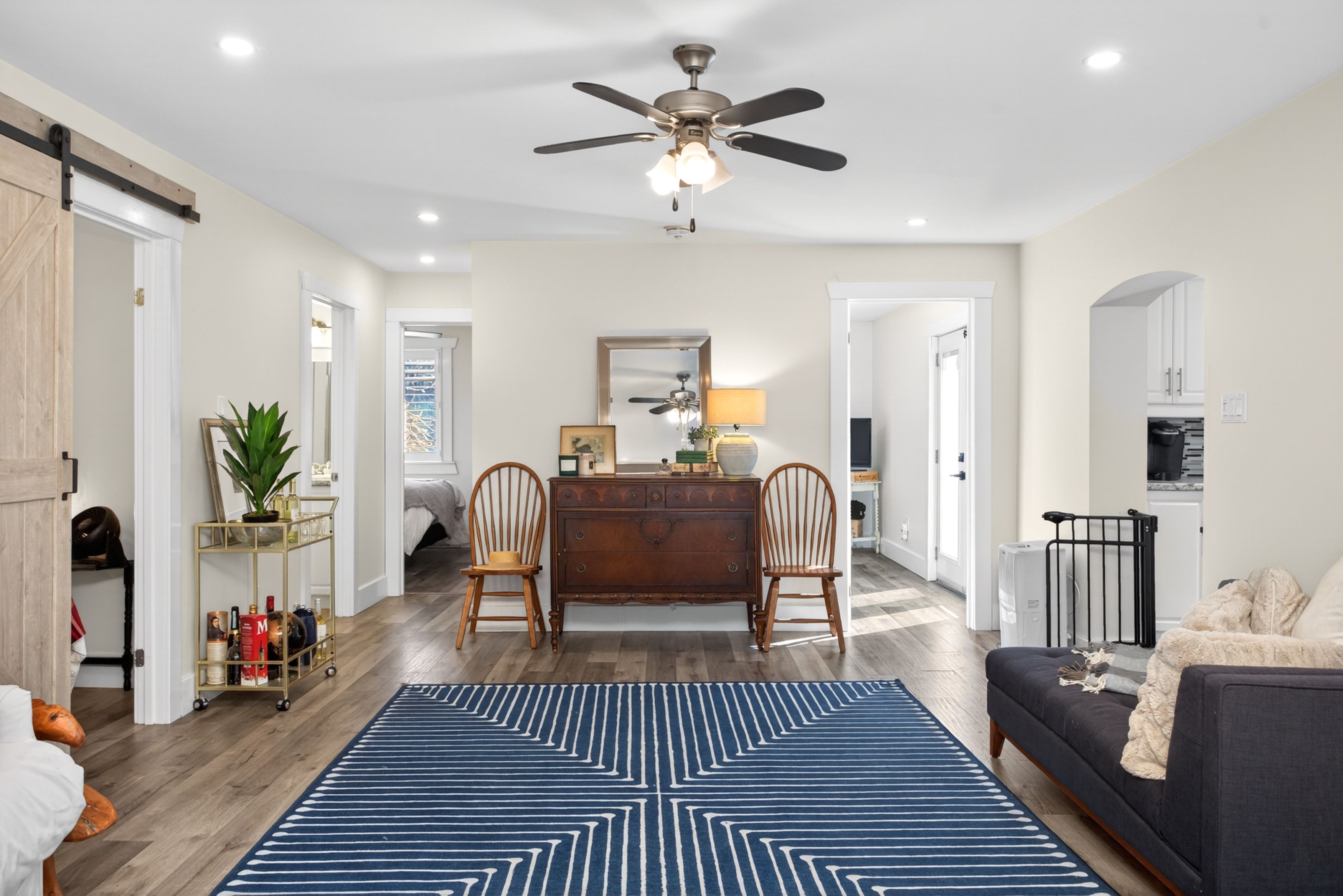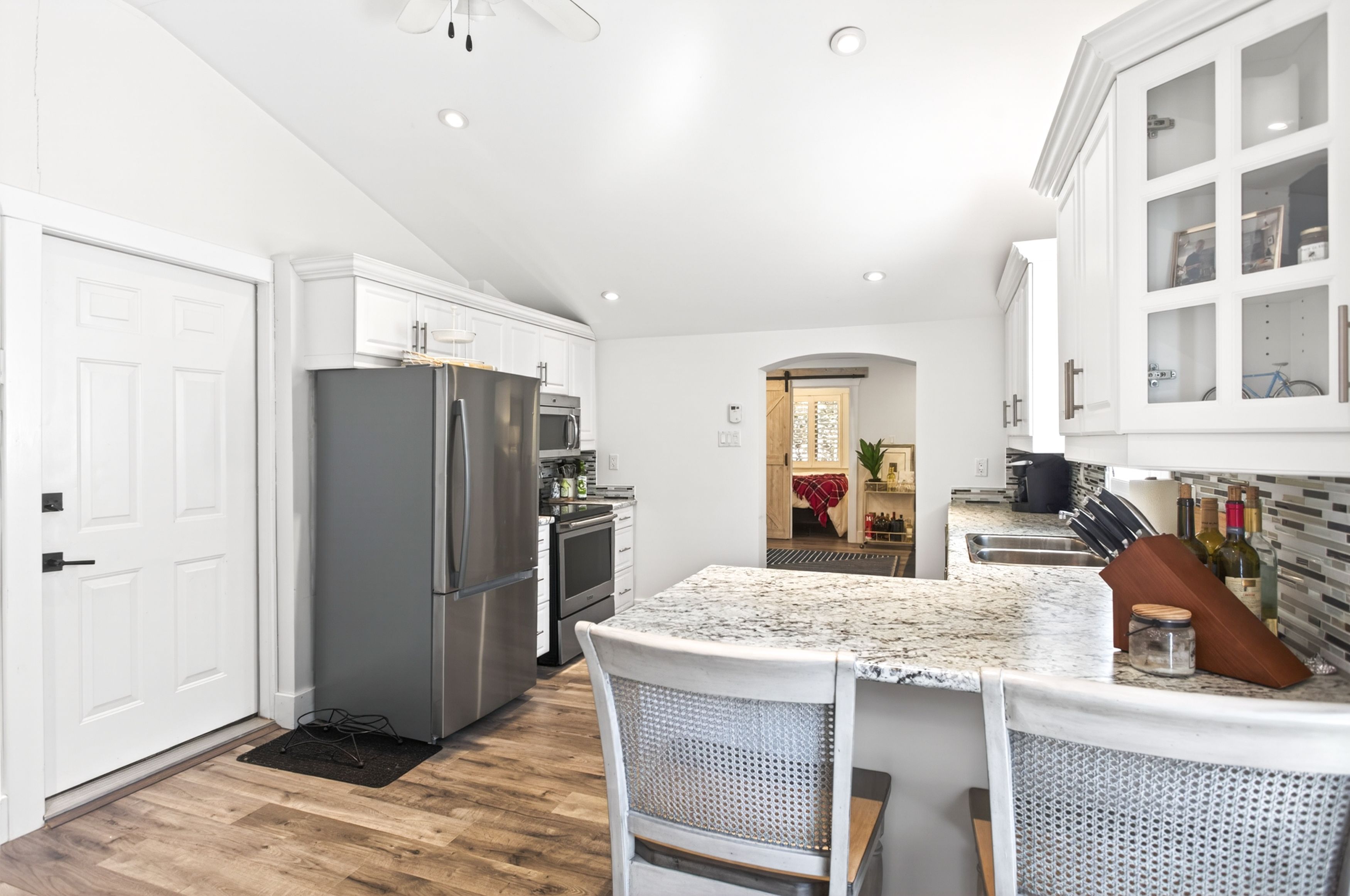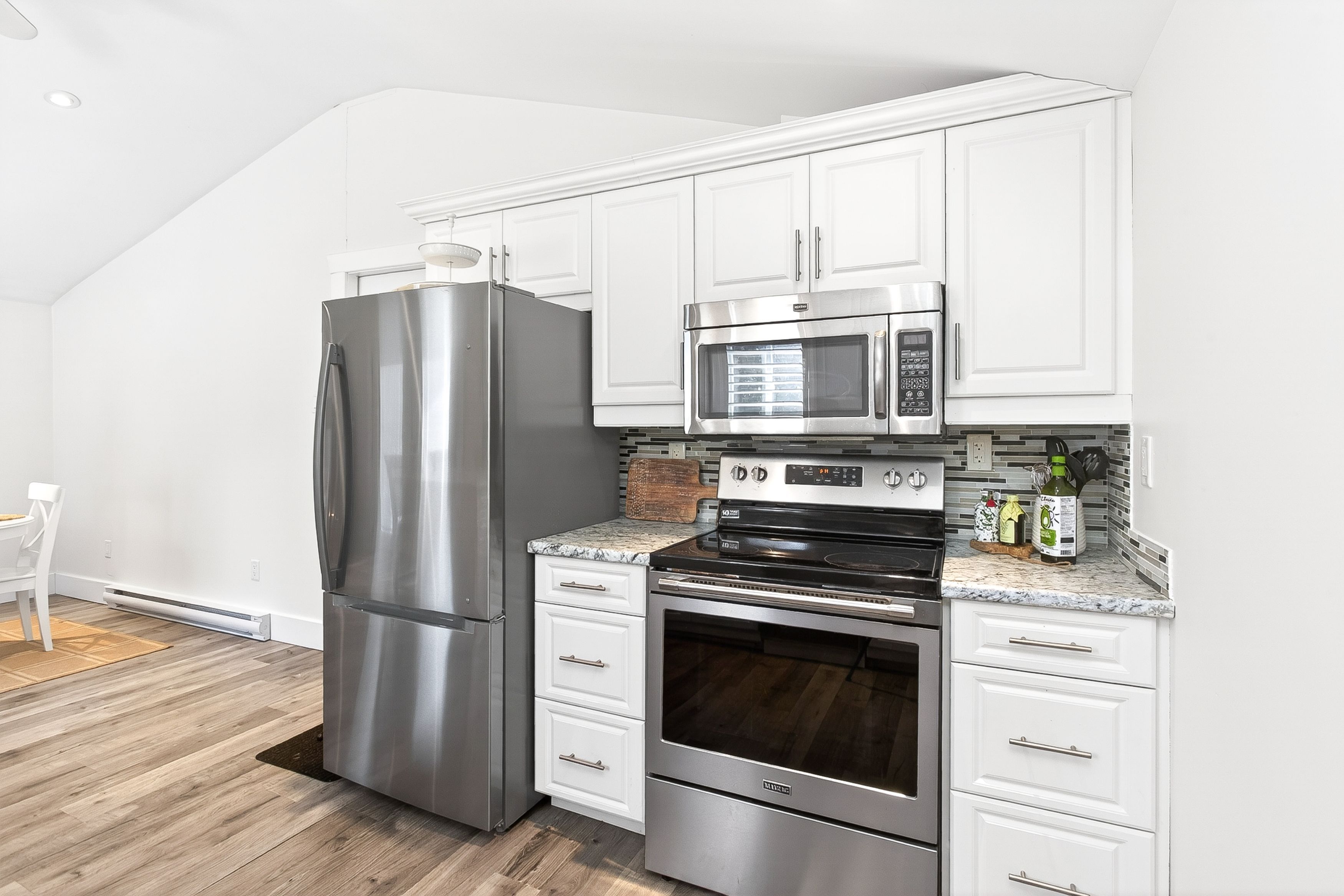 • Extensive upgrades including new flooring, lighting, and elegant kitchen features.