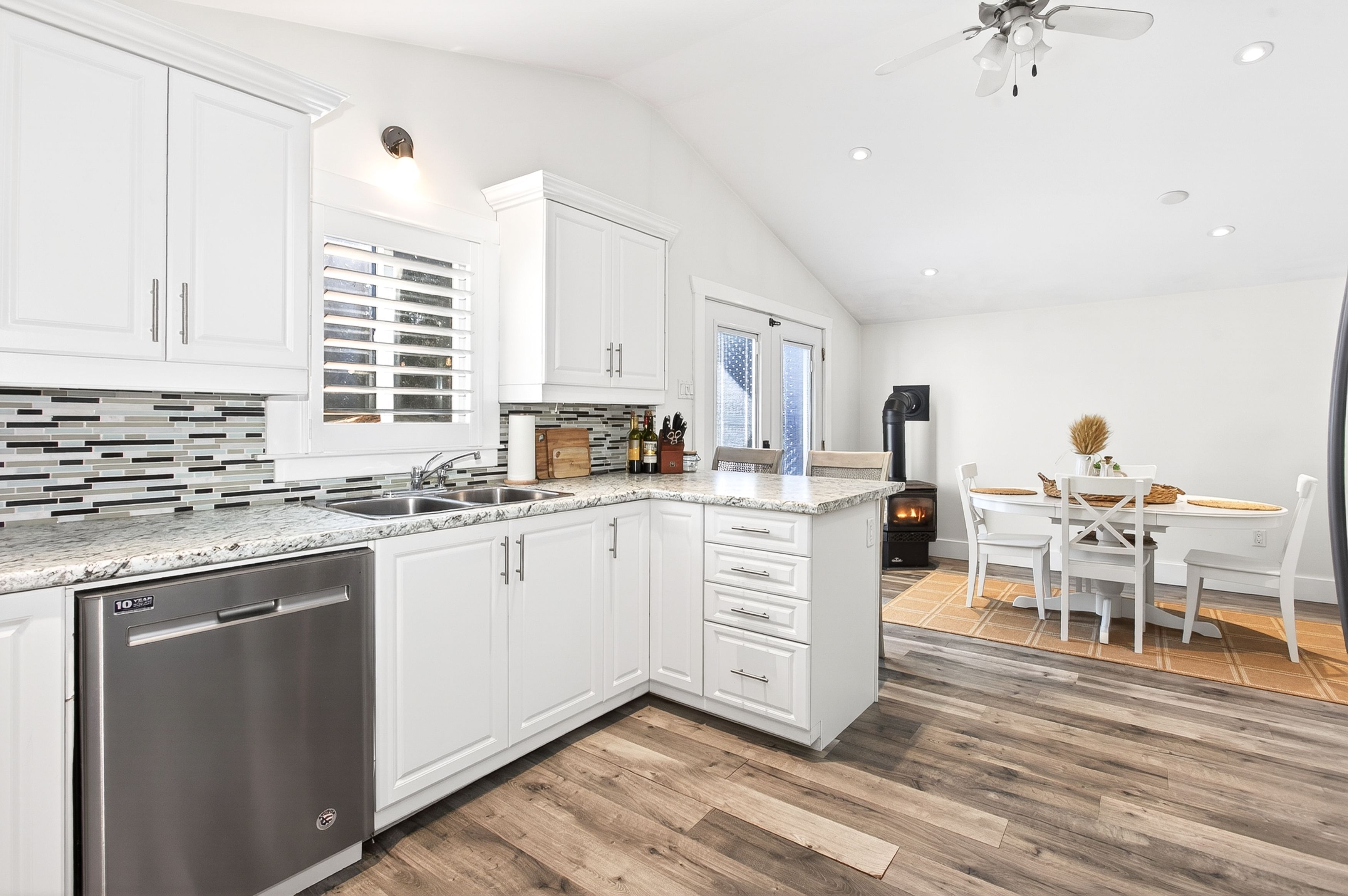Remarkable fully renovated 3 bedroom, 2 bathroom bungalow in the heart of fenelon falls, just steps from beautiful sturgeon lake. This stunning home showcases extensive upgrades, including new laminate flooring, led soffit lighting, pot lights, and elegant upper cabinet lighting in the kitchen. Additional features include new aluminum window castings, a striking exterior stone facade, water softener system, and california shutters throughout. Enjoy new french doors in both the bedroom and kitchen, plus many more thoughtful enhancements. With two gas fireplaces and ductless split this home is efficient for heating and a/c. Situated on a large lot with a spacious backyard, a second entrance to the property , extra parking available at the rear, and a new private back deck-perfect for soaking up the sun. Complete with deeded shared access to sturgeon lake, featuring a sandy, swimmable waterfront - this is the lifestyle you have been waiting for!!