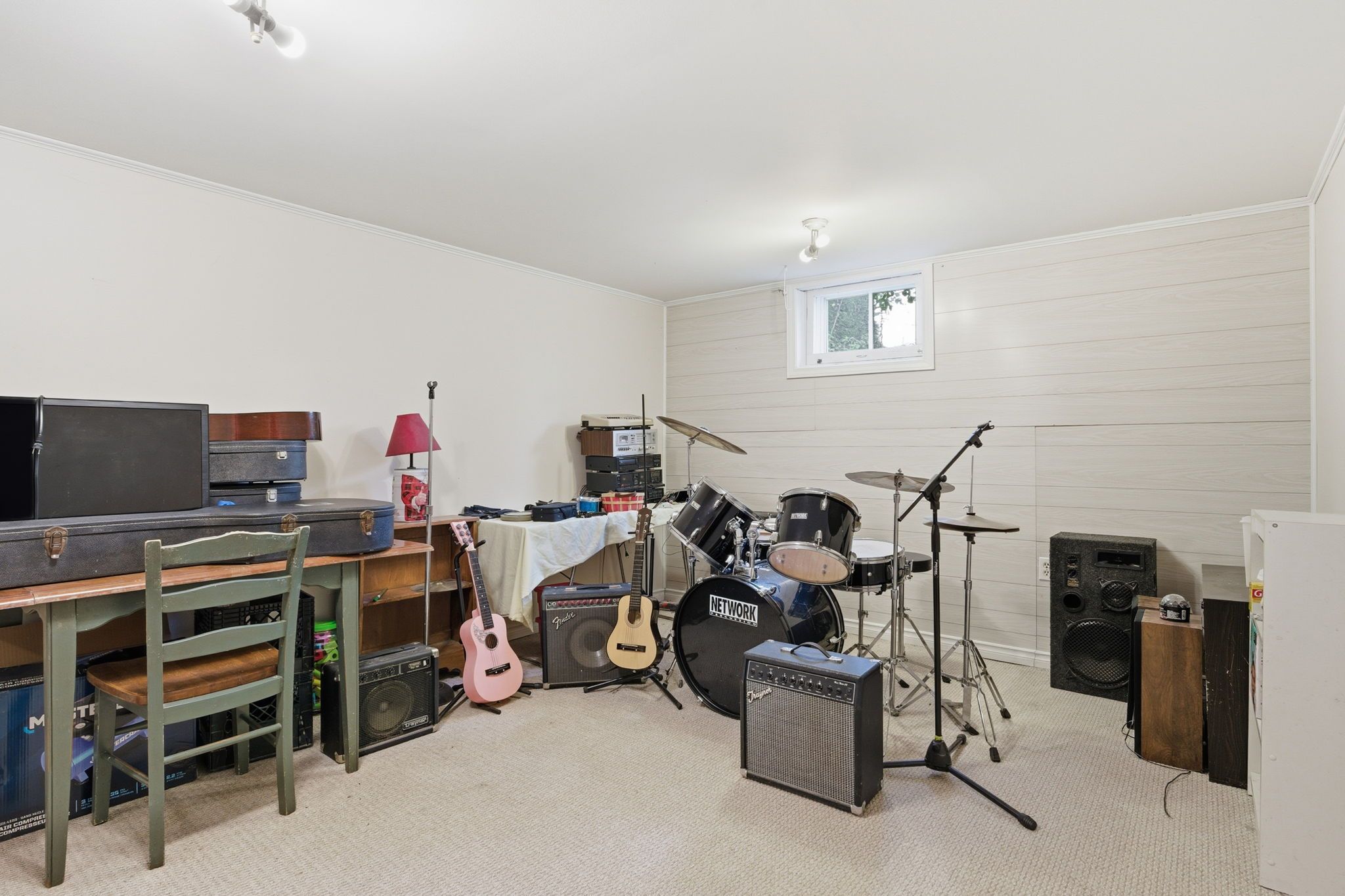 • Partially finished basement offers extra space for various uses.