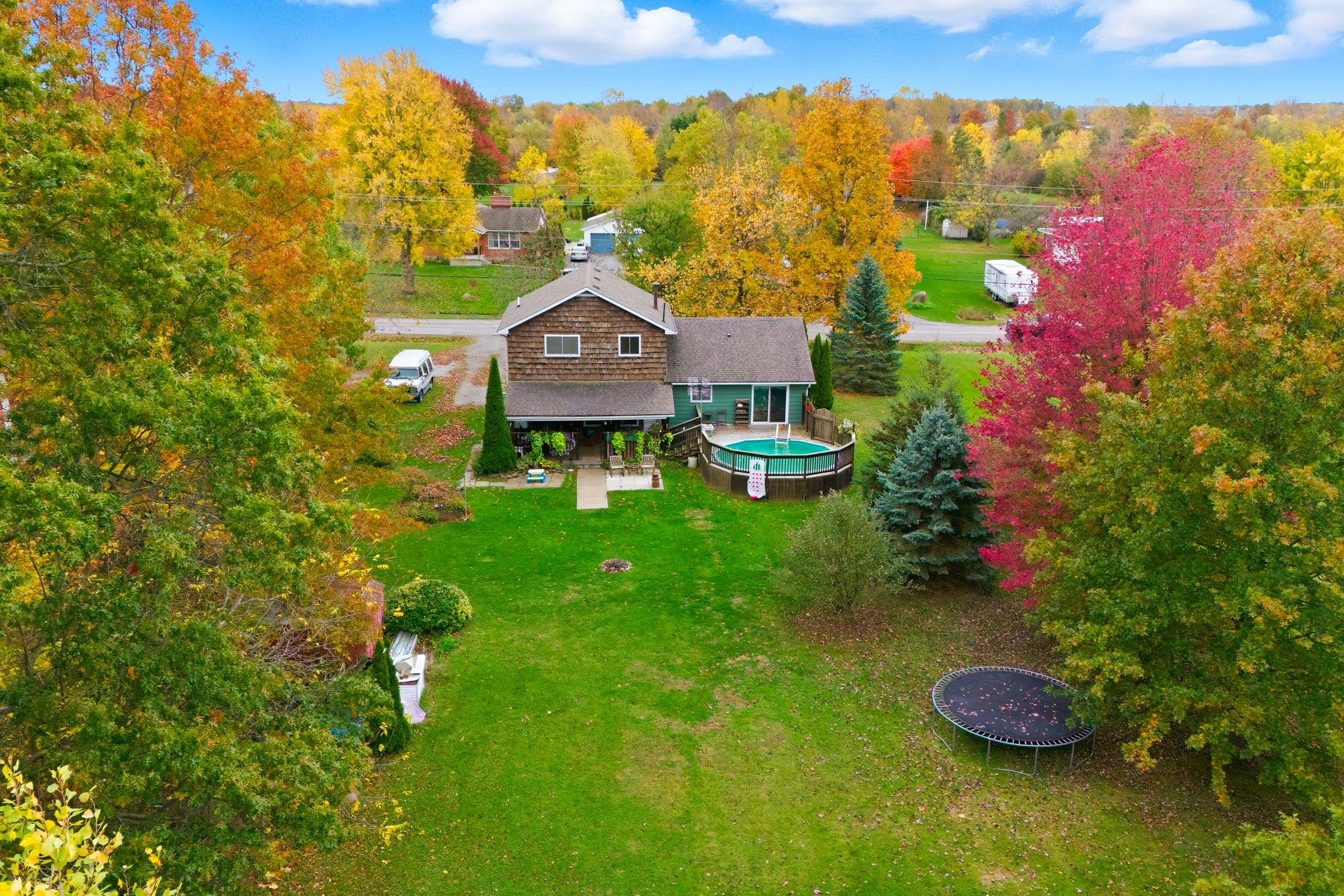 • Expansive yard with above-ground pool for summer fun and relaxation.