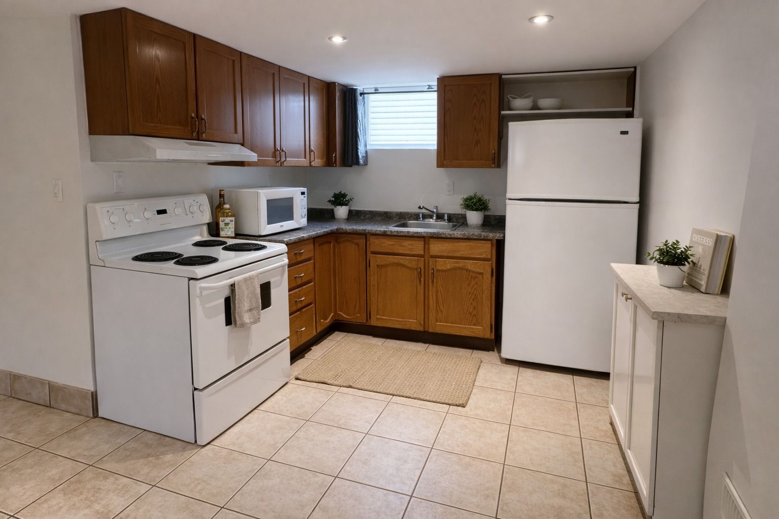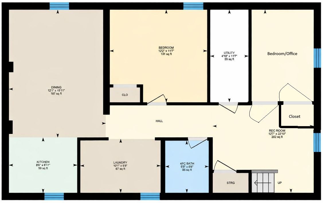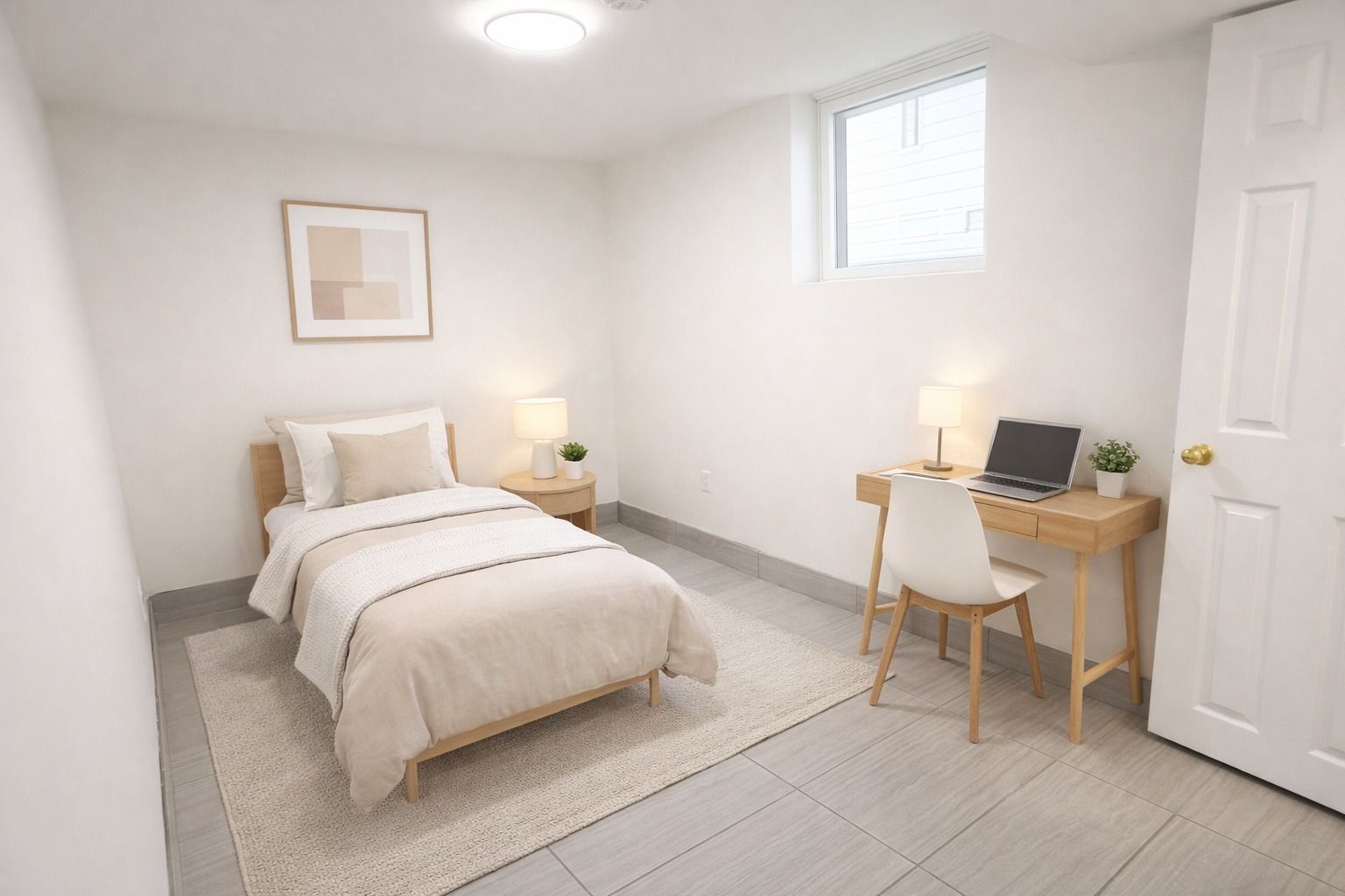 • Bright lower-level suite with large windows and private entrance.