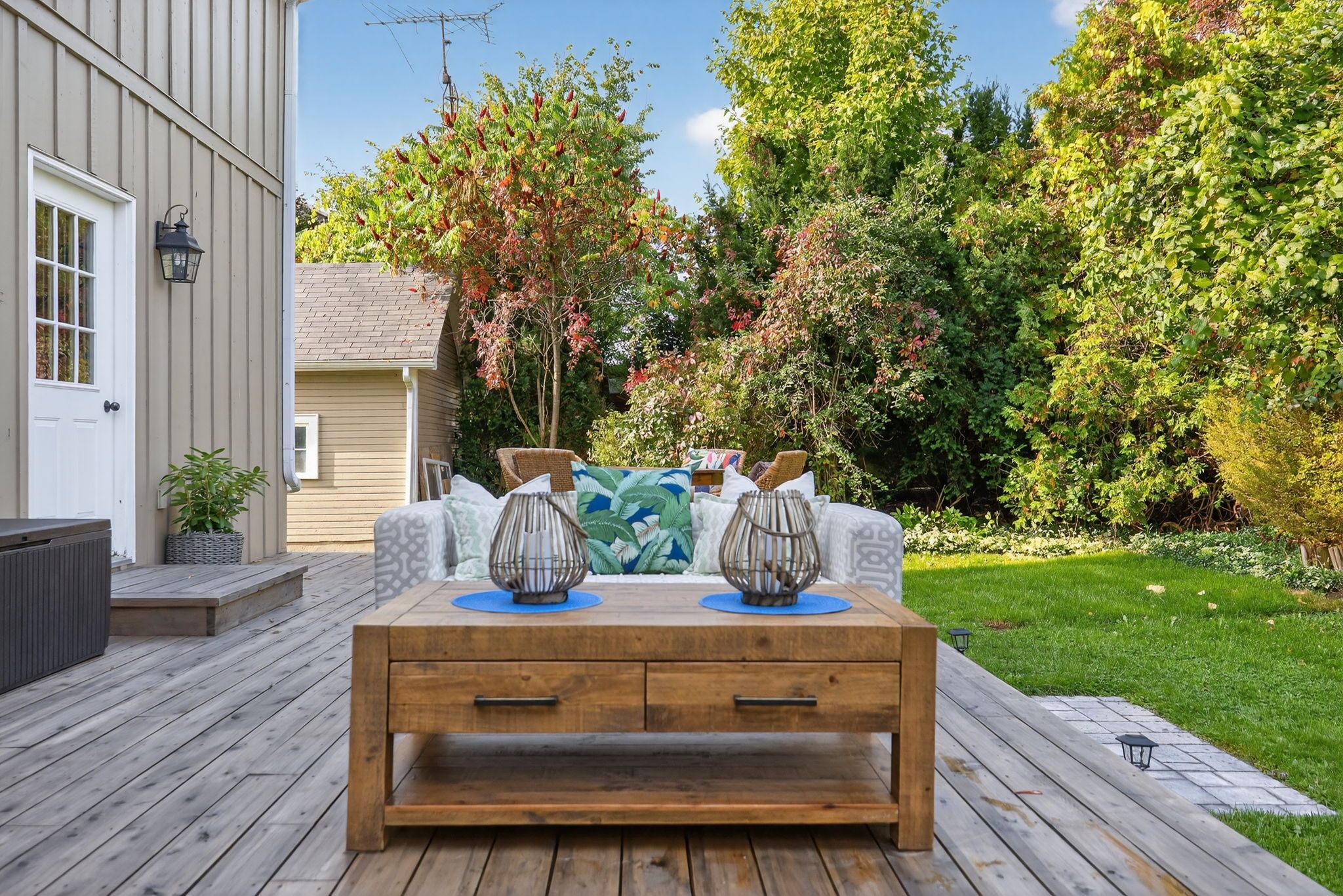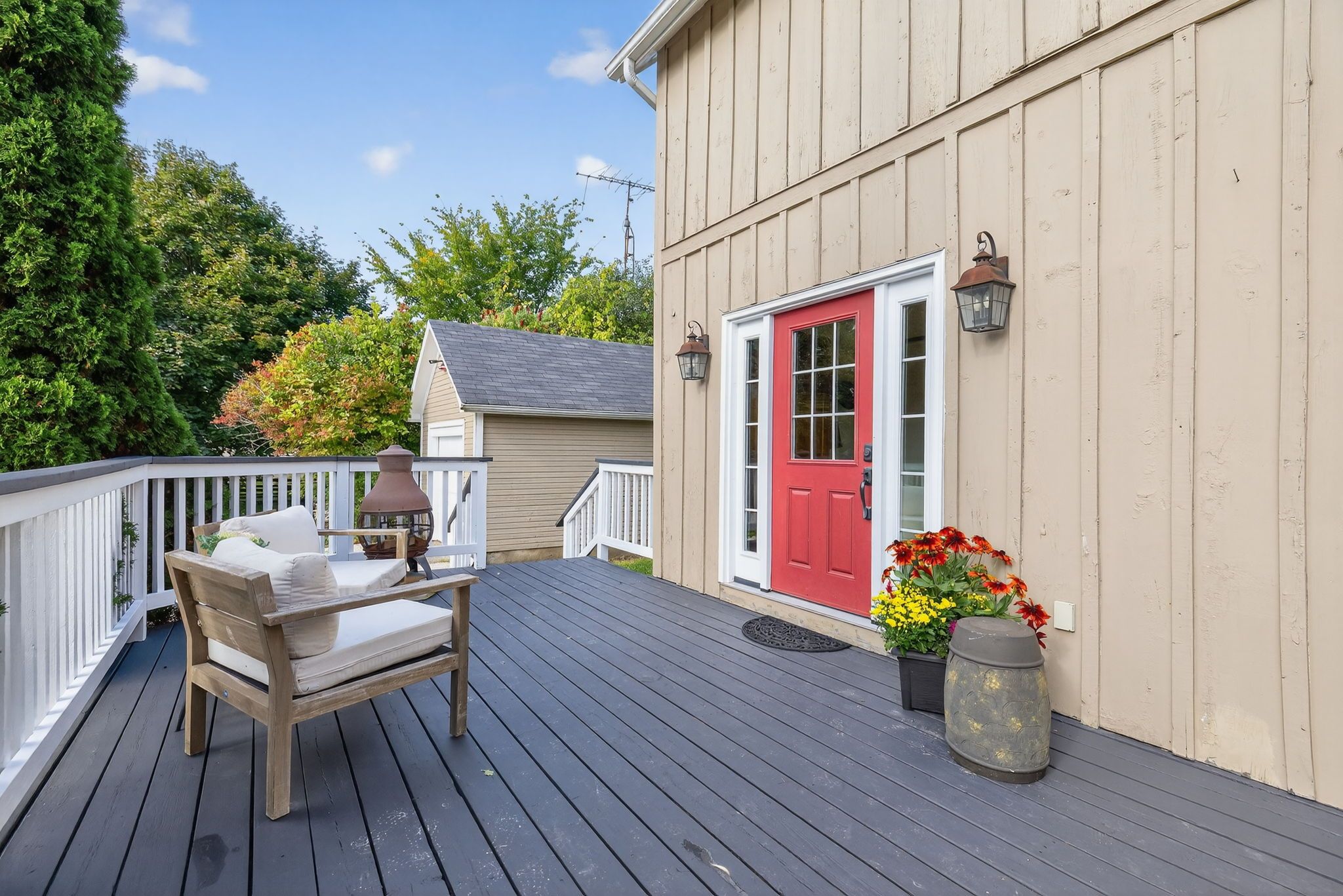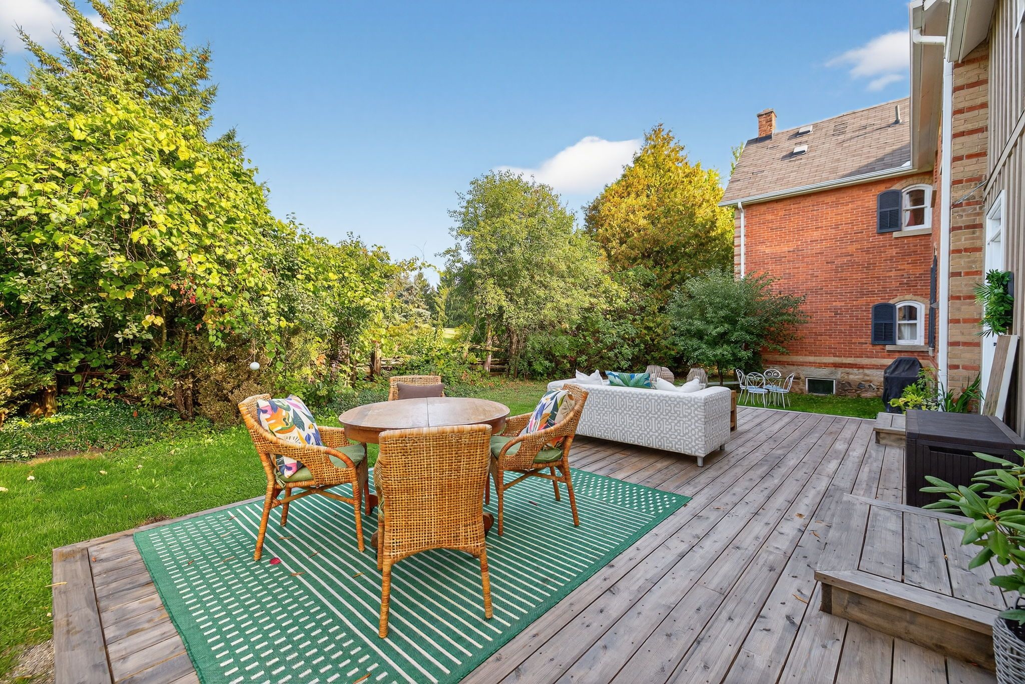 • Eco-friendly geothermal heating and multiple outdoor spaces for privacy.