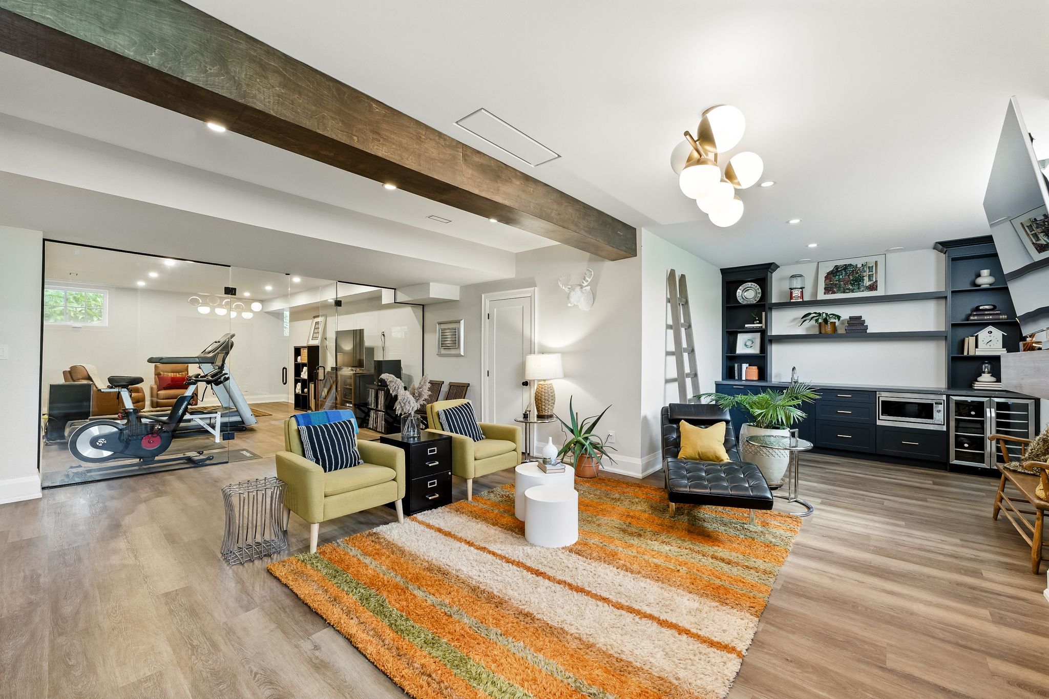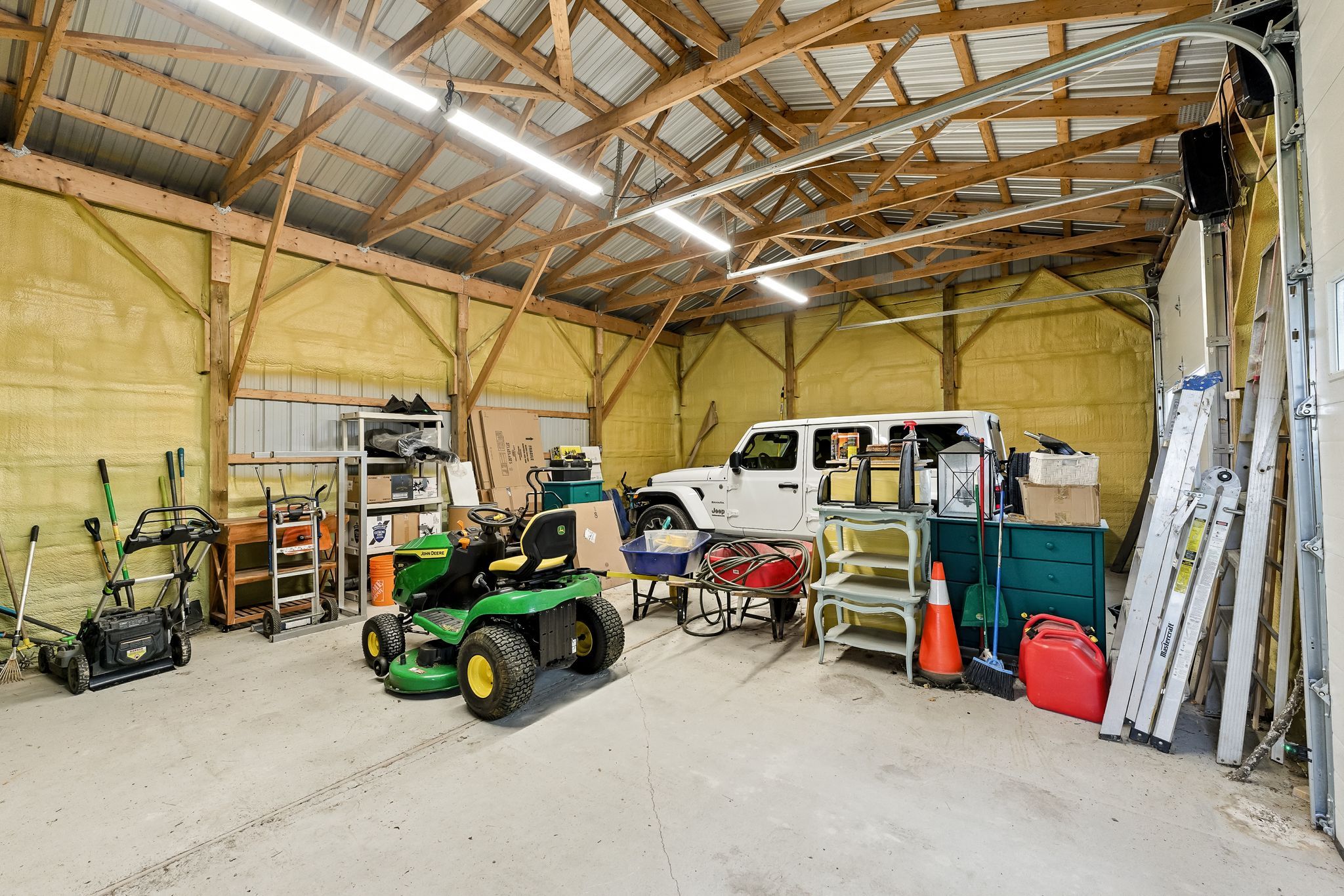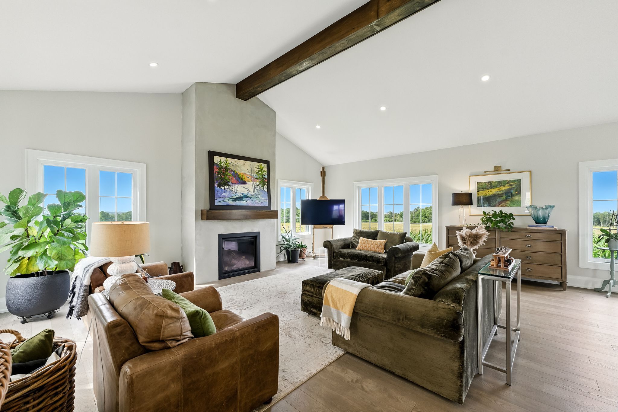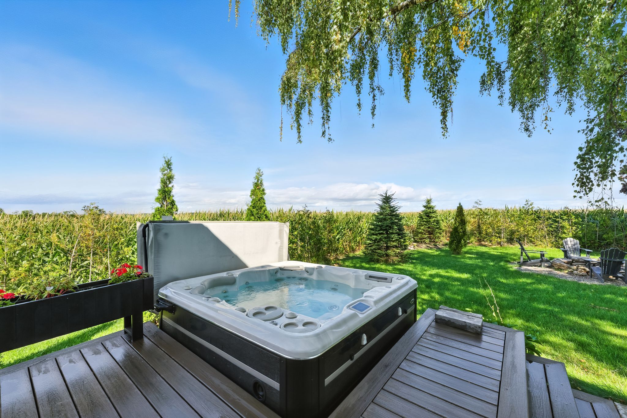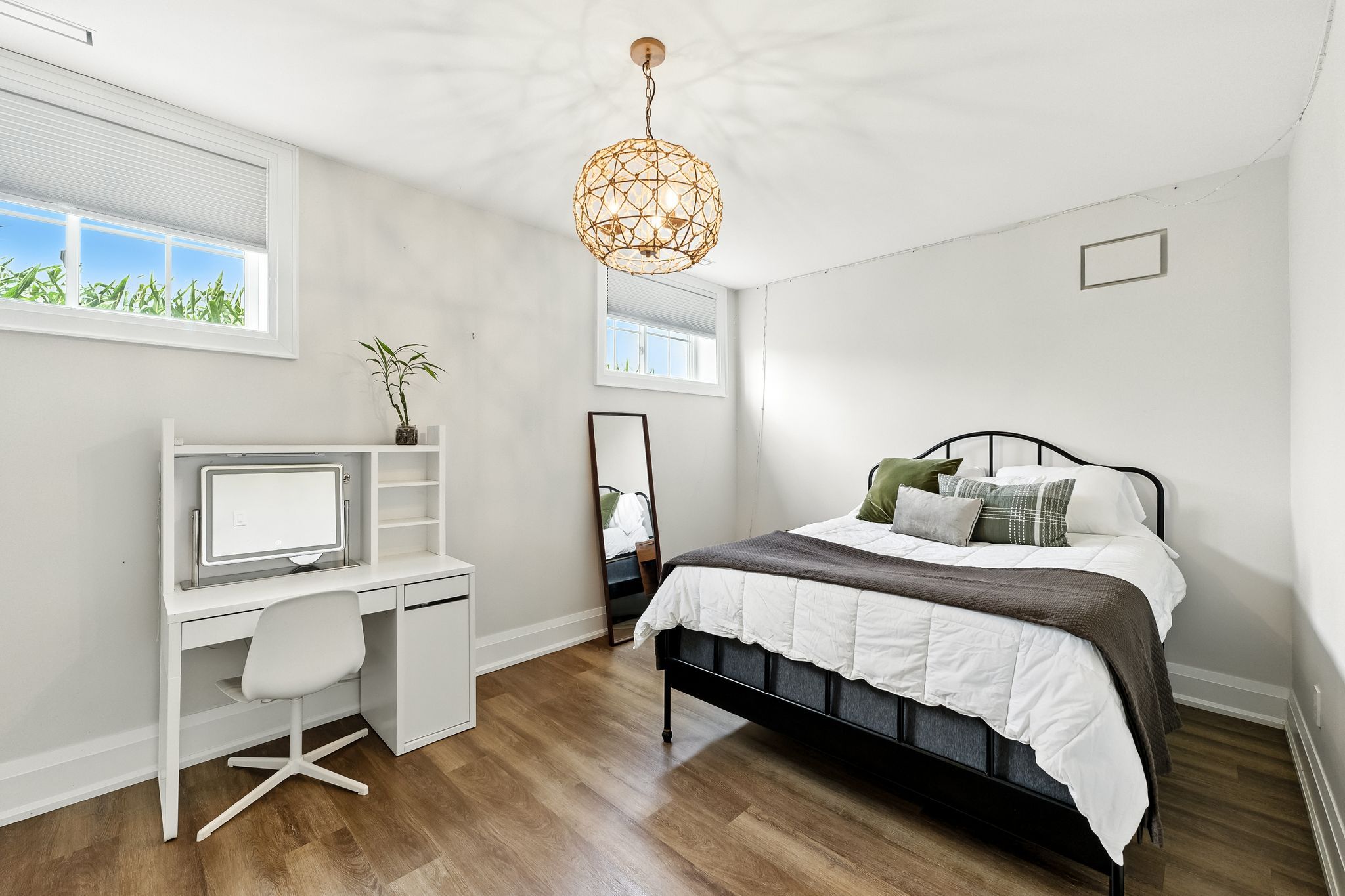 Welcome to this custom-built luxury bungalow on 1. 54 acres of private countryside, offering modern comfort with timeless rural charm. A tree-lined driveway leads to beautifully landscaped grounds, a welcoming front porch, & multiple outdoor living spaces, including a raised deck & spacious patio for entertaining. The main level of this home is thoughtfully designed to combine everyday functionality with elegant style. A welcoming foyer with a double closet leads into the open-concept living spaces, where soaring ceilings with wood beams, expansive windows, & a striking fireplace create a bright & inviting atmosphere. The chefs kitchen is a true highlight, featuring high-end appliances, custom cabinetry, a large centre island, & a walkout to the deck. Seamlessly connected, the dining area & living room provide an ideal setting for gatherings, with natural light flooding the space from every angle. The primary retreat offers built-in cabinetry, a luxurious 5-piece ensuite with soaker tub & glass shower, & private access to the deck. A second bedroom, currently staged as a home office, adds convenience for guests. Completing the main floor is a well-equipped laundry & mudroom with direct access to the attached garage. The fully finished lower level extends the living space beautifully. A wide staircase with glass railing opens to the rec room, complete with a sleek wet bar, custom built-in shelving, & a cozy fireplace. A glass-enclosed gym provides a dedicated space for fitness while maintaining an open, modern feel. Two generously sized bedrooms, each with large above-grade windows, are complemented by a stylish 4-piece bathroom. The lower level offers the ideal blend of relaxation, recreation, & practicality, while also housing a utility room for added convenience. With an attached garage plus a detached workshop, this property is ideal for both relaxation & practicality, all while surrounded by sweeping farmland views & just minutes from nearby amenities.