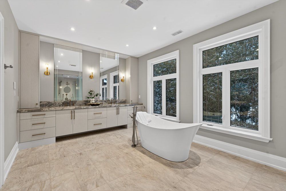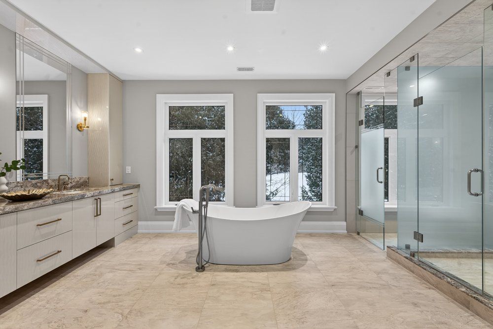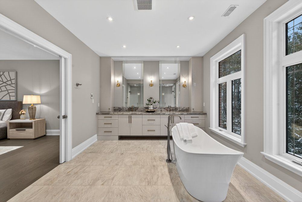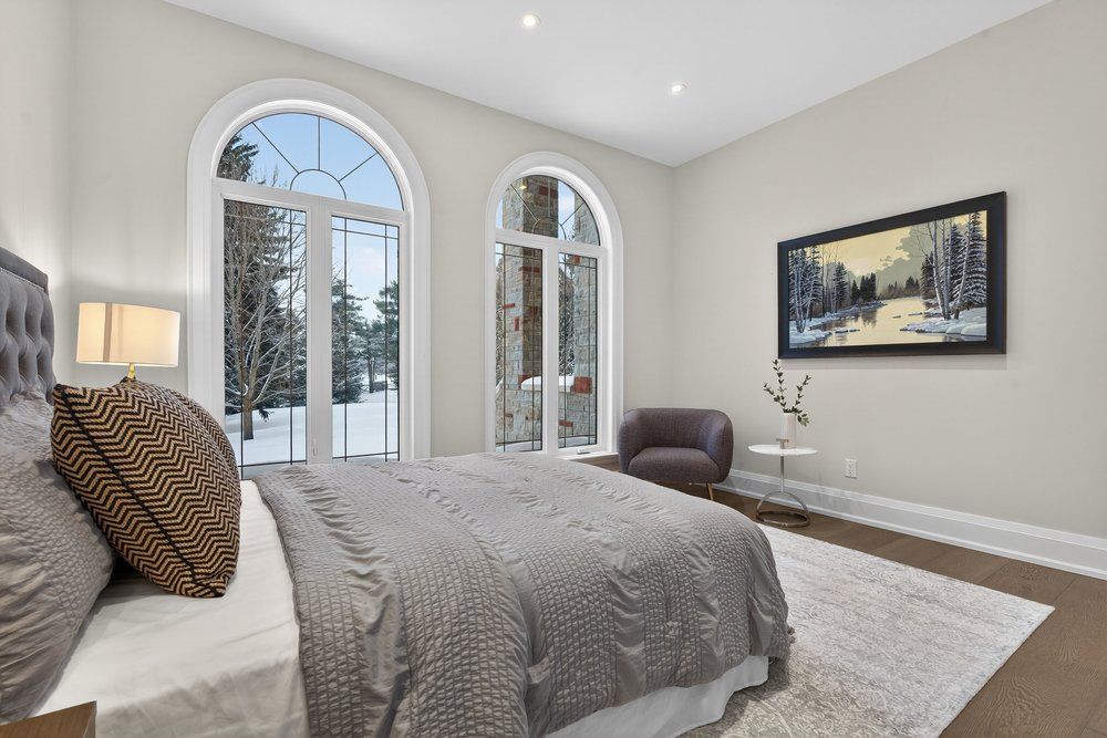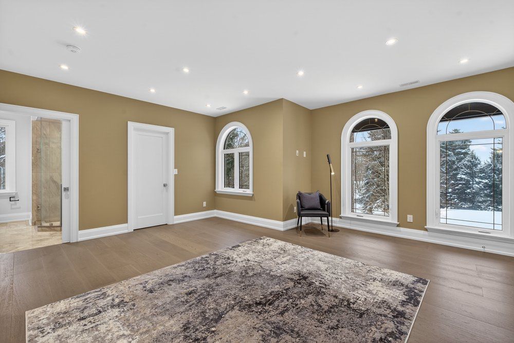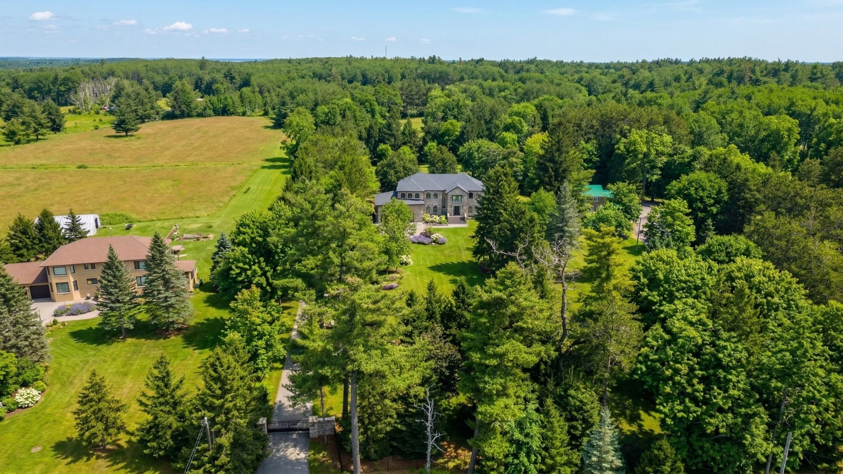 Welcome to a marvel of modern construction. Recently completed on a 2. 4-acre gated estate in prestigious king offering over 7,500 sq ft of refined luxury living (5800 sq. Ft+2950 sqft). A long, tree-lined approach unveils a residence defined by natural stone and brick masonry, balanced proportions, and striking architectural presence. Soaring two-storey 20-ft ceilings crown the grand great room, creating a dramatic yet elegant setting for entertaining. The chef's kitchen anchors the home with a quartzite island, premium built-in appliances, dual cooktops and ovens, and an oversized walk-in pantry. Each bedroom features a private en-suite, including a main-floor suite, designed for seamless multi-generational living. The upper primary retreat offers a spa-inspired en-suite and bespoke dressing room. The finished lower level, with 12-ft ceilings and golf simulator rough-in, adds exceptional lifestyle flexibility. Notable upgrades include dual hvac systems, radiant floor heating, spray foam insulation, and a tankless water system. A 3-car garage, heated 30x30 workshop, and expansive two-tier deck complete the estate. Minutes to hwy 400, top private schools, and amenities-an enduring legacy property defined by craftsmanship, privacy, and location.