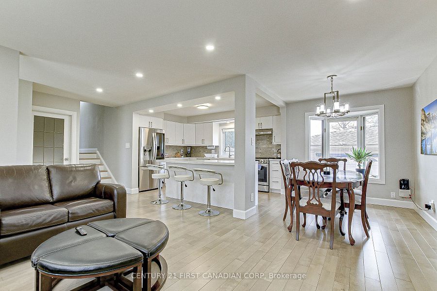 Amazing opportunity in the sought-after northridge subdivision! Perfect for investors, large families, or new homeowners looking for extra mortgage help. This rare and beautifully maintained side-split home offers 3+1 bedrooms, 4 full bathrooms, and 2+1 kitchens, providing incredible versatility for multi-generational living, rental income, or a private in-law suite. The spacious 2-car garage (21. 4 x 23) includes extra space for a workshop or recreation area. Curb appeal is outstanding with a lovely front concrete porch and walkway (2021), newer siding with added insulation, stylish leaded-glass entry door, and replacement windows. Inside, you'll find gleaming hardwood floors, a bright dining room with bay window, and an updated kitchen featuring granite countertops, backsplash, and ample pot-and-pan drawers. The rear of the home is equally impressive with a large covered porch and pressed concrete patio-perfect for entertaining. The stunningly renovated 3rd level includes a newly added kitchen, bedroom, and walkout to the backyard, making it ideal for a granny suite or additional rental income. The 4th level has also been recently updated with its own mini-kitchen, complete with cabinets, sink, and fridge. Additional features include: furnace (approx. 7 years) hot water tank (owned, 2015) murry shaw shingles with enhanced ventilation, leaf guard, sprinkler system, and bbq gas line. All this with super easy access to western university, lhsc, masonville, shopping, dining, library, and scenic walking/bike trails. A true pleasure to view-this is a home that truly offers it all!