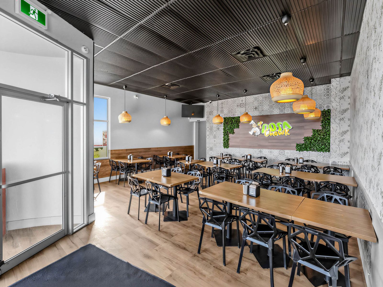 This 1860 sq ft commercial unit (30x100 ft) offers excellent visibility and steady customer flow. South indian restaurant with seating for 50 guests, operating 7 day a week with 10-hour service. Low overhead and efficient layout make this an ideal opportunity for owner- operators or investors. It's not a franchise, excellent opportunity to continue the current concept or convert to your own cuisine. Strong exposure to dixie road traffic. All existing chattels and equipment included in the sale. Established business setup with trained staff (15 employees). Municipal services (water & sewer) gas forced air heating. High exposure plaza location with ample surrounding commercial activity. Training can be provided to qualified buyer.
