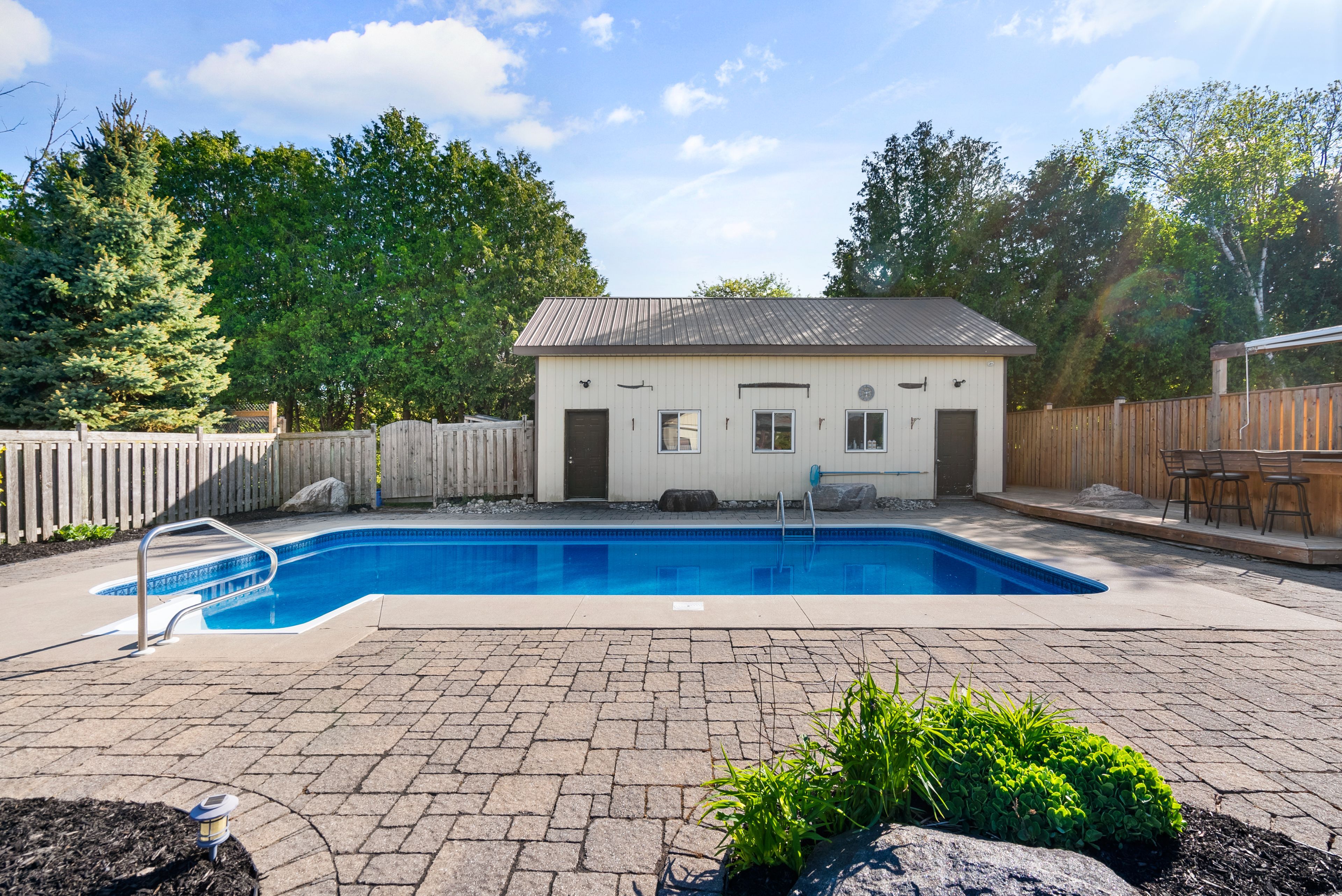 • In-ground pool and two-storey pool house enhance outdoor enjoyment.