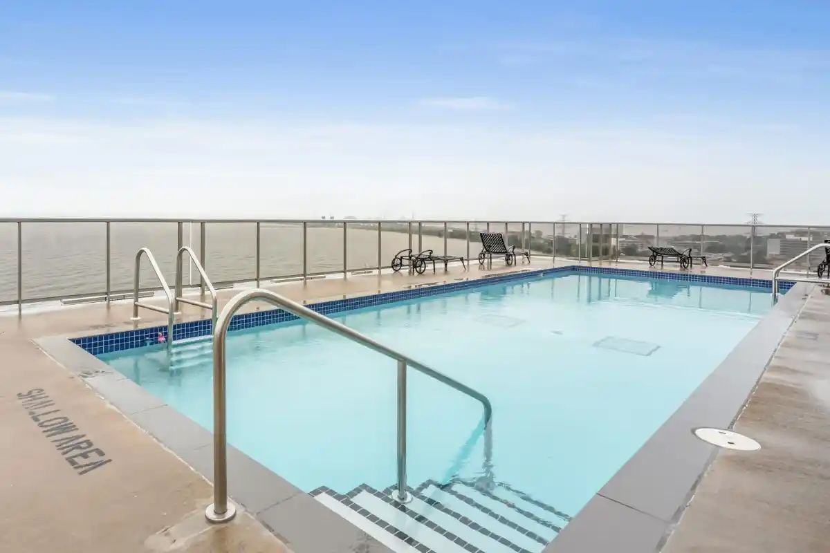 • Private 80 sq ft balcony for peaceful mornings with pier views.