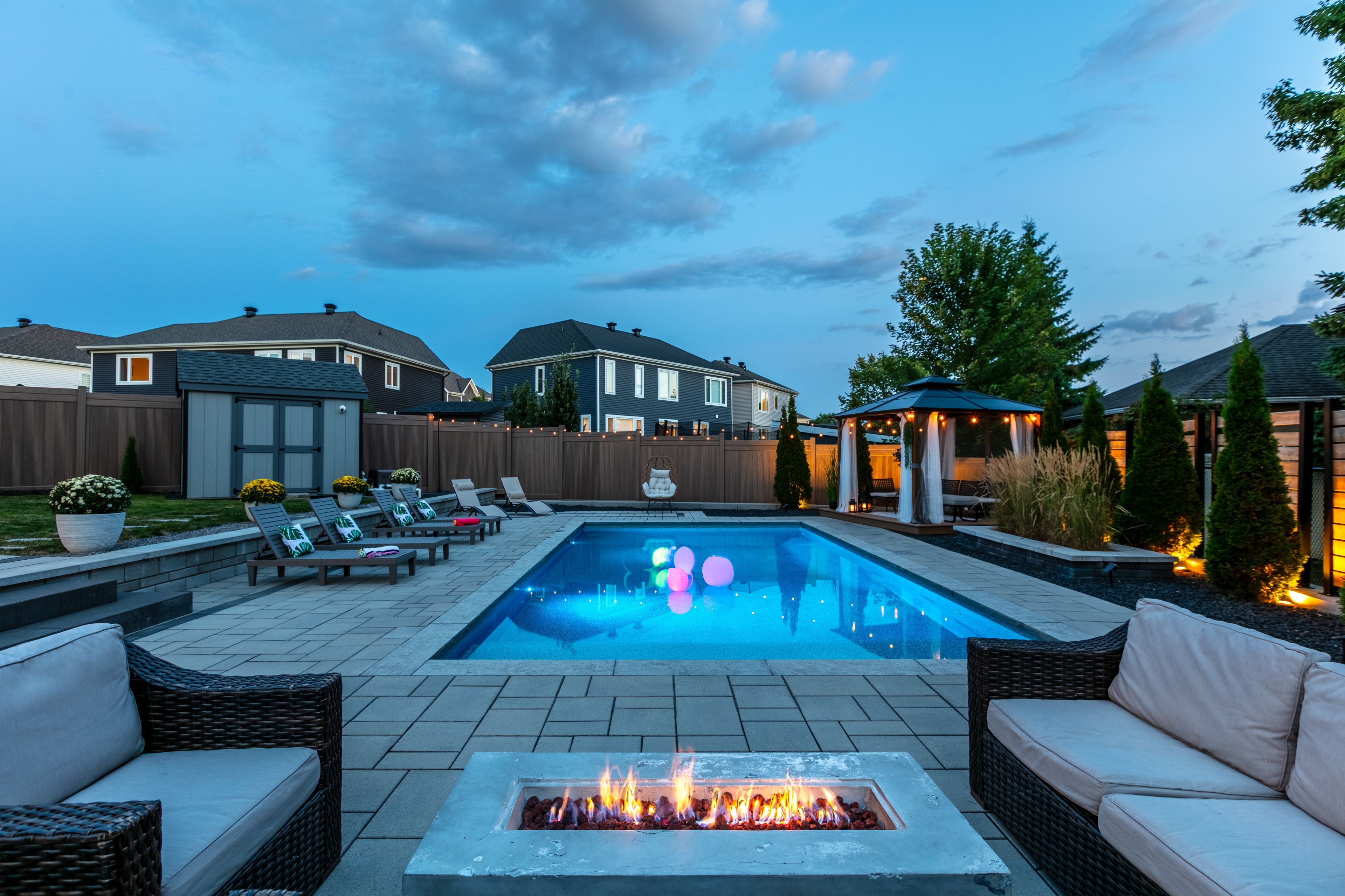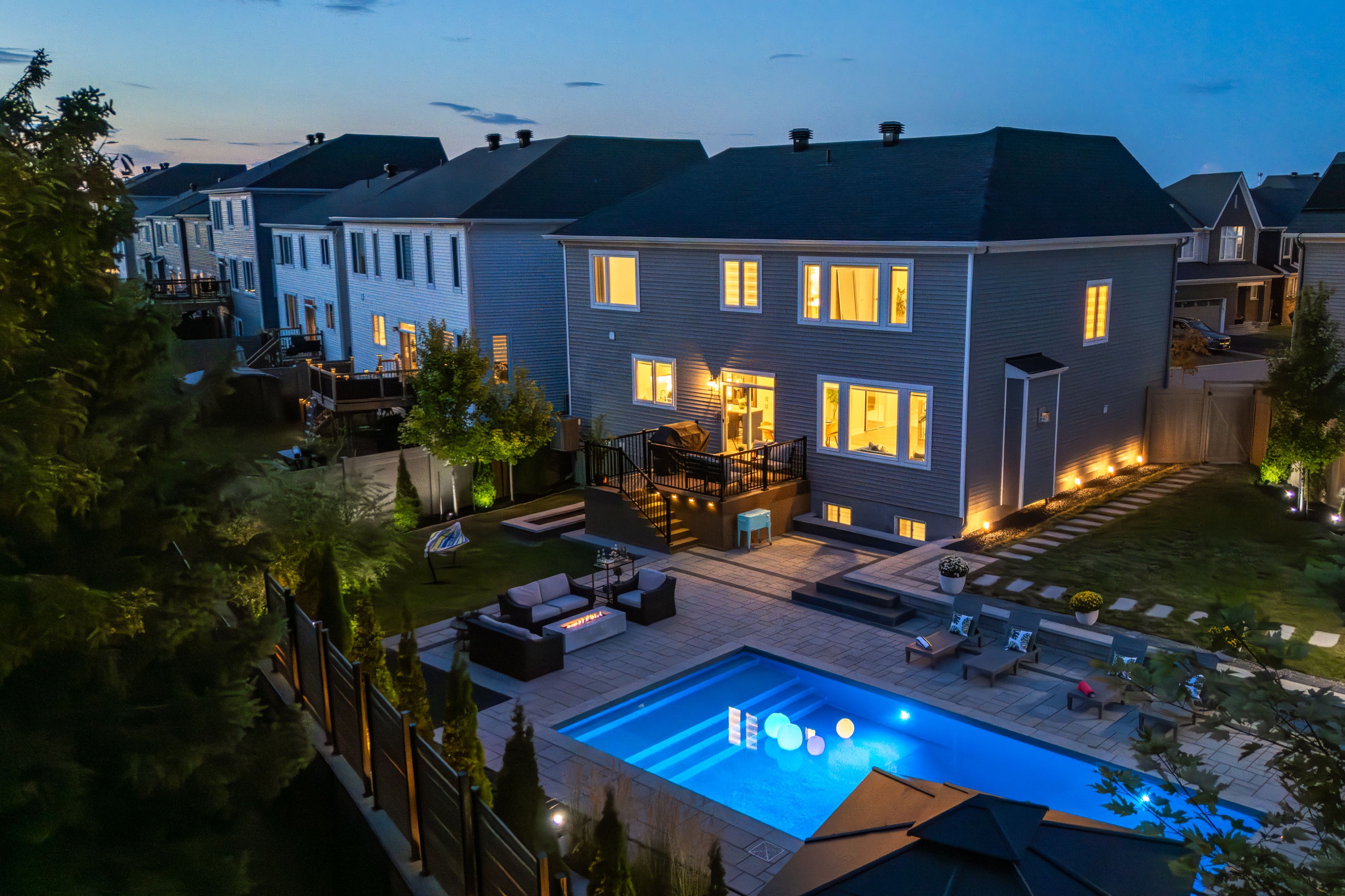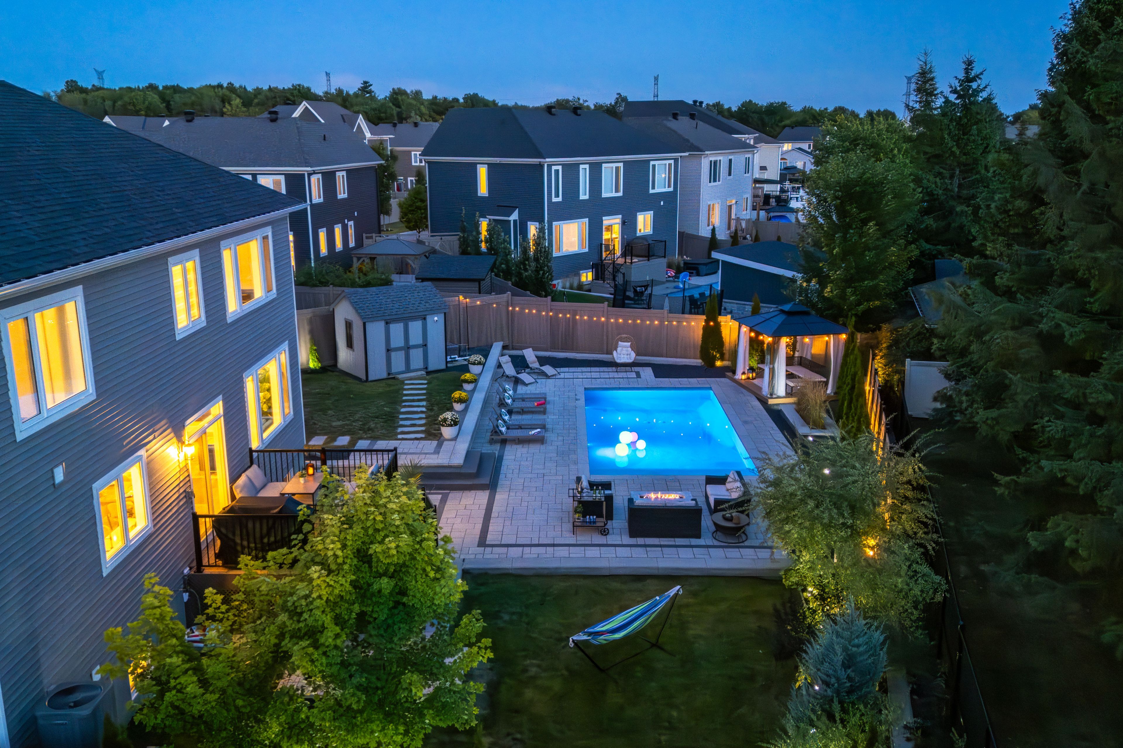 Welcome to this breathtaking 3,424. 5 sqft home, just a short 15-minute drive to downtown. On the main level, elegance shines with soaring 9-foot ceilings, a grand living room with a cozy fireplace, and a chef-inspired kitchen designed for both function and style. A sophisticated office/den provides the perfect space for work or quiet reflection. From here, step out through sliding doors to your private backyard oasis featuring a manicured lawn, paved patio, gazebo, deck, and an inground pool an outdoor paradise designed for relaxation and entertaining. Upstairs, the second floor offers a serene primary retreat complete with a spa-like 4-piece en-suite. Three additional spacious bedrooms, a full bathroom, and a conveniently located laundry room complete the upper level, ensuring comfort and functionality for the whole family. The fully finished basement is a true entertainers dream, featuring a massive recreation area ideal for gatherings, a versatile flex space perfect for a gym, office, or private retreat, and a full bathroom for added convenience. Every inch of this home showcases premium upgrades, with tiled and hardwood floors throughout, built in 2021 and enhanced with over *$100k+ in finishes. Sitting on a premium lot and further elevated with nearly *$250k+ in professional landscaping, interlocking, and pool enhancements this property is more than a home, its a lifestyle. Don't miss this rare opportunity. Schedule your private showing today and step into your dream!