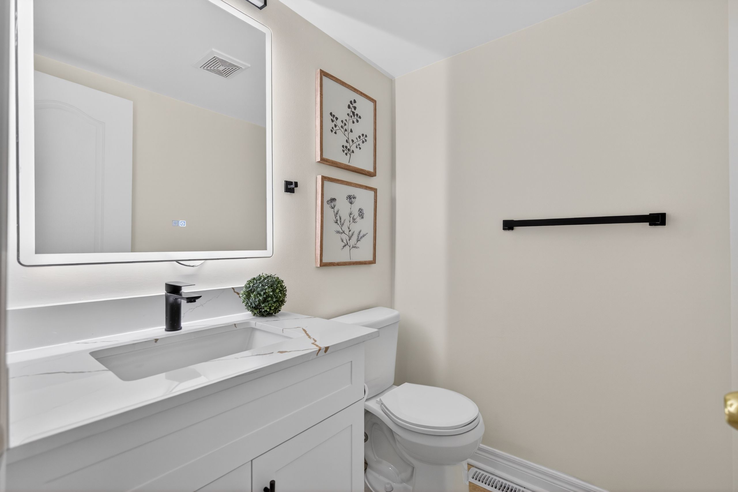 • Bright kitchen with new quartz countertops and stainless steel appliances.