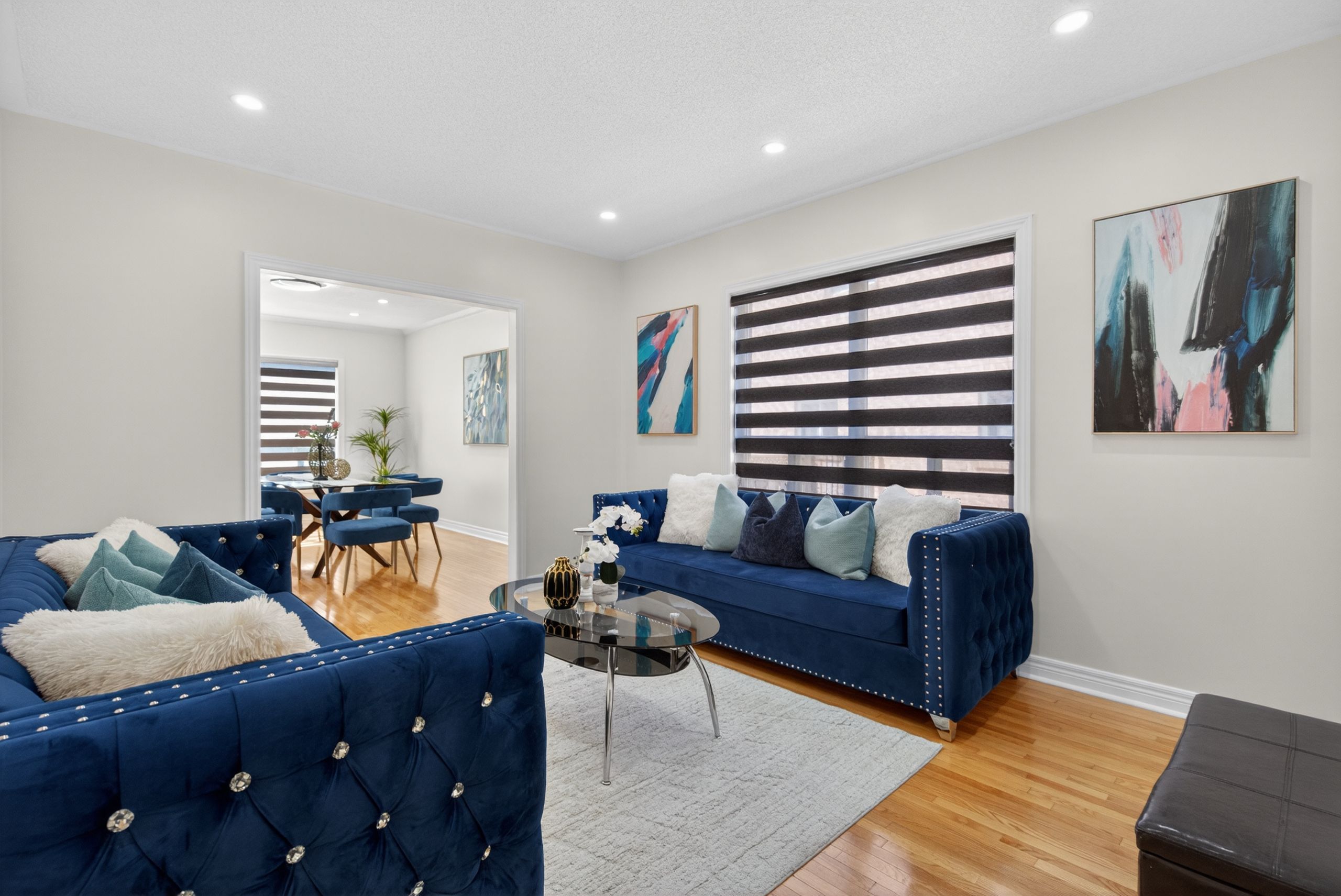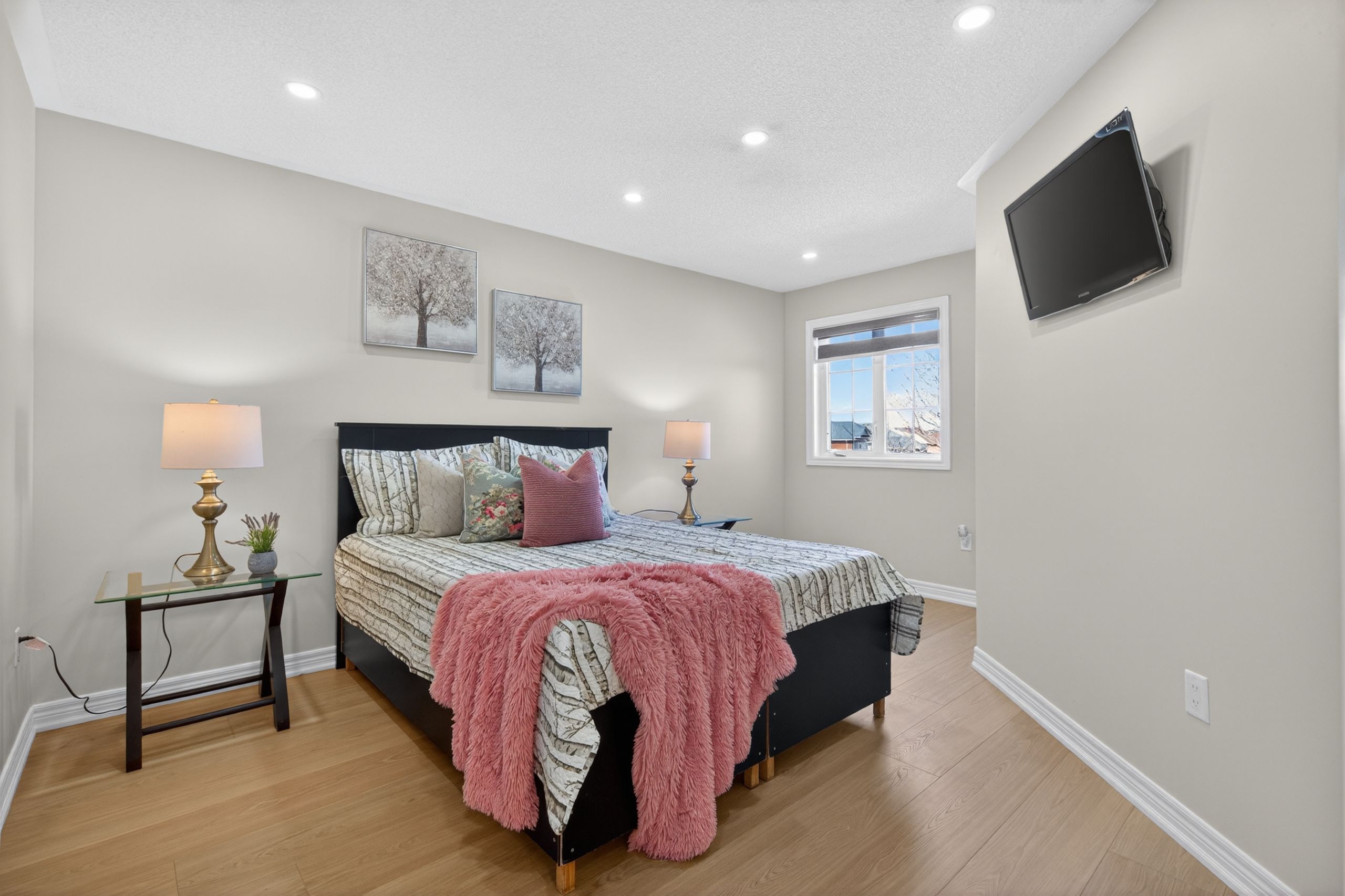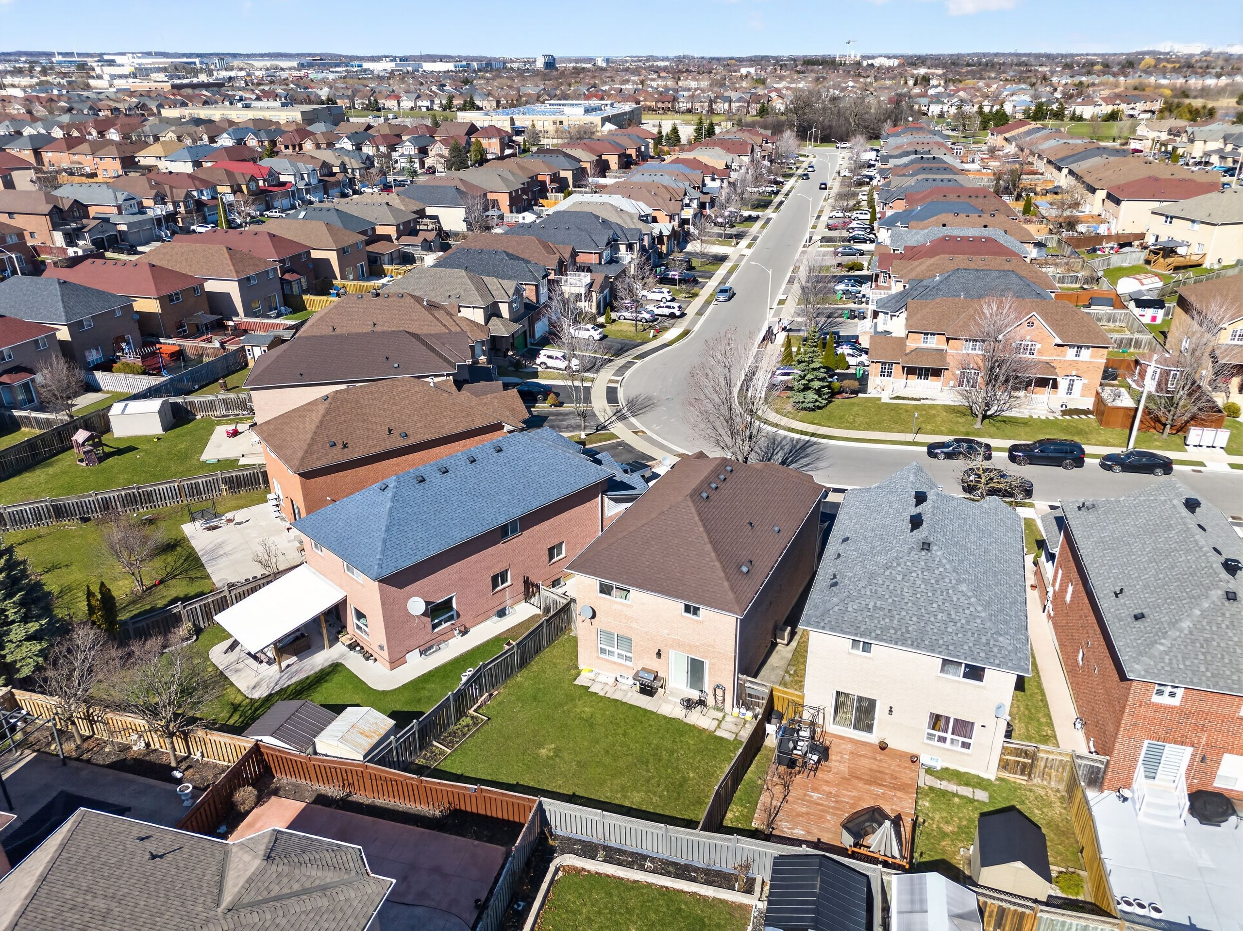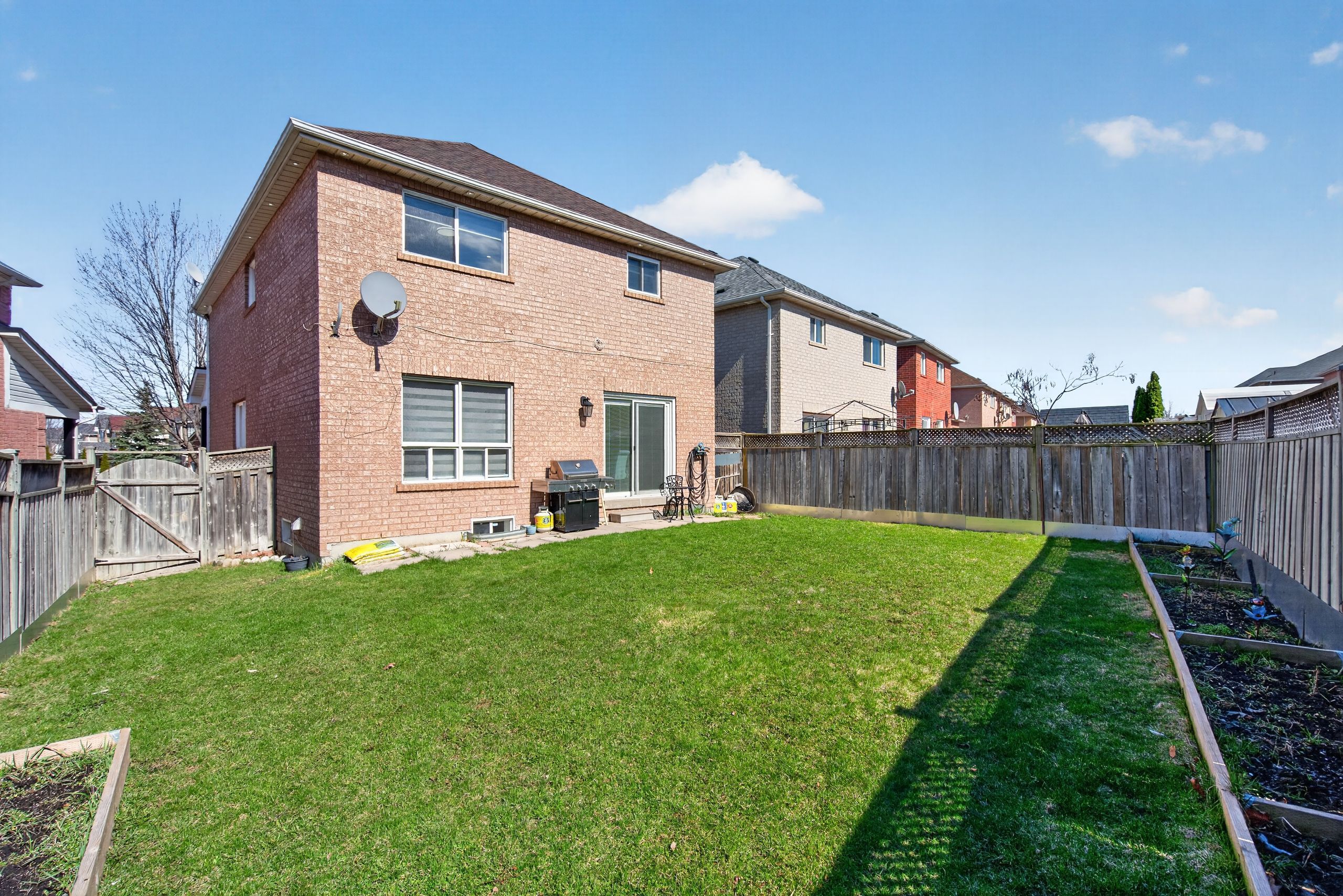 Welcome to this rare to find north east facing fully upgraded home sitting on a premium lot (pie shaped lot) with a huge backyard, perfect for growing families and outdoor enjoyment. This spacious home features 4 bedrooms and 4 washrooms, with a functional layout including separate living, dining and family rooms, offering plenty of space for both everyday living and large family gatherings. Bright open-concept kitchen features brand new quartz counter tops, stainless steel stove(2025), stainless steel fridge along and over the range microwave(2025) and a separate breakfast area ideal for family meals. Many other recent upgrades include new paint, new flooring in 3 bedrooms, brand new vanity in powder room, brand new upgraded primary ensuite, basement washroom and beautifully renovated second washroom. Finished basement features a large media room and 4th bedroom with separate entrance through the garage-perfect for in-laws or teens. Extended driveway fits up to 5 cars, great for multi-car families and guests. Exterior and interior pot lights, exposed concrete stairs and front porch enhance both style and curb appeal. Located in a prime, family-friendly neighborhood close to schools, parks, and all essential amenities. Must see...