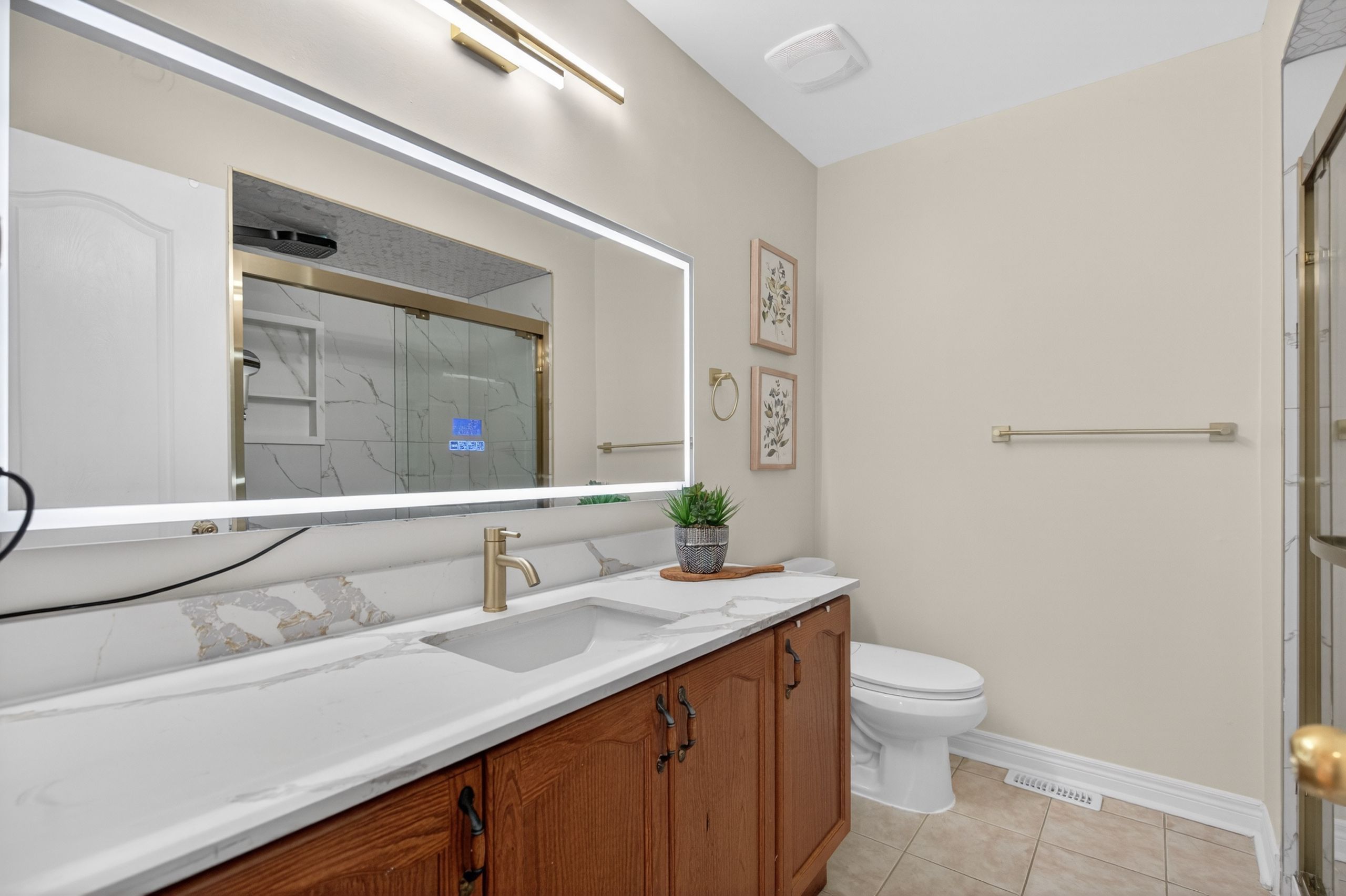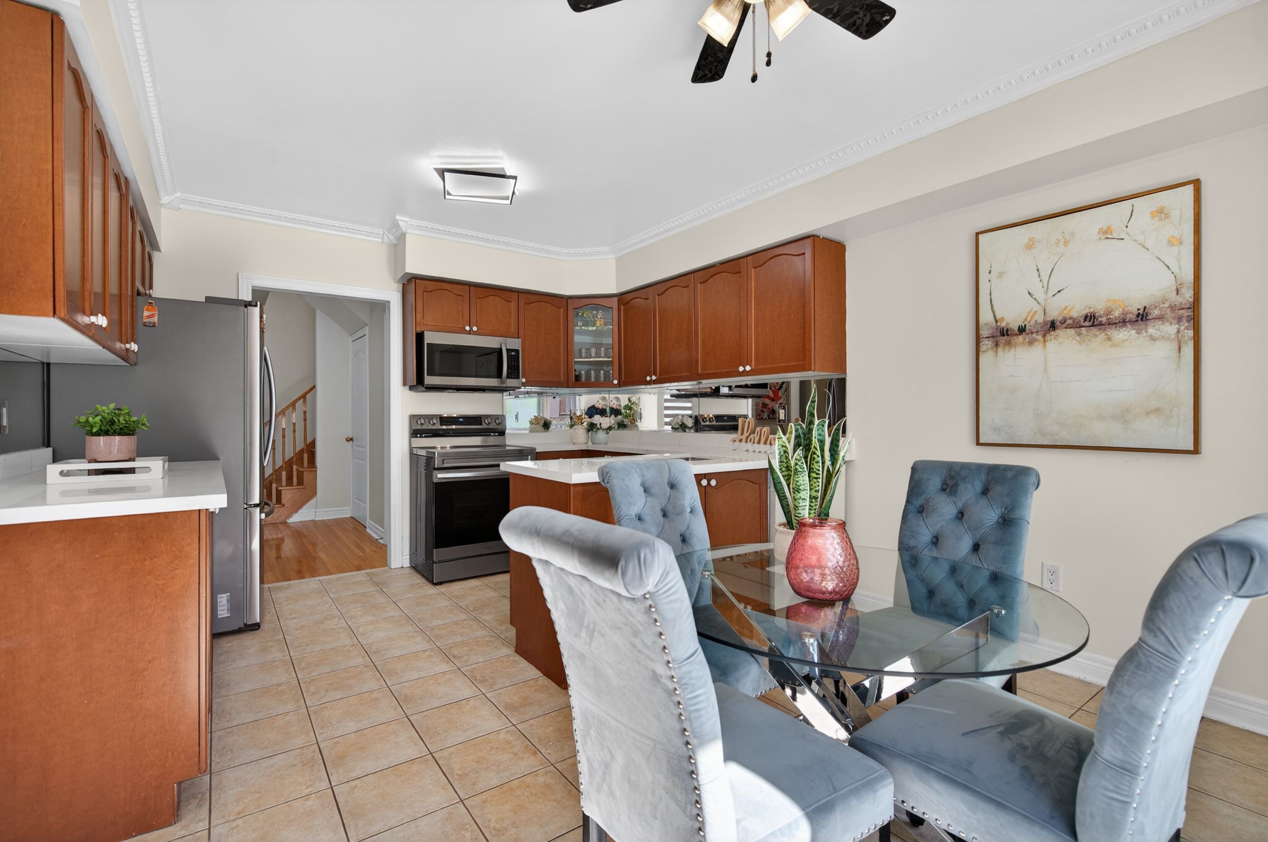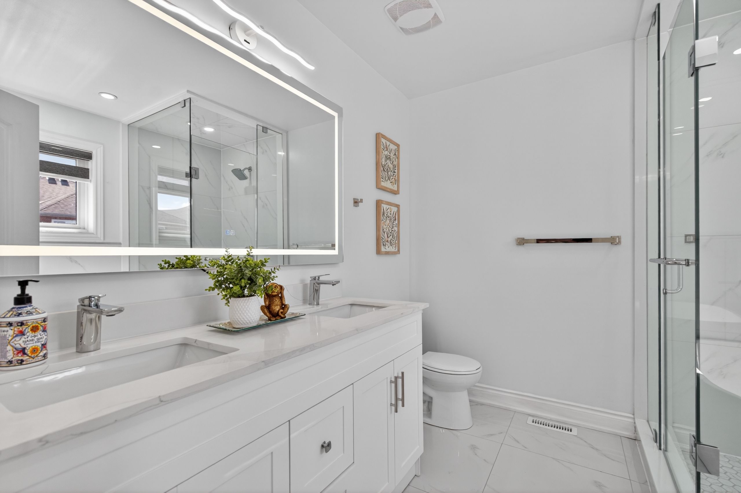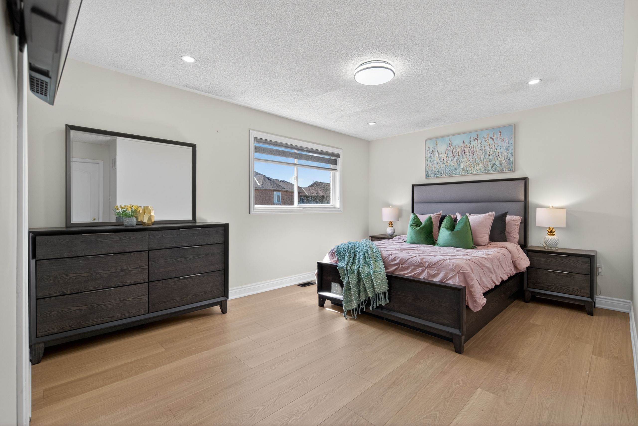 Welcome to this rare to find north east facing fully upgraded home sitting on a premium lot (pie shaped lot) with a huge backyard, perfect for growing families and outdoor enjoyment. This spacious home features 4 bedrooms and 4 washrooms, with a functional layout including separate living, dining and family rooms, offering plenty of space for both everyday living and large family gatherings. Bright open-concept kitchen features brand new quartz counter tops, stainless steel stove(2025), stainless steel fridge along and over the range microwave(2025) and a separate breakfast area ideal for family meals. Many other recent upgrades include new paint, new flooring in 3 bedrooms, brand new vanity in powder room, brand new upgraded primary ensuite, basement washroom and beautifully renovated second washroom. Finished basement features a large media room and 4th bedroom with separate entrance through the garage-perfect for in-laws or teens. Extended driveway fits up to 5 cars, great for multi-car families and guests. Exterior and interior pot lights, exposed concrete stairs and front porch enhance both style and curb appeal. Located in a prime, family-friendly neighborhood close to schools, parks, and all essential amenities. Must see...