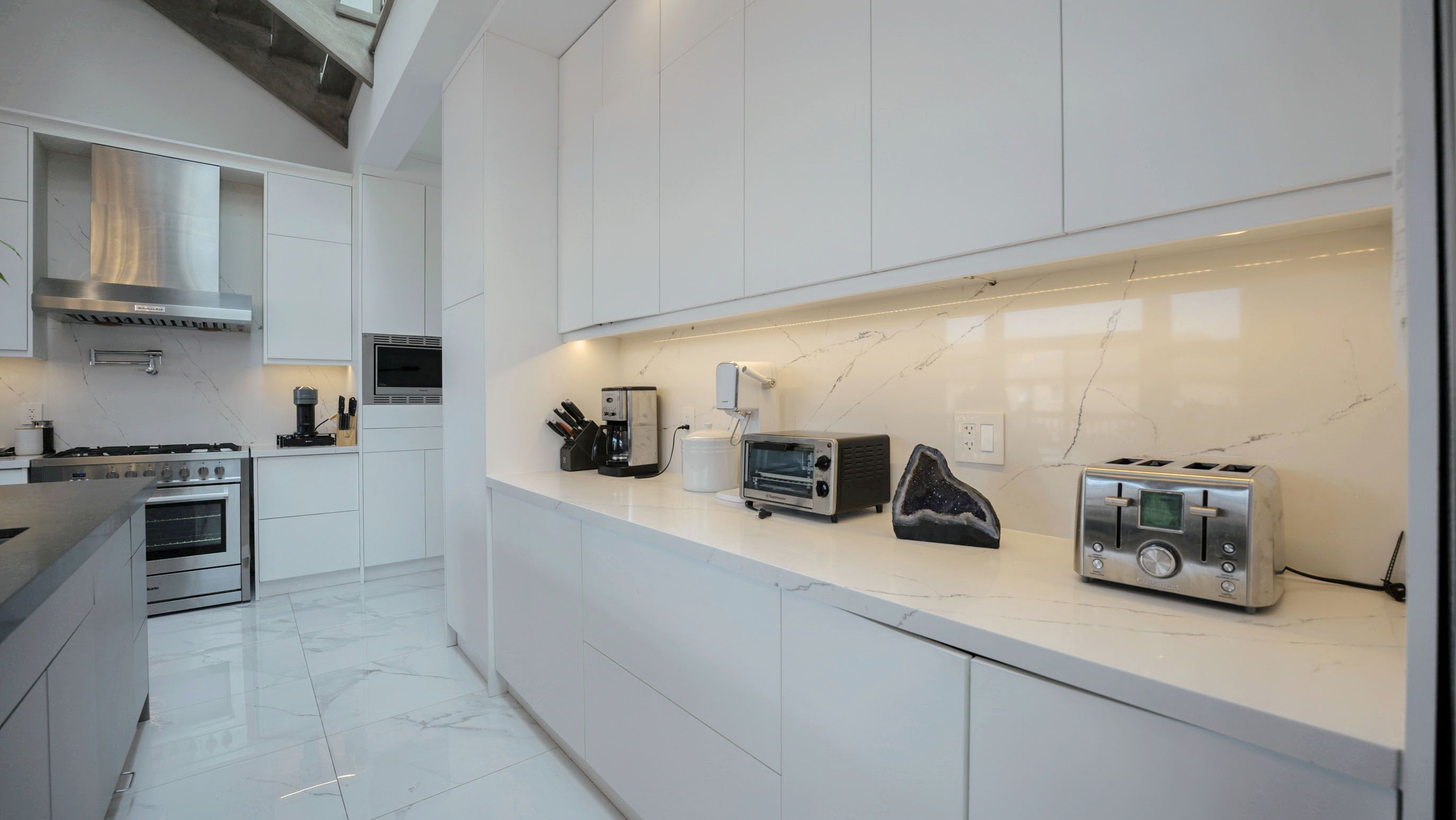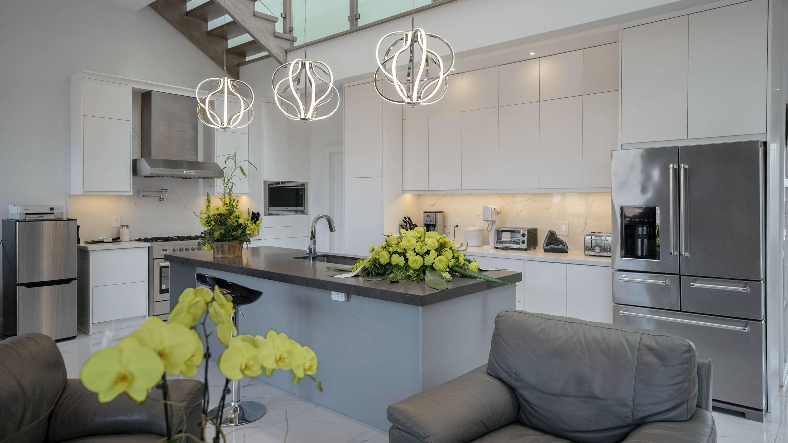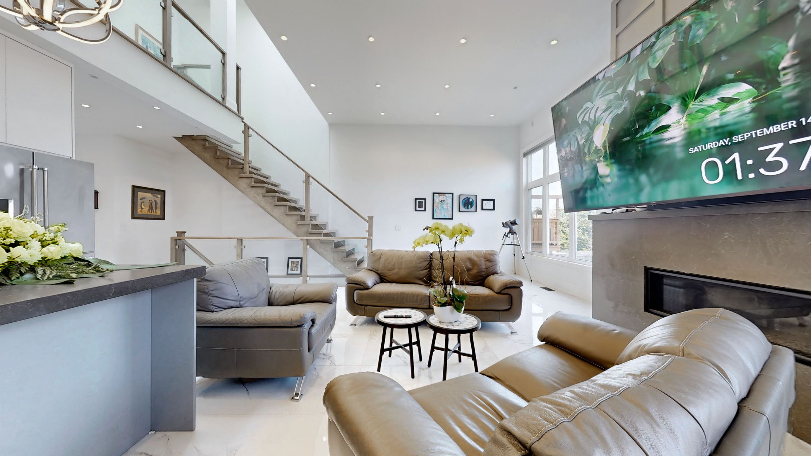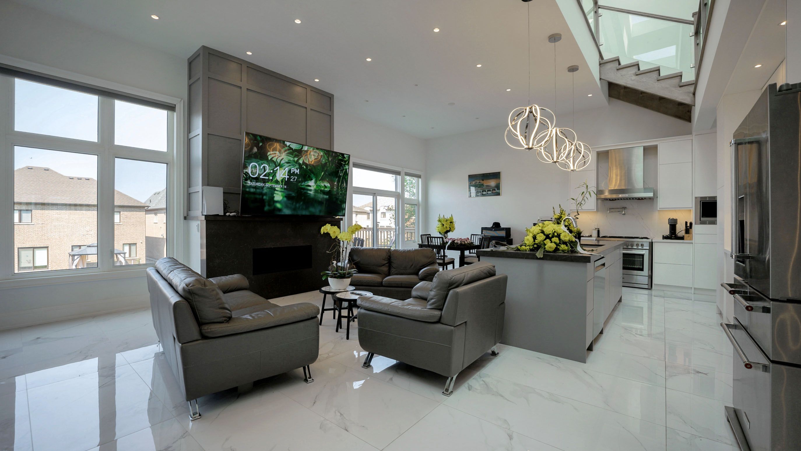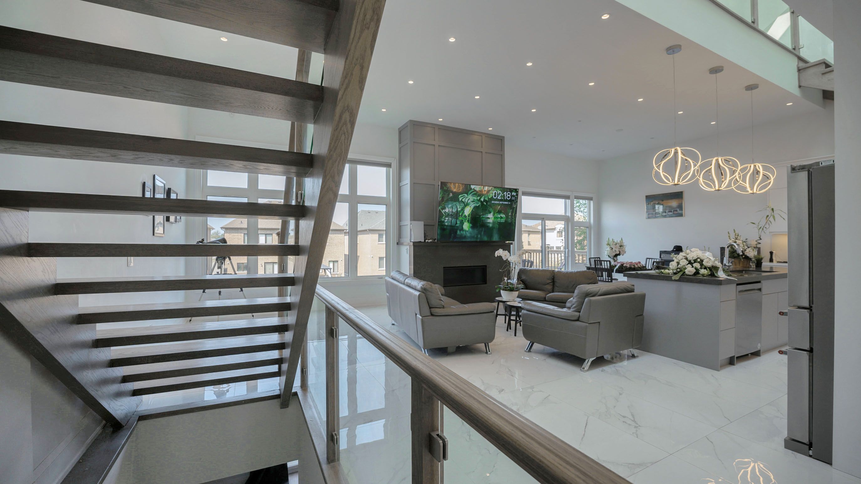 A custom built home located within minutes of lake simcoe, combines a sleek minimalist aesthetics with a functional design and cutting edge technology. Over 3,122 sq ft plus fully finished w/o bsmt. Simplicity and sharp angles for a bold architectural statement. Open flowing spaces enhances a modern feeling. Main floor w/12' ceilings, open to above skylight, large ceramic tiles flooring throughout. Open wooden stairway to upper and lower level w/glass railings. Gourmet kitchen boasts s/s appliances, push open cabinetry, quartz counters/backsplash, centre island, natural colour palette-white, grey and natural tones. Stunning gas f/place w/quartz and panelled wall, expansive glass surfaces bring in natural light and blur the line between indoors and outdoors, cathedral ceilings in bdrms, quartz in baths, laundry @ main & upper, pot lights t/out.