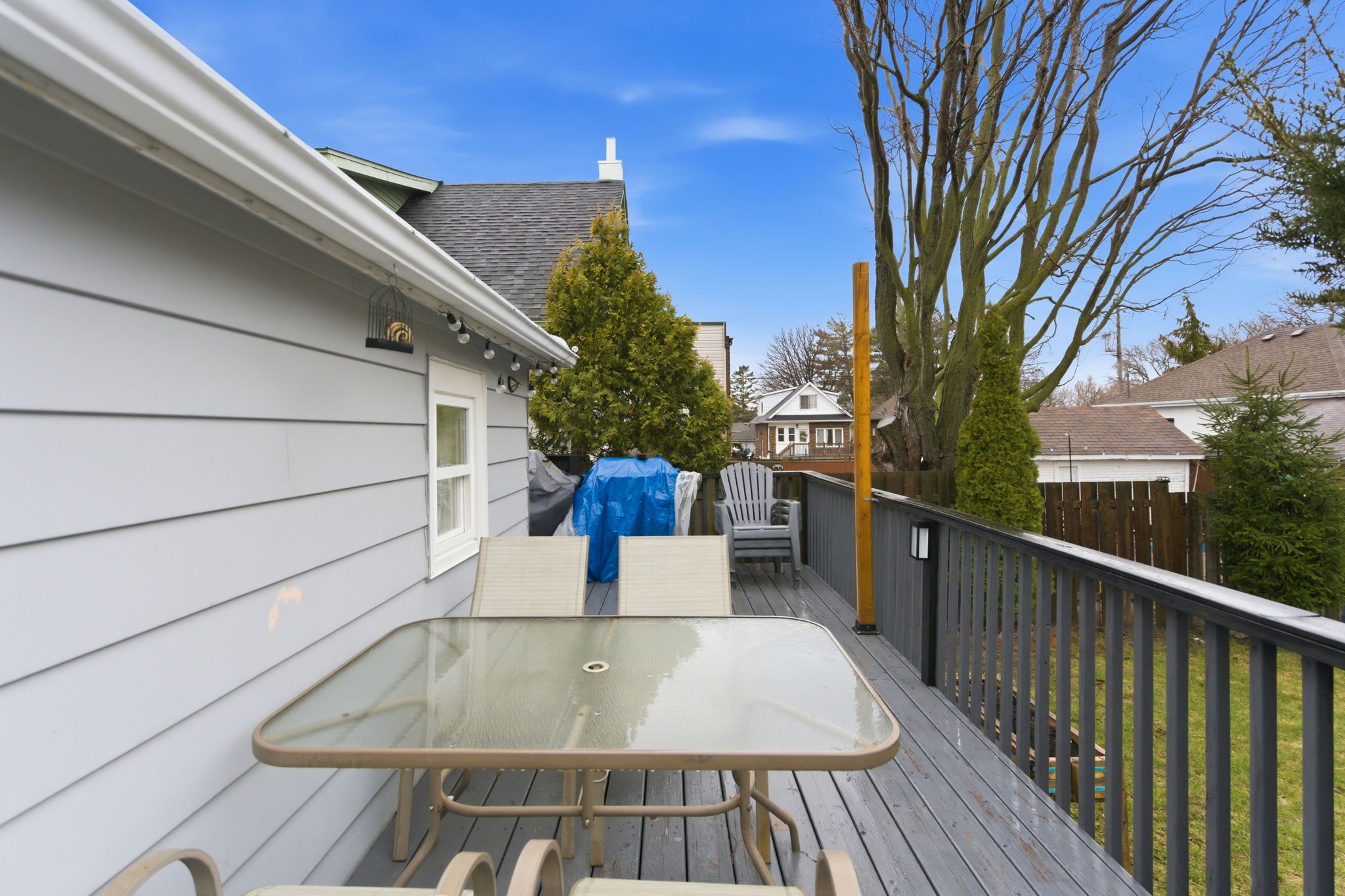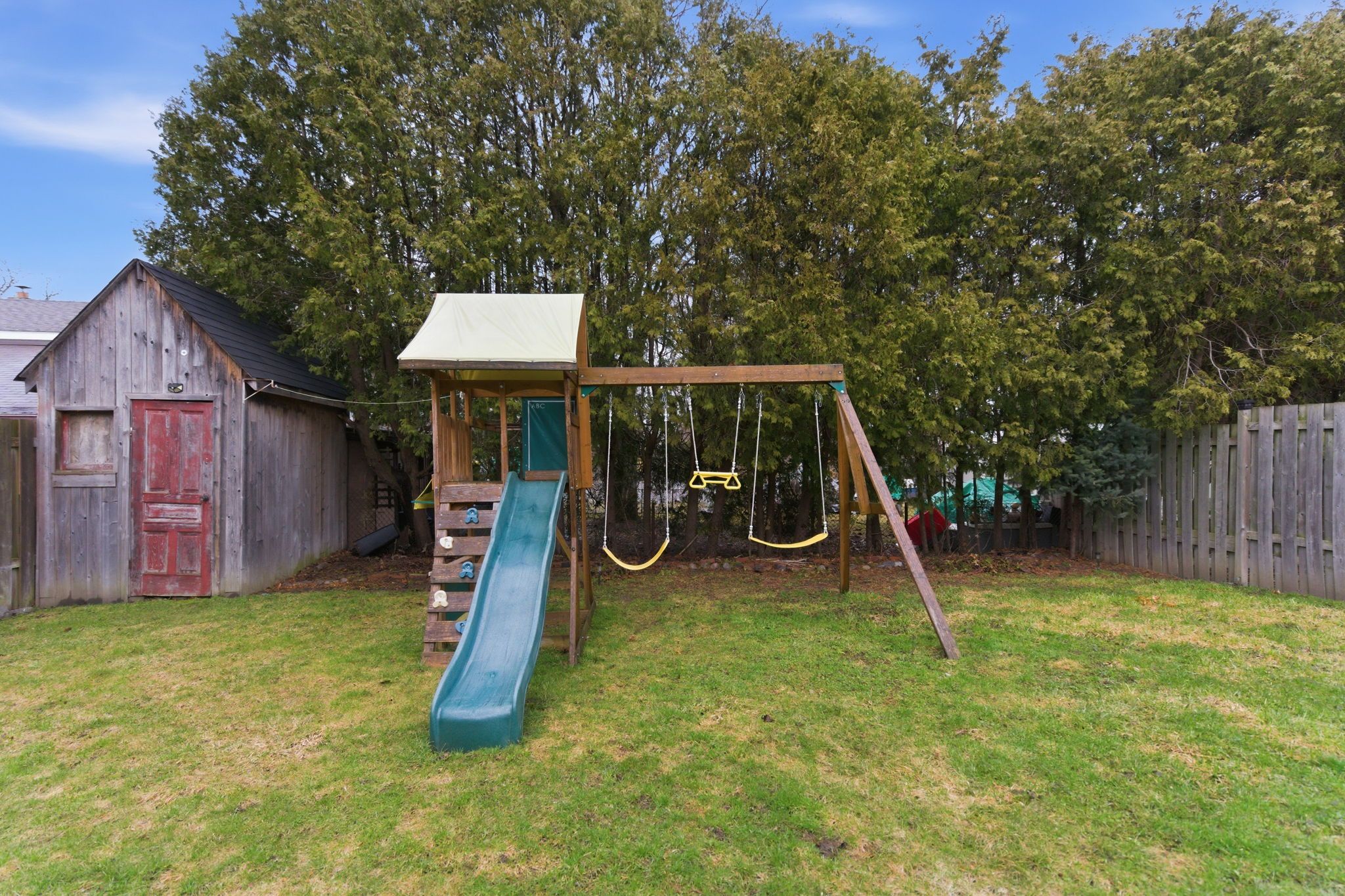 • Fenced backyard with deck and children's playset for outdoor fun.