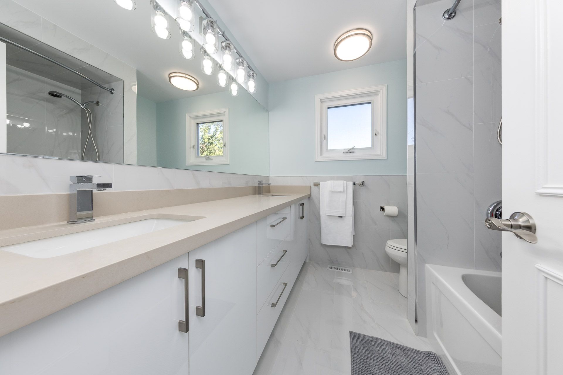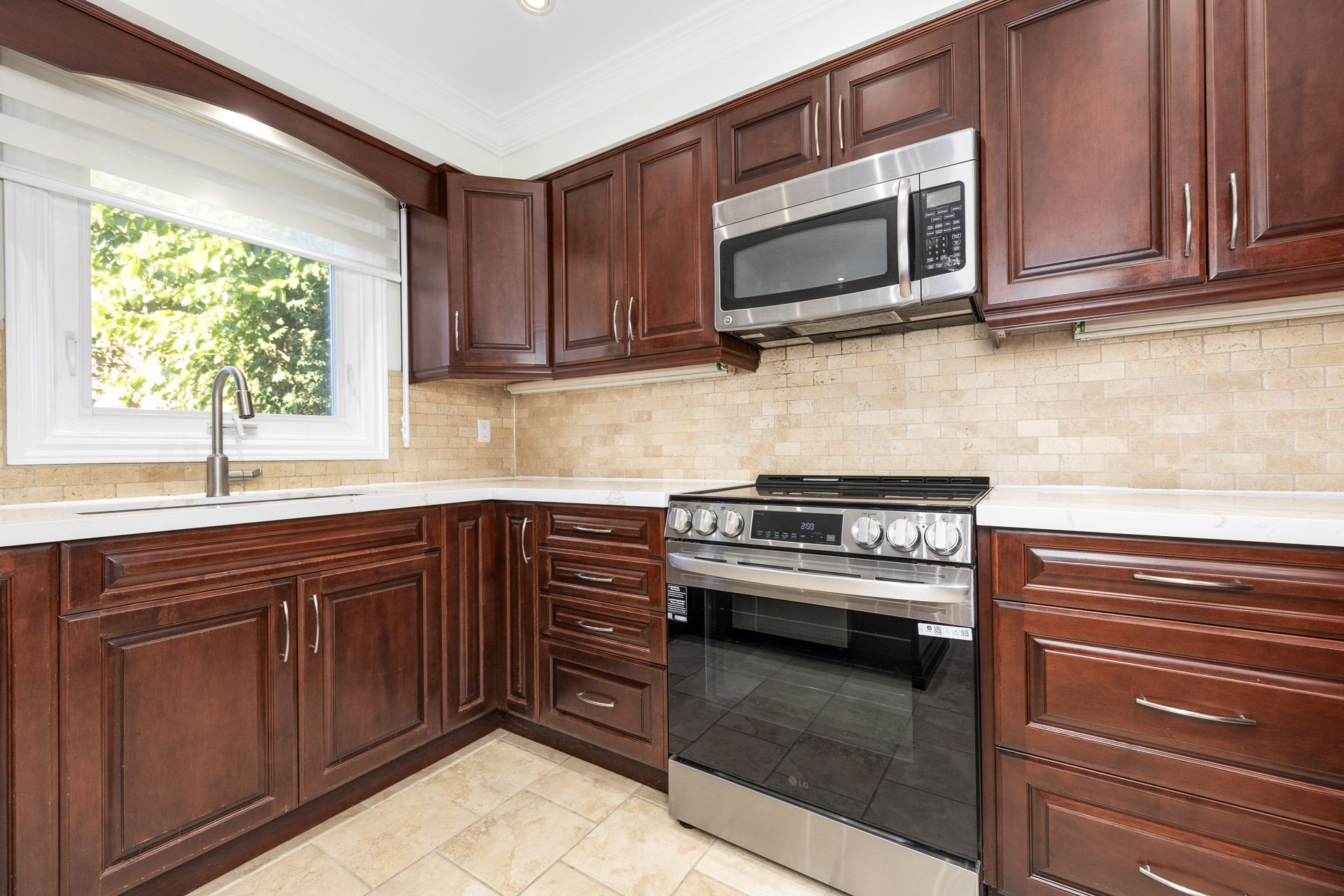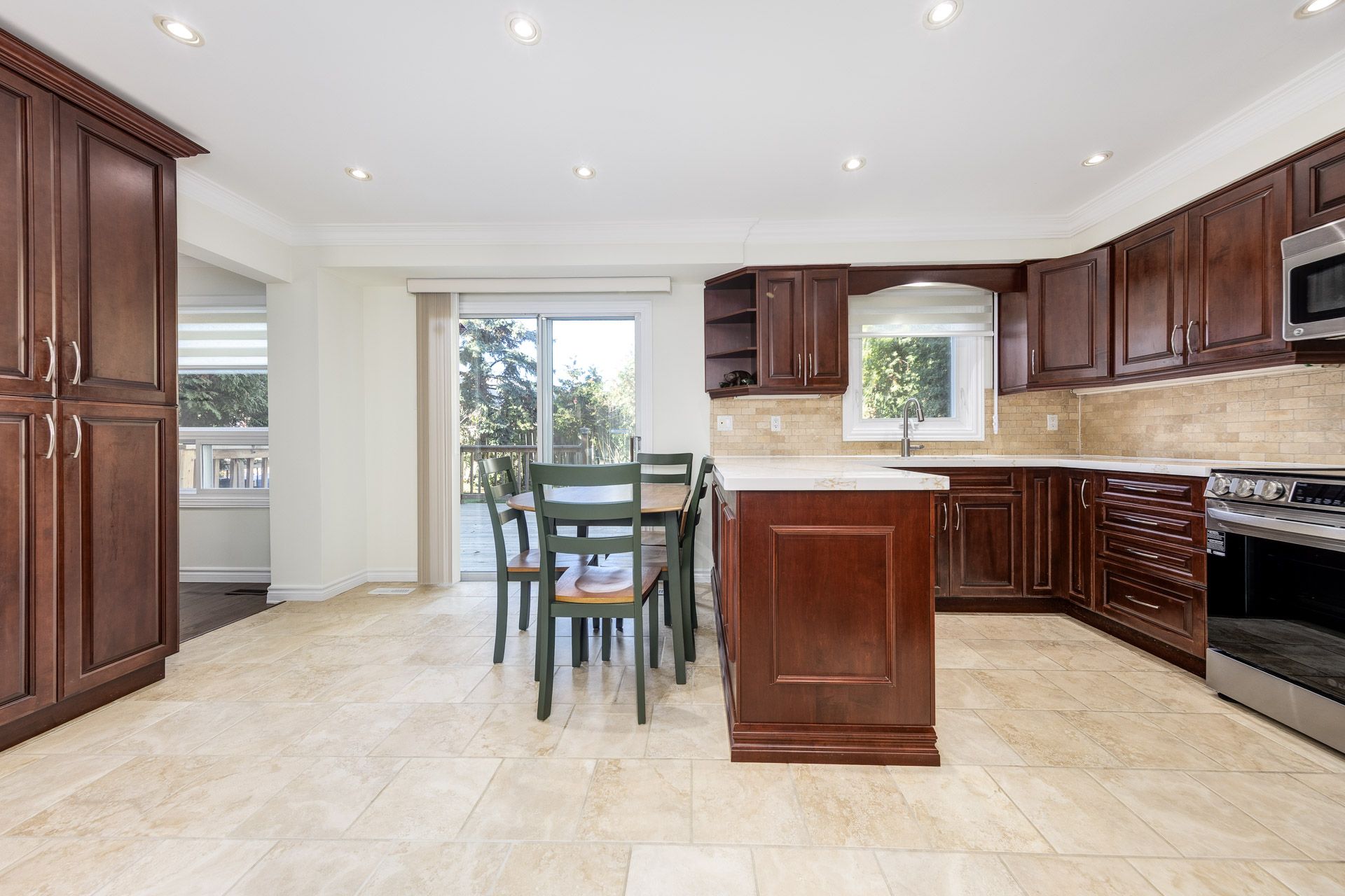 Beautifully updated 4 + 1 bedroom family home in a highly sought-after neighbourhood. This property combines modern elegance with everyday comfort. The luxor-designed kitchen features quartz countertops, tumbled-marble backsplash, soft-close cabinetry, stainless-steel appliances, extra pantry, porcelain-tile flooring, and stylish crown moulding enhanced by low-voltage pot lights. The main floor showcases oak hardwood floors throughout the dining and family areas, offering a seamless open-concept flow perfect for today's lifestyle. A fully finished basement includes a nanny's suite with a 3-piece bath, while the second floor boasts a bright skylight and a convenient laundry room. Step out to a large deck and beautifully landscaped backyard-ideal for entertaining or quiet relaxation. Enjoy direct access from the main floor to a double-car garage. Prime location: steps to community centres, parks, top-ranked schools, shuls, and retail. Only 5 minutes to hwy 407 / 7, public transit, and shopping. Recent updates: driveway & interlock (2025), fresh paint (2025), oak stairs (2025), roof shingles (2023), high-efficiency furnace (2024), eavestrough (updated 2025), and led lighting throughout. A perfect blend of style, comfort, and convenience-truly move-in ready!