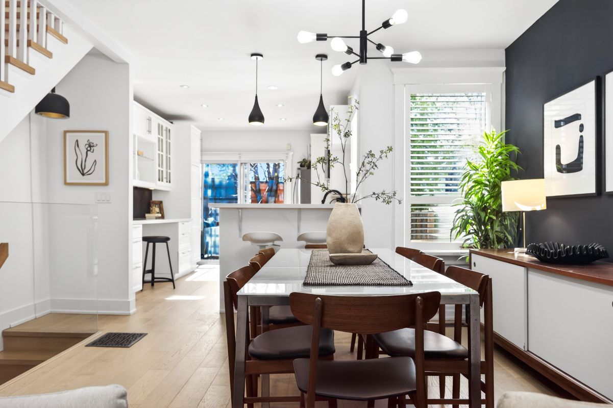 Welcome to 148 heward avenue, a stunning edwardian-era brick home in the heart of leslieville, where timeless curb appeal meets a designer renovation. Featuring a charming front porch and an impressive 2-storey layout, this 4-bedroom residence offers exceptional space & style for modern family living. Inside, you'll find a thoughtfully designed open-concept main floor with spacious living and dining areas, enhanced by pot lights and elegant finishes throughout. The gourmet kitchen is a true showpiece, complete with quartz countertops, stainless steel appliances, abundant storage, and a breakfast bar-perfectly complemented by white oak hardwood floors, exposed brick, and a chic ceramic backsplash. The underpinned basement expands your living space with radiant in-floor heating, a pantry, a full bathroom with a rainforest shower, a fifth bedroom, and a dedicated home office with custom built-ins-ideal for today's flexible lifestyle. Upstairs, the second level features three generously sized bedrooms, including a beautiful primary retreat with a bay window and his-and-hers closets, along with a spa-inspired bathroom showcasing a classic clawfoot tub. The third level adds even more versatility with a fourth bedroom and a bright rec room or home office, highlighted by skylights and a cozy pine wood panelled ceiling. Step outside to a west-facing backyard oasis, perfect for enjoying afternoon sun and evening gatherings. Relax or entertain on the large back deck with bbq area, unwind on the stone patio, and take advantage of the newly built double-car garage. Situated in one of toronto's most sought-after, family-friendly neighbourhoods, on a block that features an annual street party with friends & neighbours, you're just steps to queen street east, jimmie simpson park, and beloved local favourites including pilot coffee roasters, ed's real scoop, & slowhand pizza. A rare opportunity to own a beautifully reimagined home in vibrant leslieville-this one truly has it all.