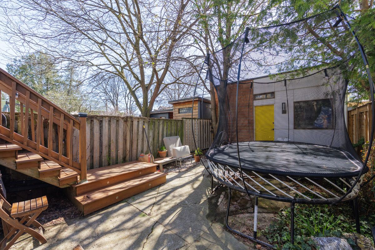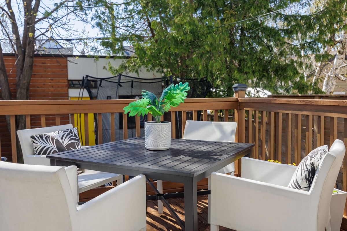 • West-facing backyard oasis with a large deck and BBQ area.