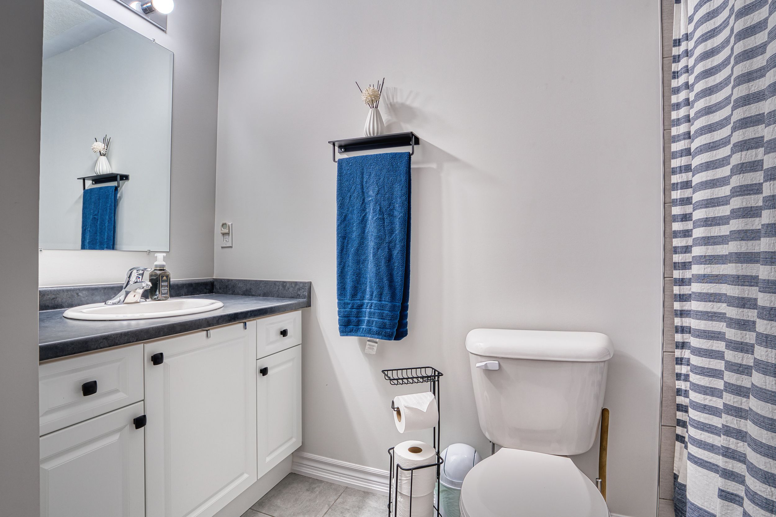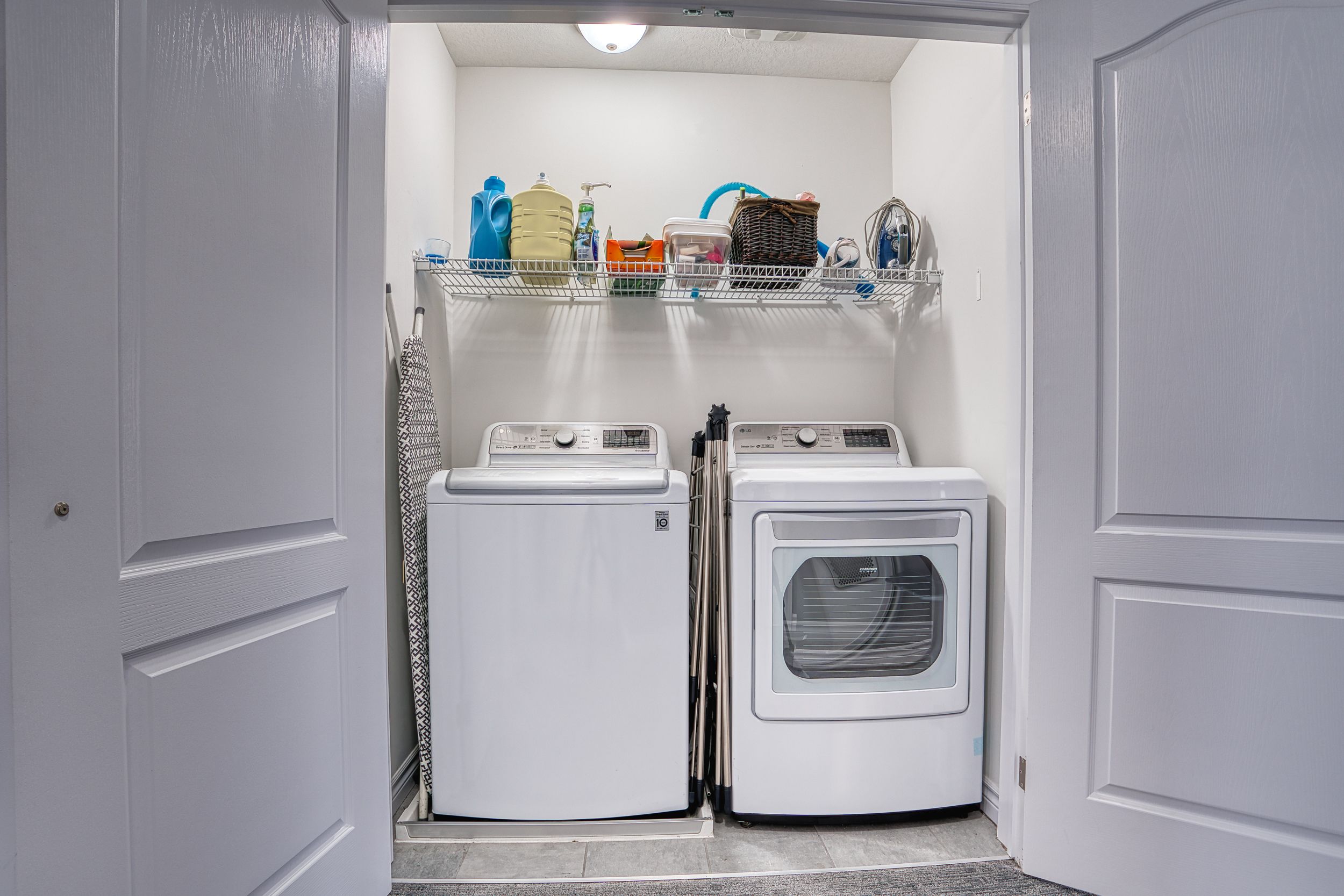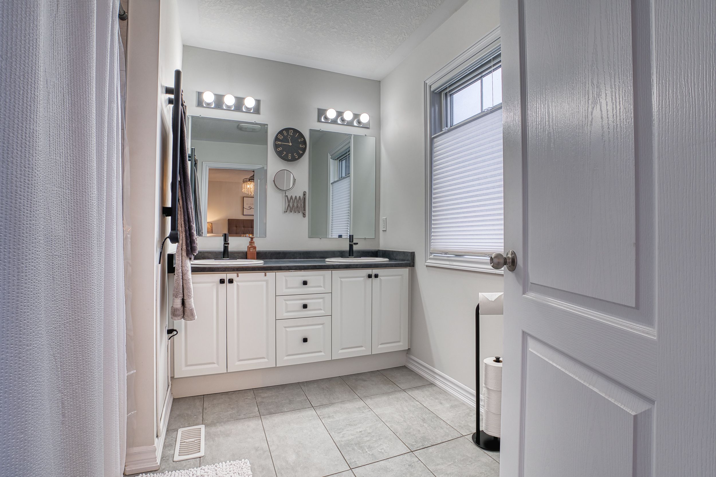• Spacious primary bedroom features electric fireplace and luxurious ensuite bathroom.