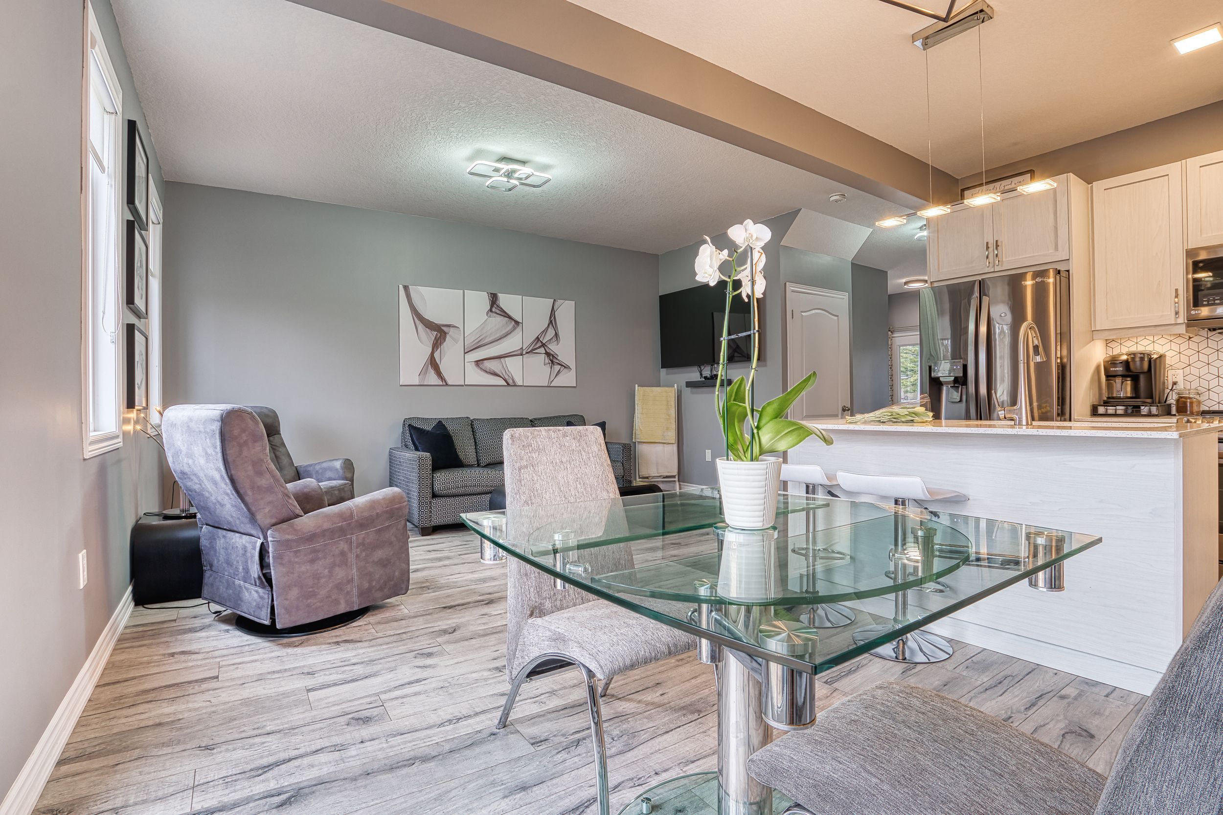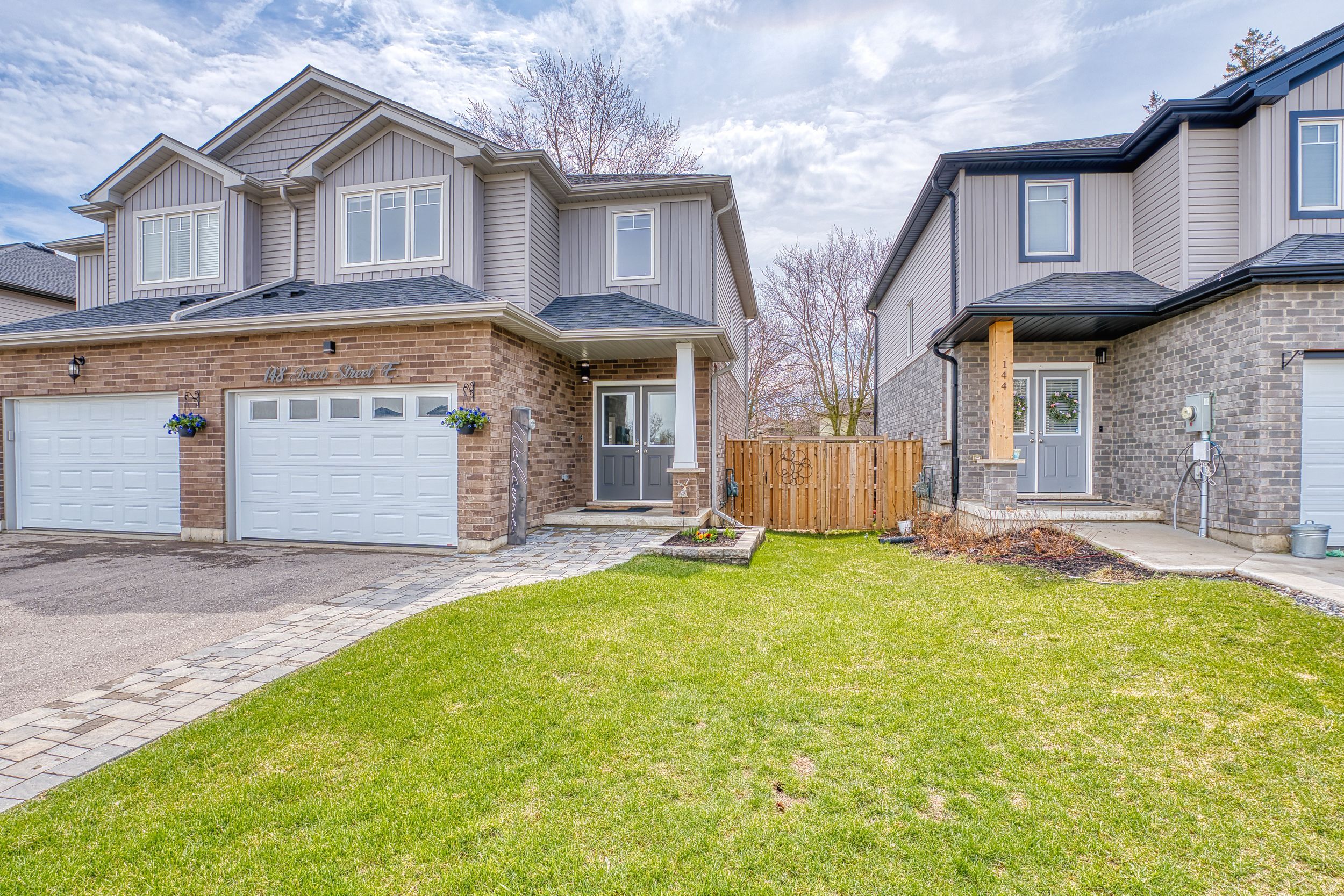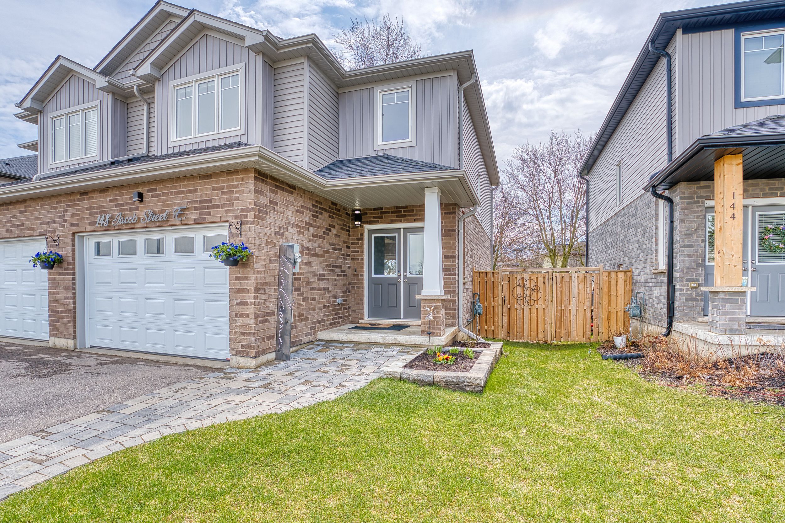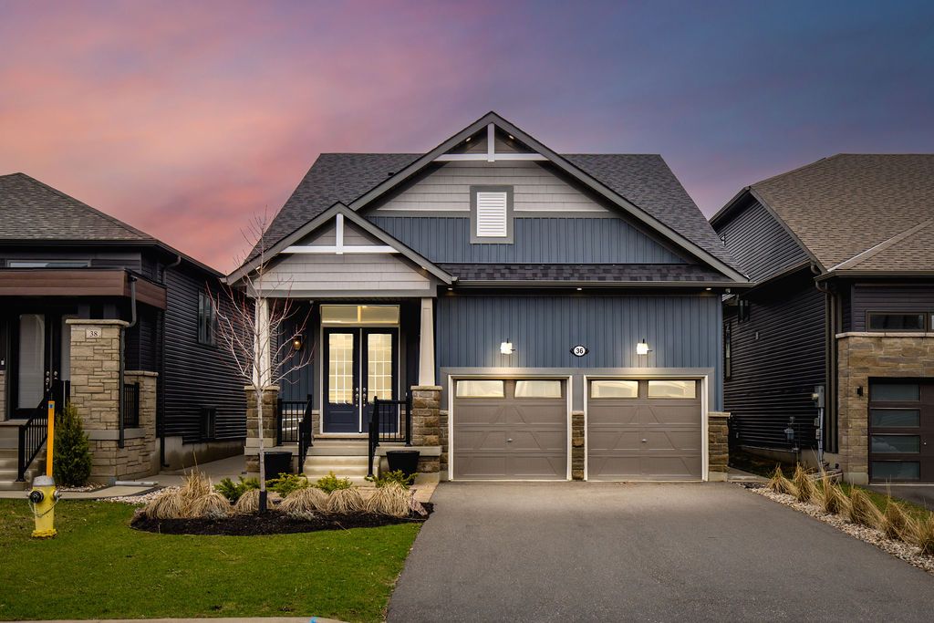 Rural charm, modern convenience. Sharp 3 bed, 3 bath, semi-detached home in quaint tavistock on quiet cul-de-sac allows you to enjoy the best of country living in a small enclave of newer modern homes only 5 years old. This home has upgraded features throughout including an enhanced custom kitchen with quartz island breakfast bar, touchless faucet, upgraded storage and counterspace, illuminated glass-door corner cabinet, all in a wonderful open concept main floor that embraces family life! Walk-out from bright patio doors with custom blinds, to private, fenced back yard fully landscaped and ready for summer with deck, poured patio, and lawn accented with built-in flower boxes. Double door front entry with glass inserts, keyless entry, door cam, direct access to generous 1. 5 car garage with garage door opener w/wifi option. The second floor is well appointed with a primary bedroom featuring a walk-in closet, electric fireplace, and 4 piece ensuite - note the his & hers sinks, oversized walk-in shower, heated towel rack and the top-down/bottom-up custom blinds. Bright second and third bedrooms, 4 piece bathroom, linen closet, and a separate laundry space round out the second floor space. This home has upgraded faucets, lighting fixtures, main floor 9 foot ceilings and convenient touches throughout. Basement is bright with high ceilings and deep windows to let natural light in.