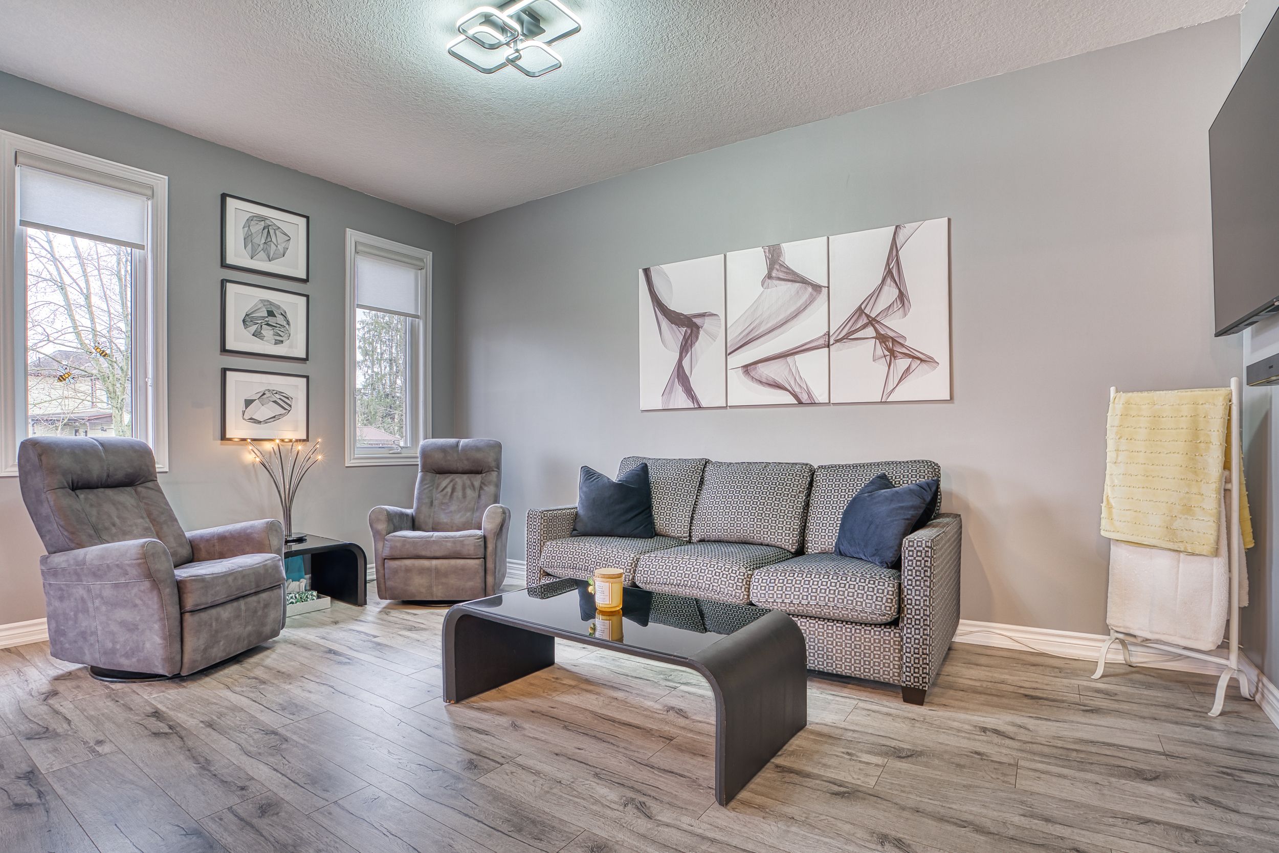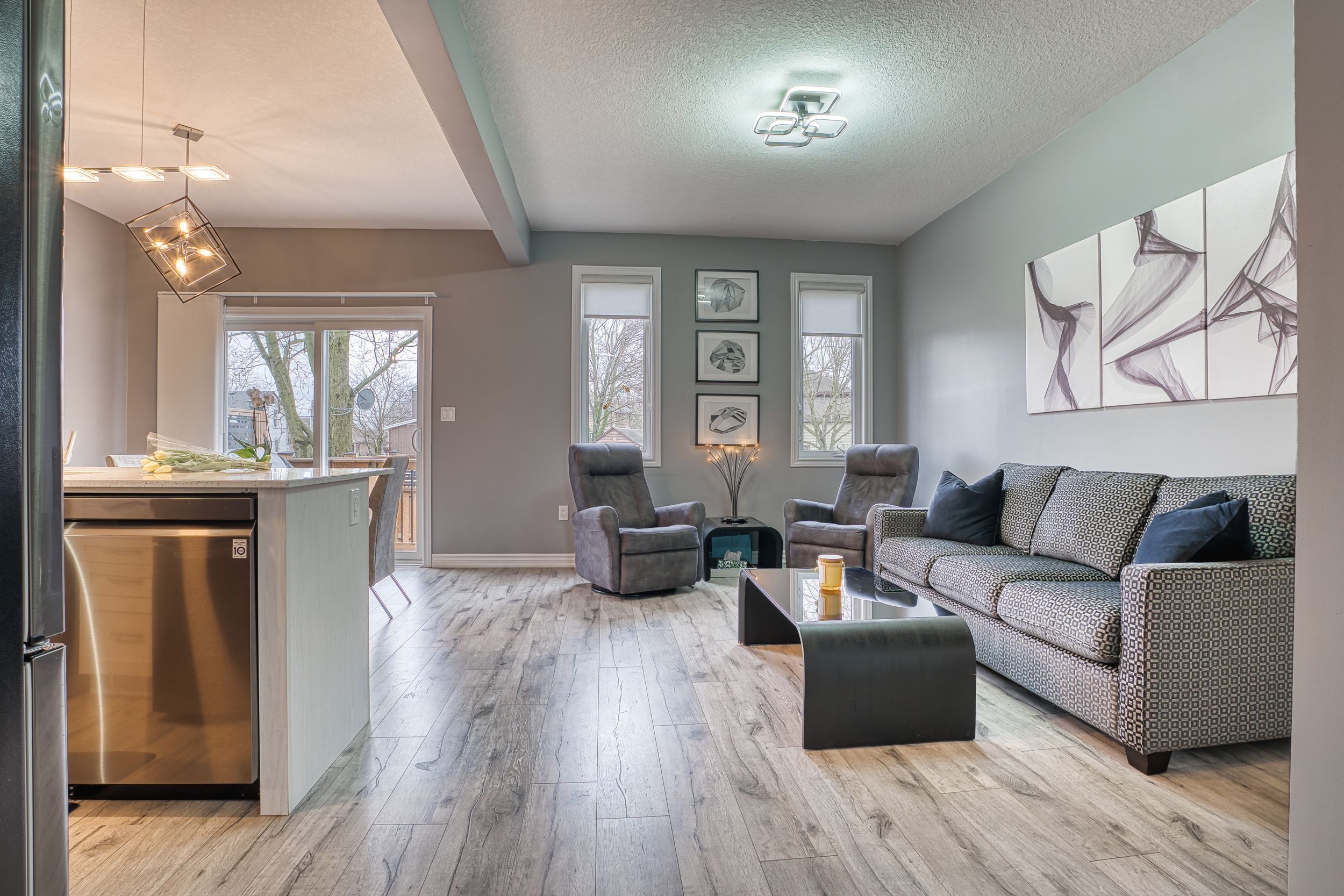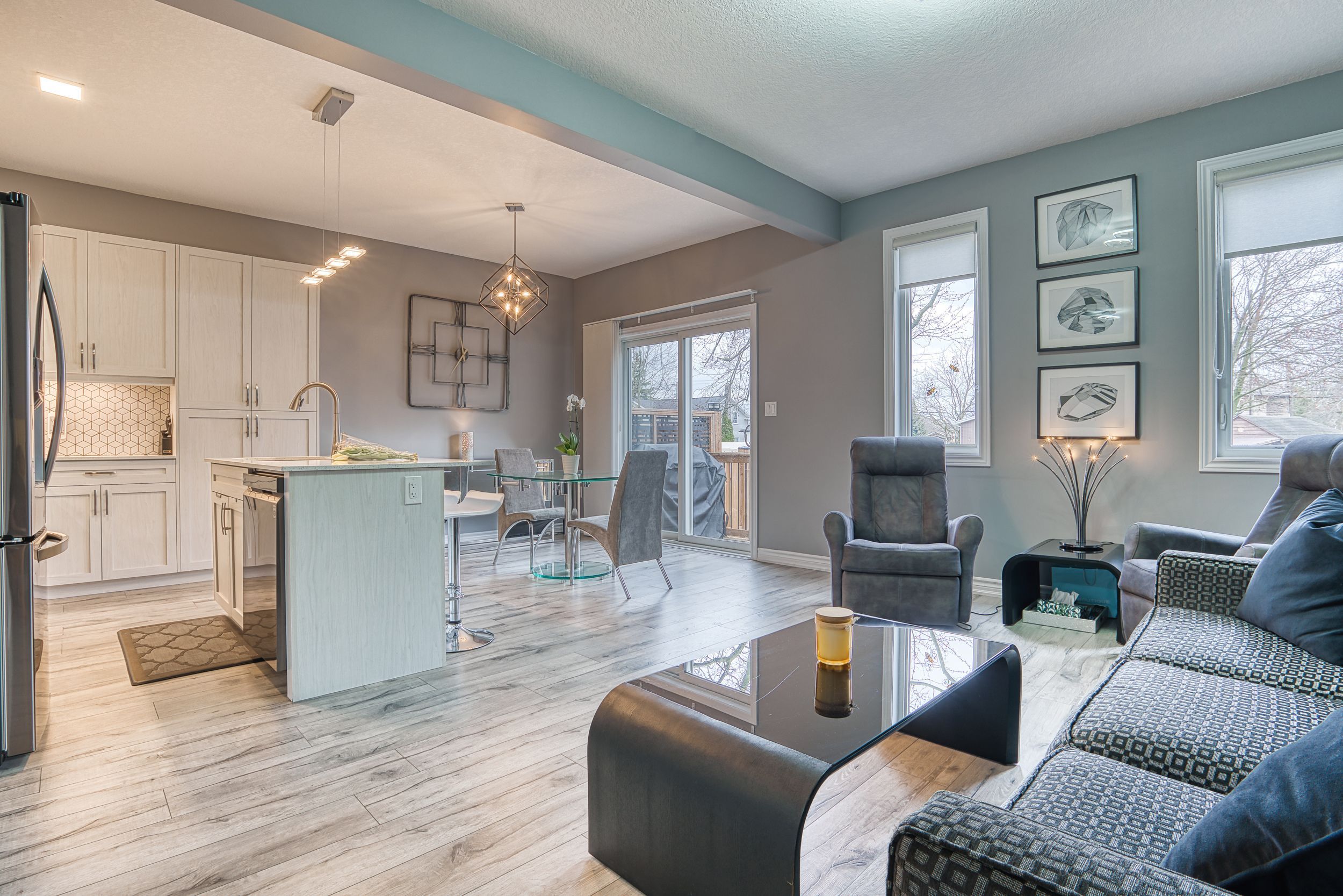 Rural charm, modern convenience. Sharp 3 bed, 3 bath, semi-detached home in quaint tavistock on quiet cul-de-sac allows you to enjoy the best of country living in a small enclave of newer modern homes only 5 years old. This home has upgraded features throughout including an enhanced custom kitchen with quartz island breakfast bar, touchless faucet, upgraded storage and counterspace, illuminated glass-door corner cabinet, all in a wonderful open concept main floor that embraces family life! Walk-out from bright patio doors with custom blinds, to private, fenced back yard fully landscaped and ready for summer with deck, poured patio, and lawn accented with built-in flower boxes. Double door front entry with glass inserts, keyless entry, door cam, direct access to generous 1. 5 car garage with garage door opener w/wifi option. The second floor is well appointed with a primary bedroom featuring a walk-in closet, electric fireplace, and 4 piece ensuite - note the his & hers sinks, oversized walk-in shower, heated towel rack and the top-down/bottom-up custom blinds. Bright second and third bedrooms, 4 piece bathroom, linen closet, and a separate laundry space round out the second floor space. This home has upgraded faucets, lighting fixtures, main floor 9 foot ceilings and convenient touches throughout. Basement is bright with high ceilings and deep windows to let natural light in.