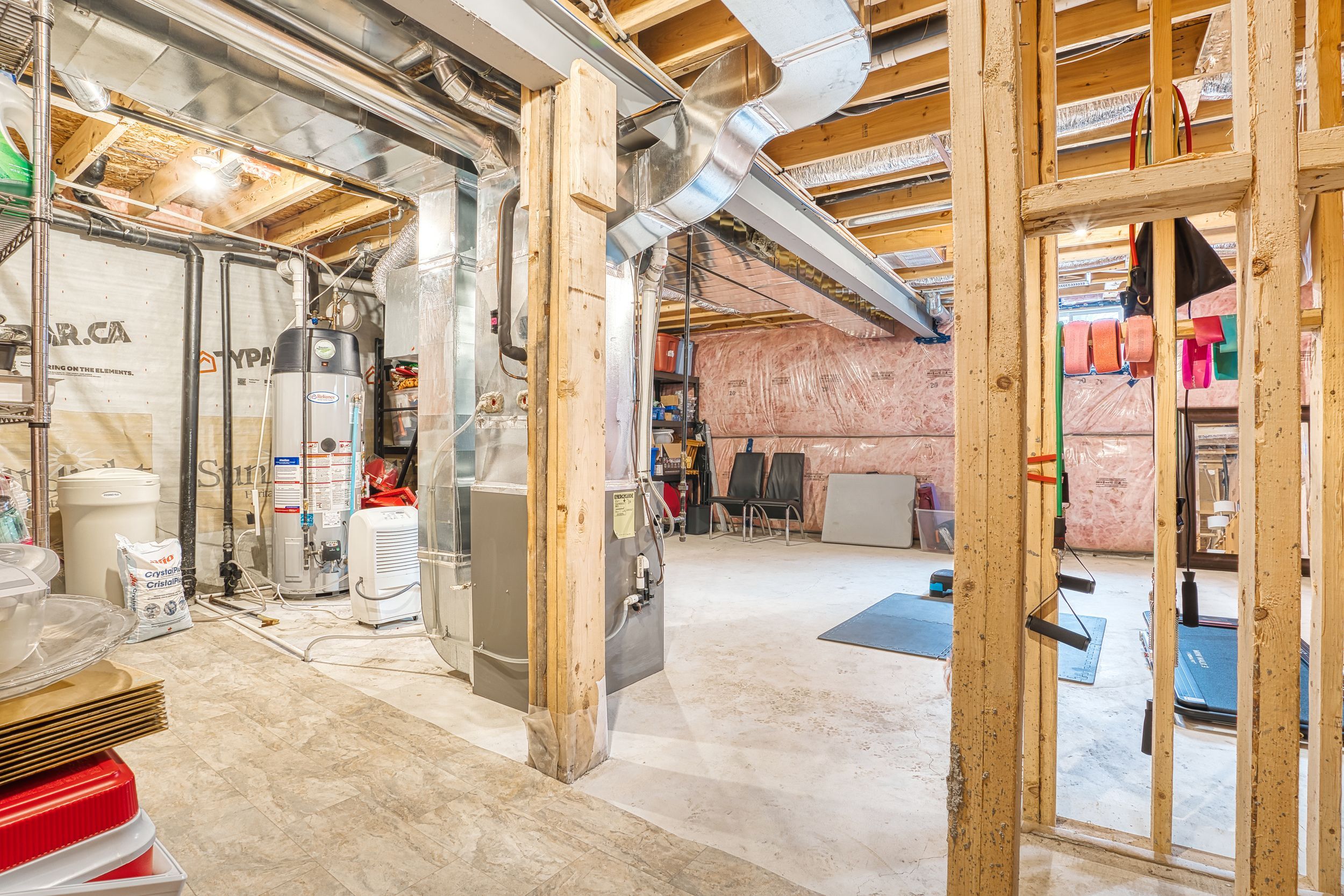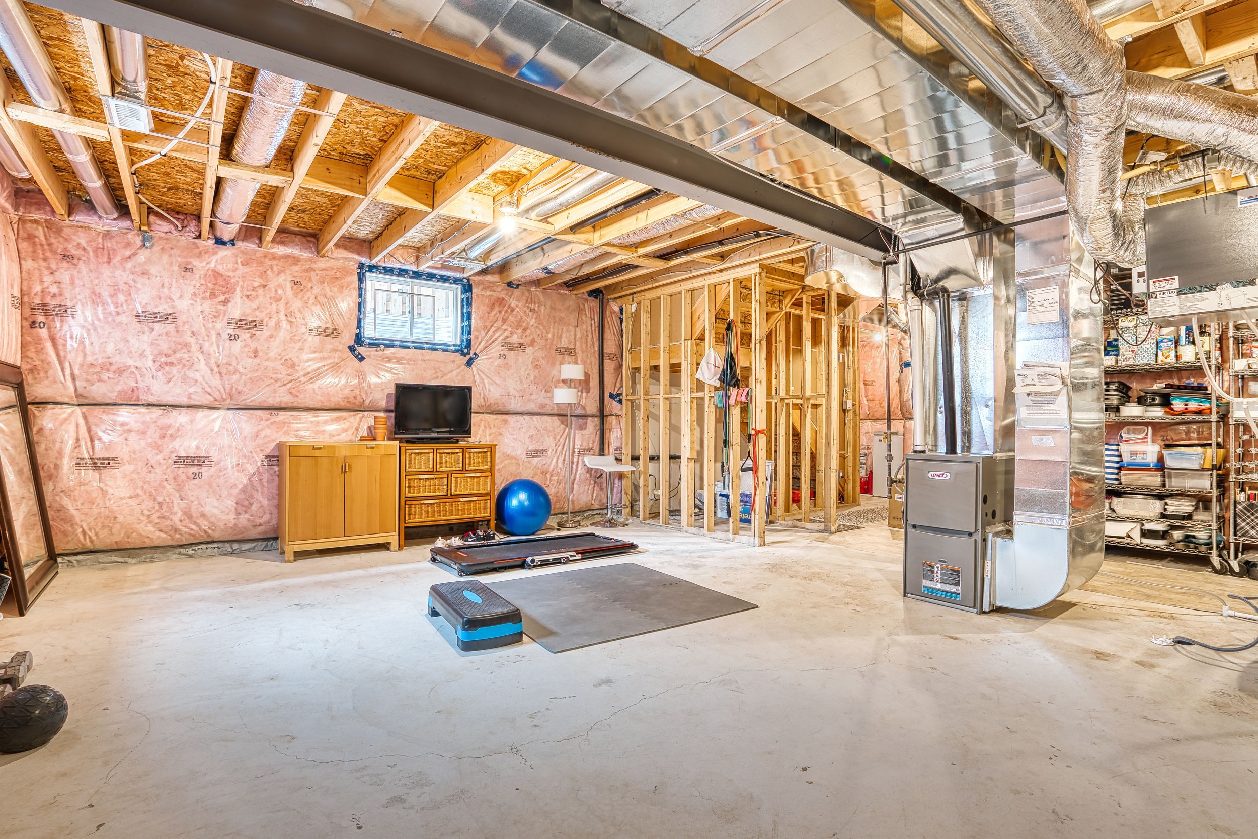• Bright unfinished basement with high ceilings, perfect for future customization.