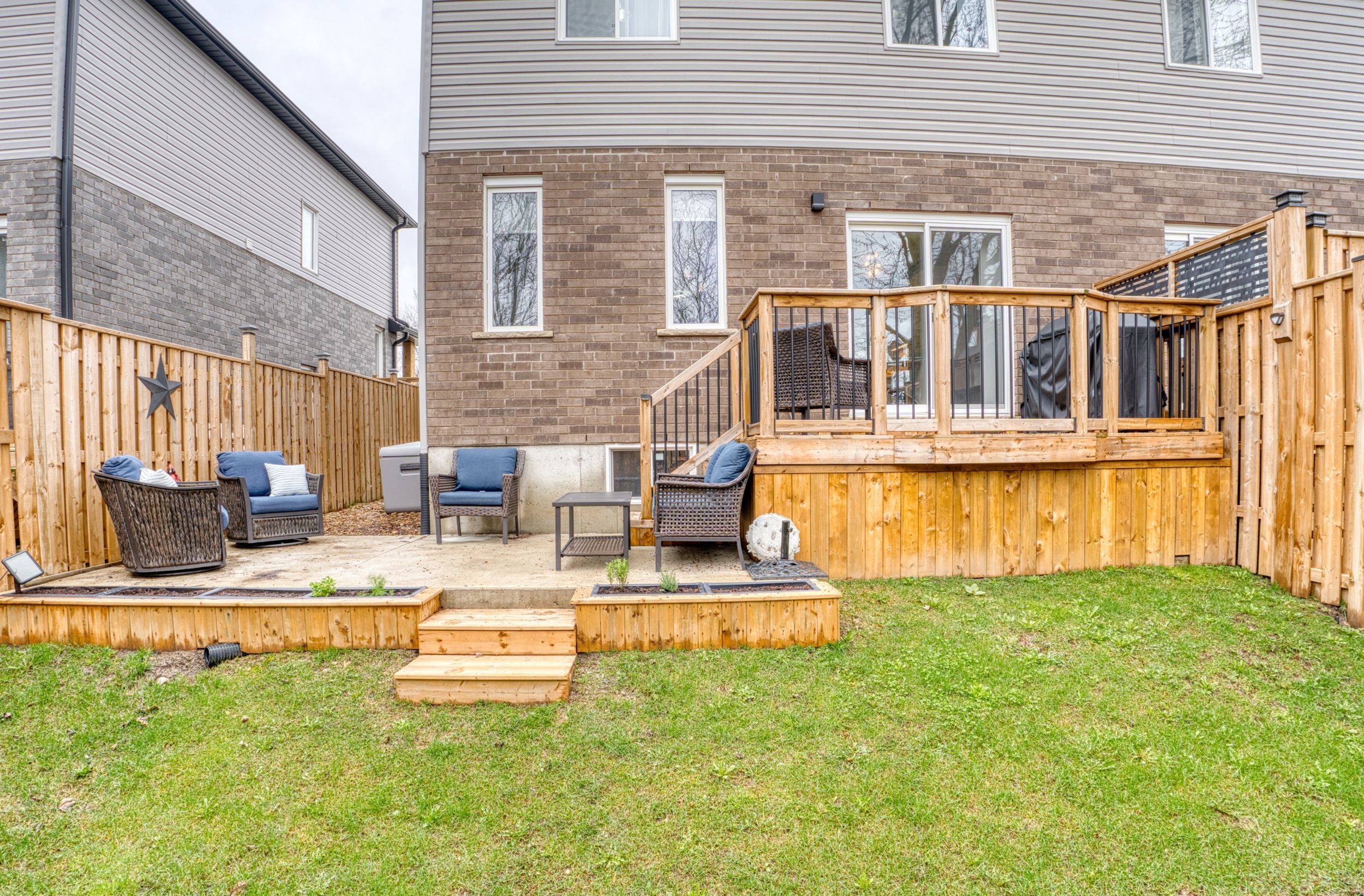 • Private, landscaped backyard with deck and poured patio for summer fun.