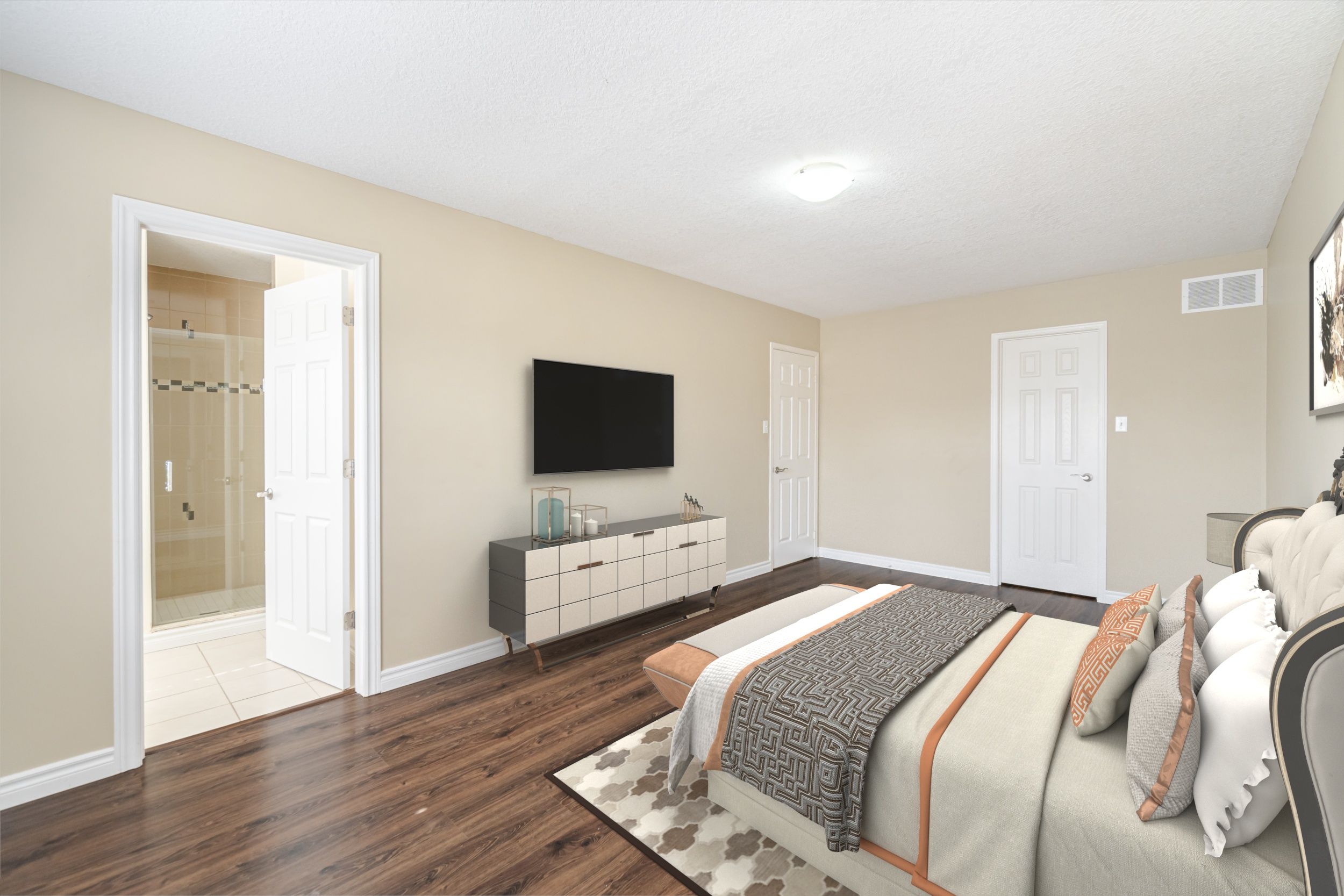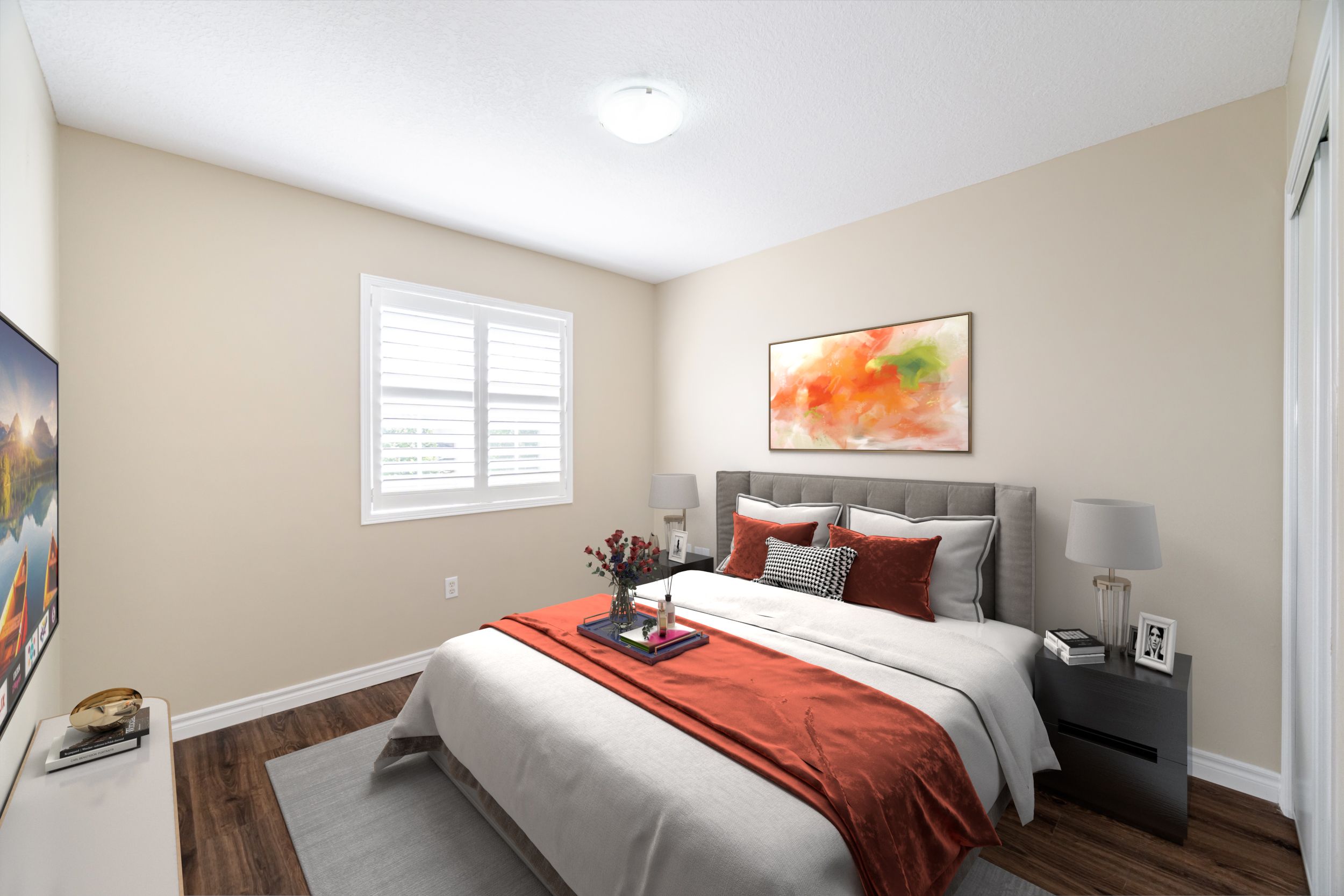 • Hardwood floors throughout, no carpet for easy maintenance.