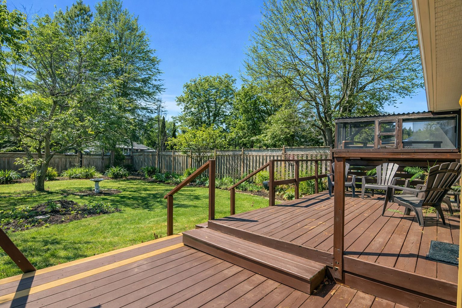 • Large private backyard surrounded by mature trees, perfect for relaxation and gatherings.