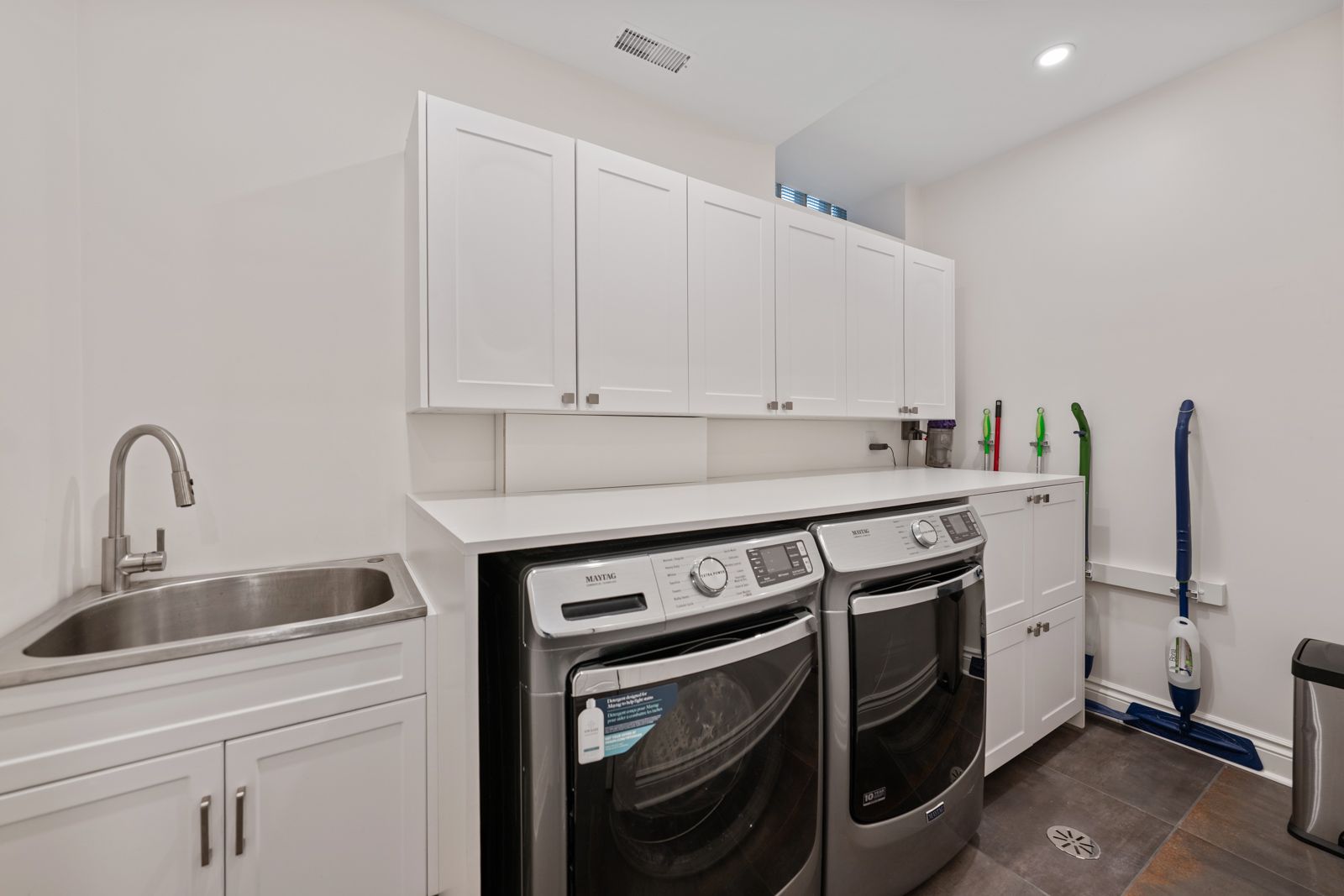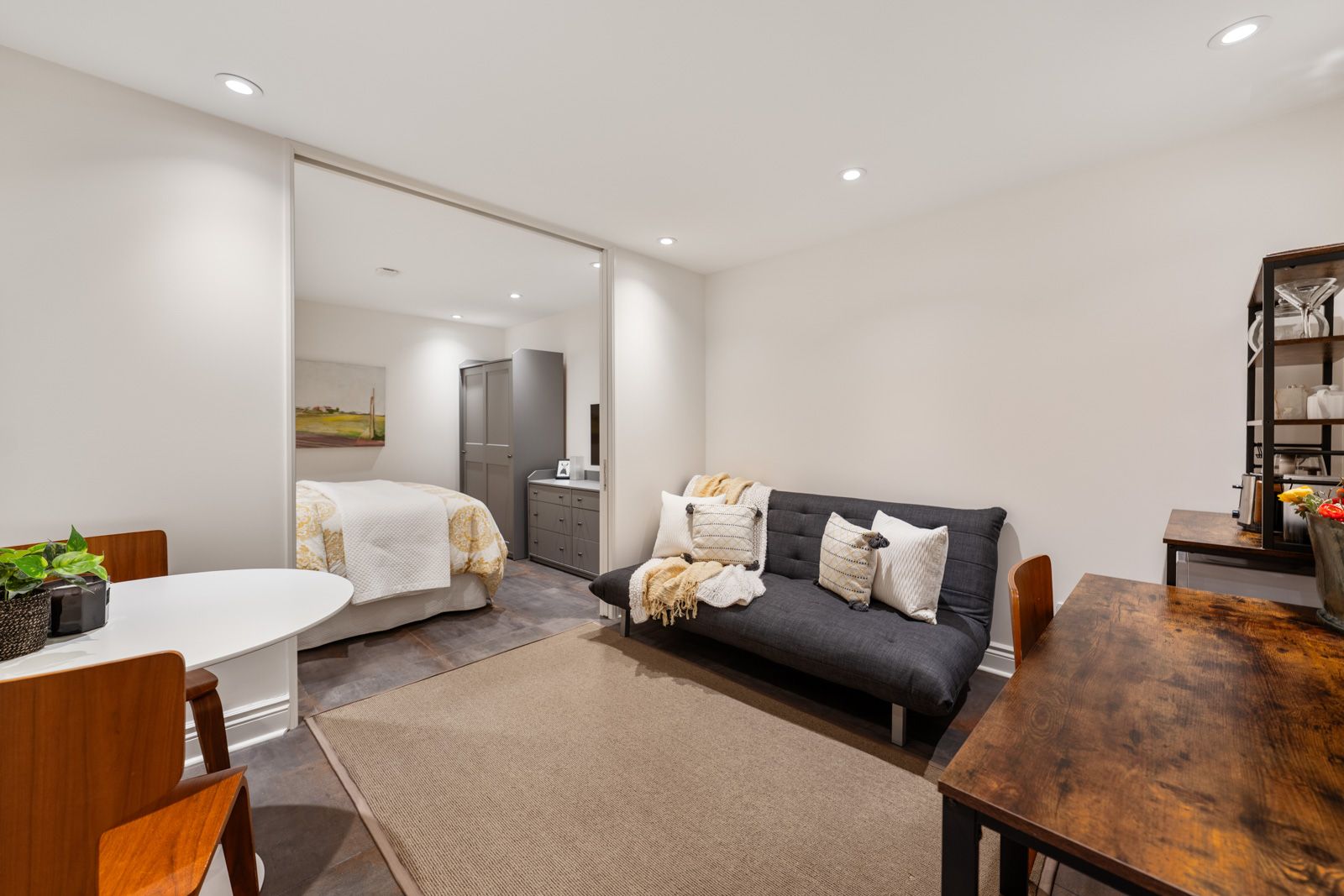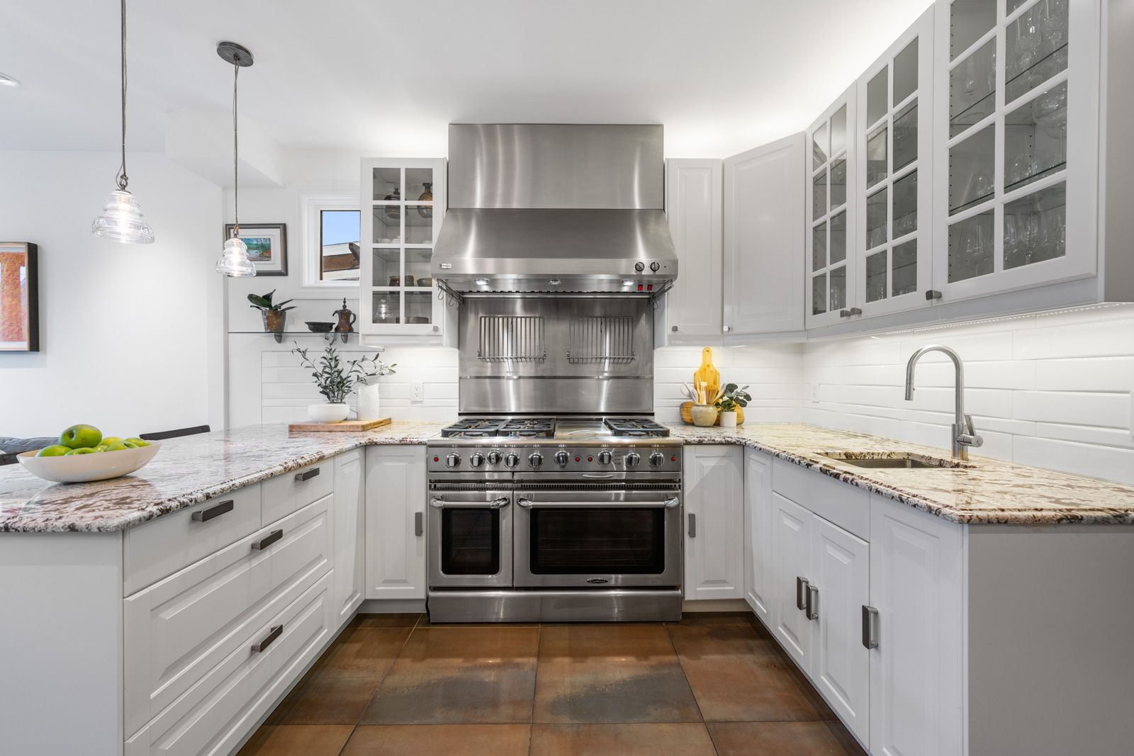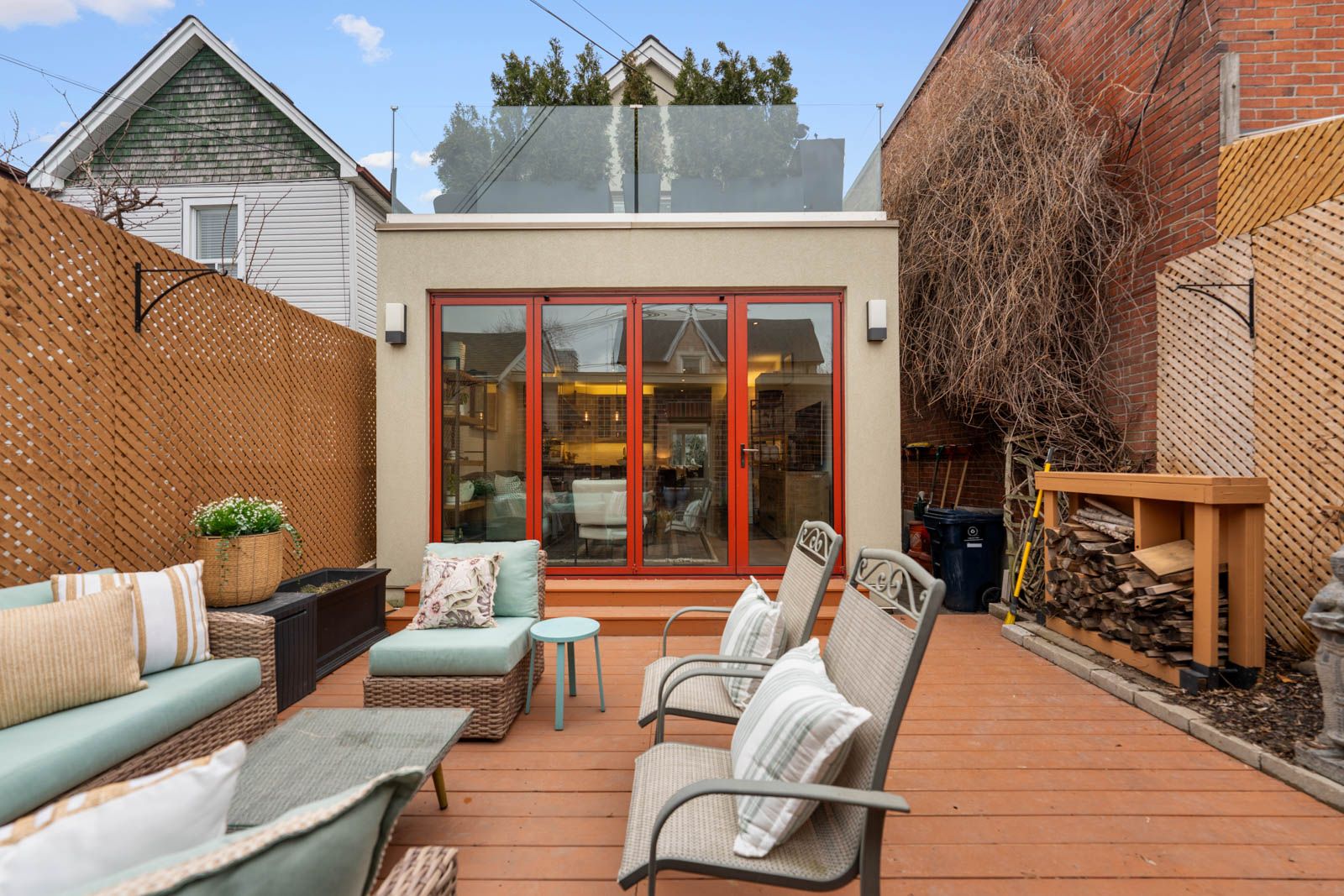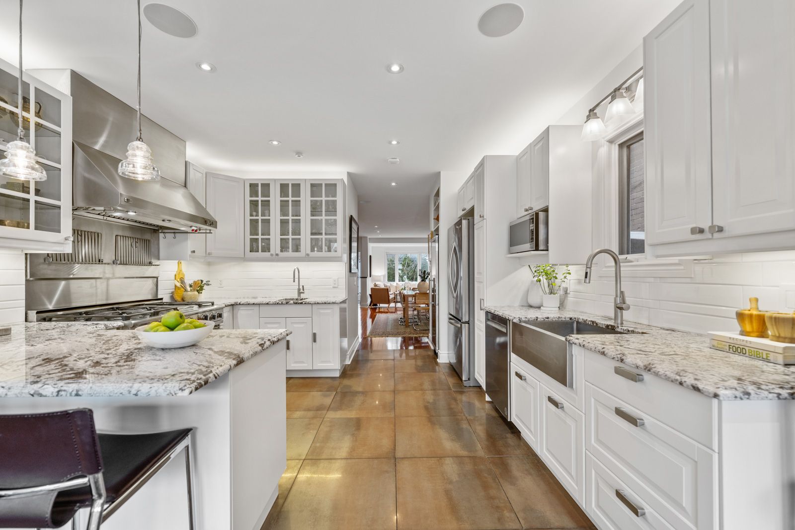 • Expansive kitchen flowing into a family room with floor-to-ceiling tri-fold doors.