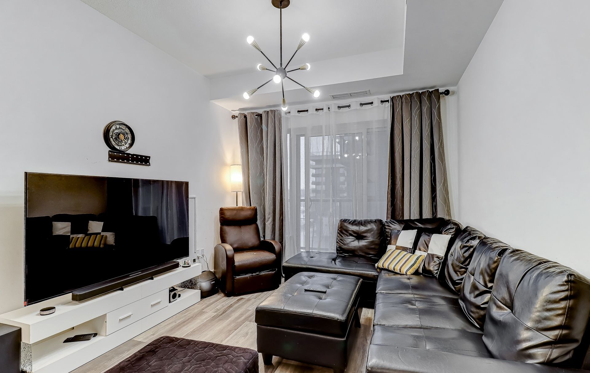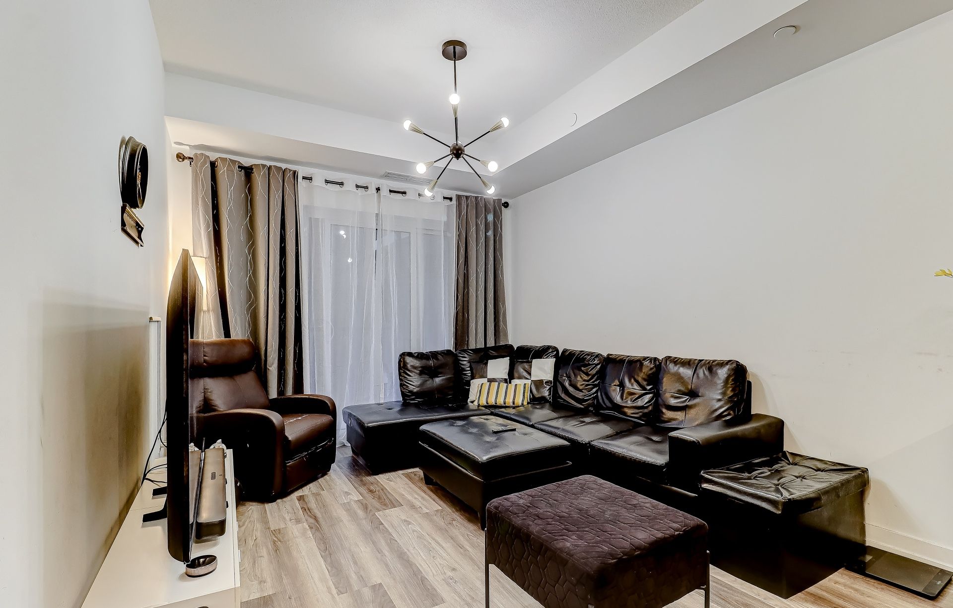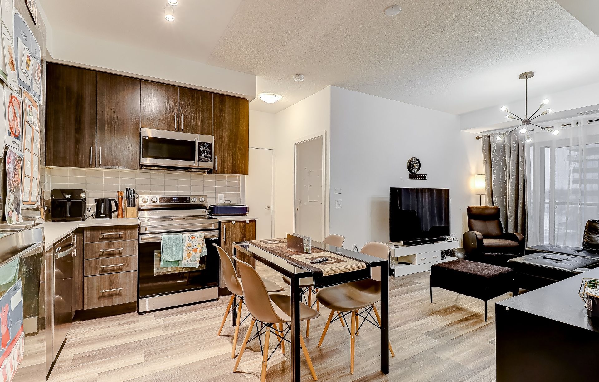 Own this stunning one-bedroom plus den that fits like a bedroom in the sought after uc1 building! This unit is truly a standout. Enjoy the amenities that elevate your lifestyle, including 24hr security, gym, yoga room, pet wash station, party room, guest suite, a rooftop terrace with breathtaking views, and a rooftop pool! Maintenance fees include heating, air conditioning, androgers high speed internet/cable. Step into a modern suite with an open- concept layout, completed with sleek stainless steel appliances. The bedroom is bathed in natural light, creating a serene sanctuary for rest and relaxation. Experience the ultimate convenience of living walking distance tothe go station, pickering t own centre, restaurants, & pickering waterfront. This is more than just a home; it's a lifestyle! Don't miss out on the opportunity to own this incredible condo in a prime location. Large 1 bedroom + den and only 3 years new condo for sale in pickering on the 3rd floor of theuniversal city . Just 5 min walking distance to pickering go station where you can take train and reach downtown toronto in 30 minutes. One of the largest 1+den unit in the building with 671sqft of living area and large 105 sqft of balcony with a total 776 sqft of total space. Den is slightly smaller than master bedroom and can be used as a 2nd bedroom or small living/family room or entertainment room. Laundry is in the unit. Lots of high end upgrade including large kitchen cabinets, double sink in the kitchen and luxury vinyl plank flooring throughout the unit except in laundry room and washroom. Stainless steel fridge, dishwasher, over the head microwave and stove. Laundry is in the unit. Resortstyle amenities on the 7th floor including outdoor pool, rooftop terrace and cabanas, barbeque area, billiard, lounge, party room, dining room and catering kitchen. Ground floor amenities include fitness centre, y oga studio, pet spa and 24hrs concierge.