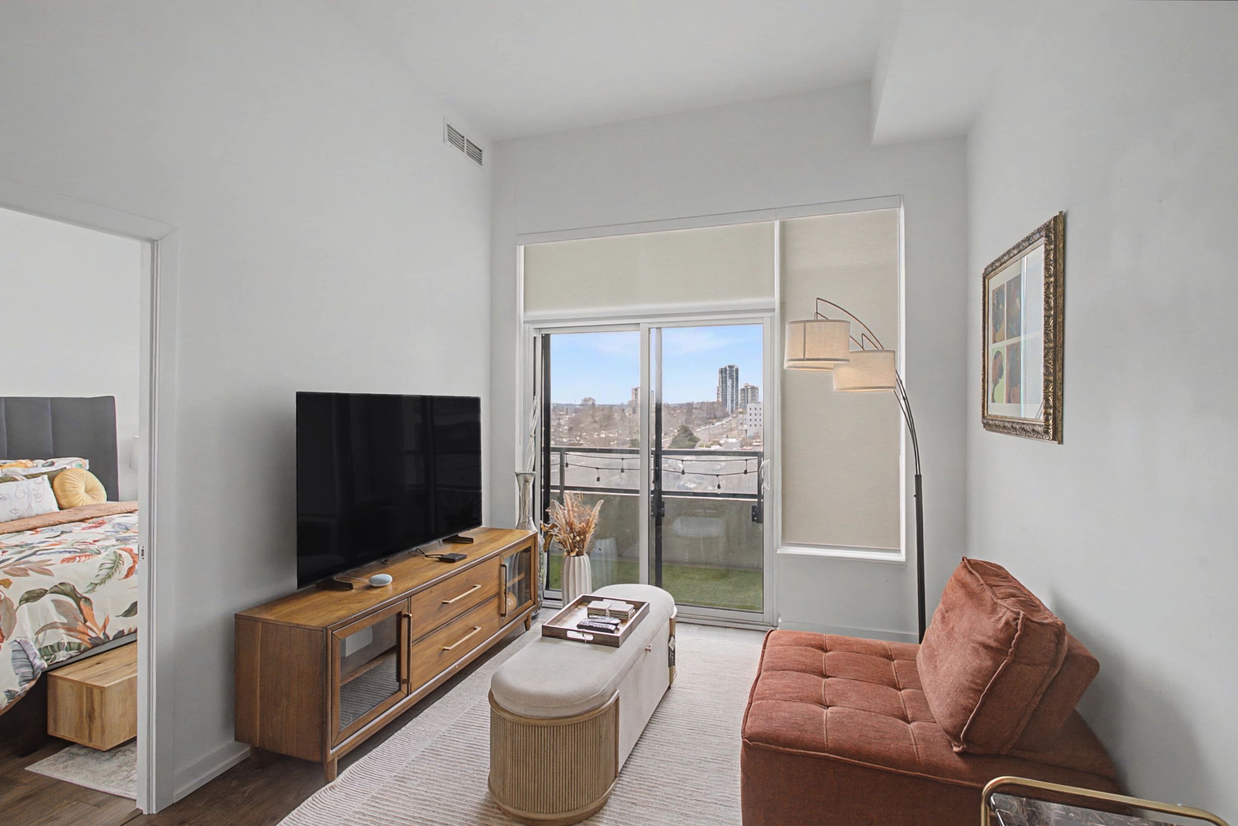 • Resort-style amenities include a rooftop pool, BBQ area, and party room.