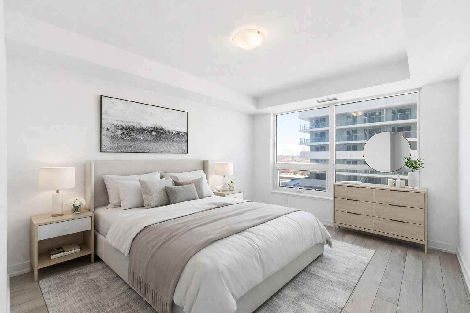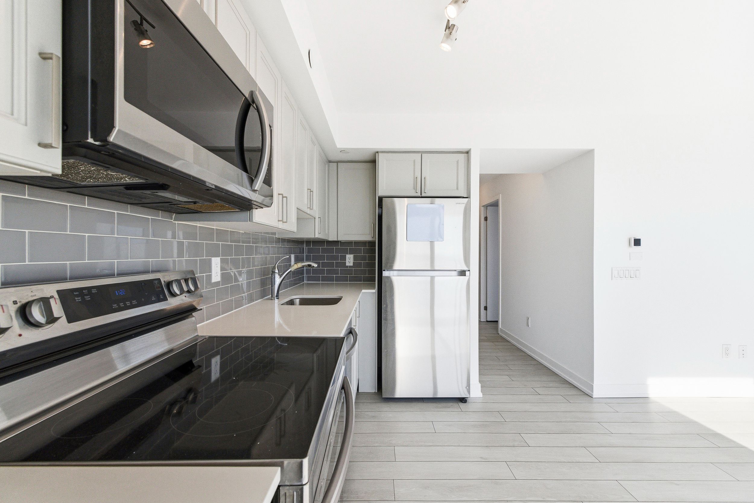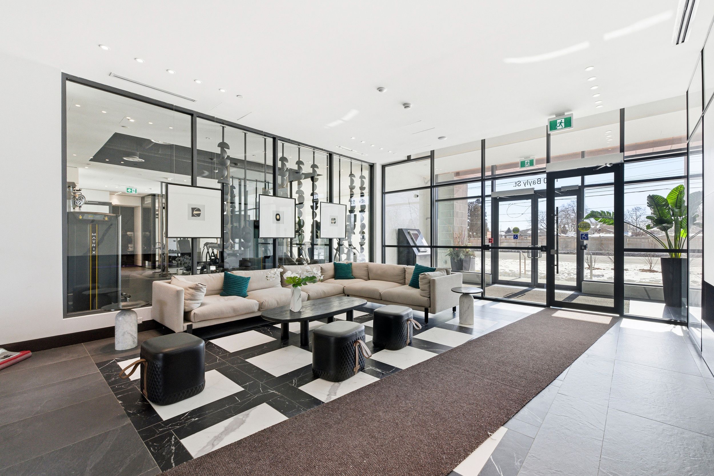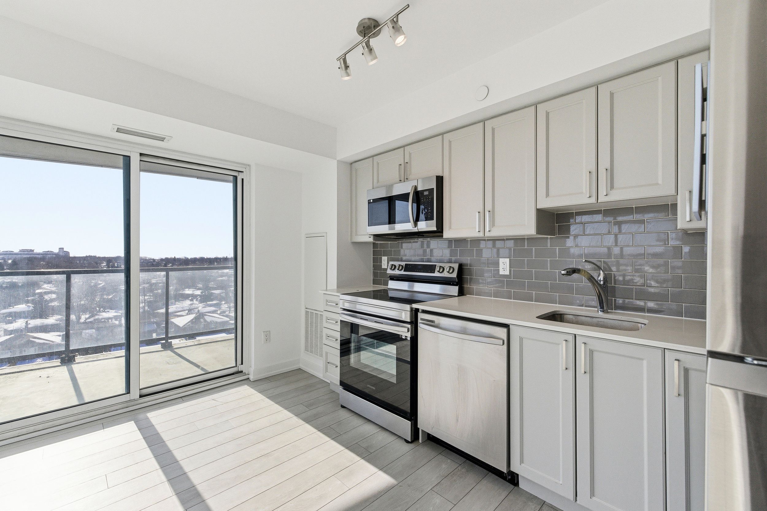 Welcome to universal city condos. This bright and modern 2-bedroom plus den, 2-bath suite features a functional open-concept layout and desirable southeast exposure, allowing for abundant natural light throughout the day. The unit offers two private balconies, perfect for enjoying morning sun and outdoor living. The contemporary kitchen is equipped with brand new stainless steel appliances, including fridge, stove, dishwasher, microwave, and exhaust fan, along with an upgraded extra-height cabinet above the fridge for added storage. Ideally located just steps to pickering go station and minutes to highway 401, pickering town centre, durham live casino, the marina, and scenic waterfront trails. Residents enjoy resort-style amenities such as an outdoor pool, fitness centre, party room, and 24-hour concierge, offering a convenient and well-connected lifestyle in one of pickering's most sought-after communities.