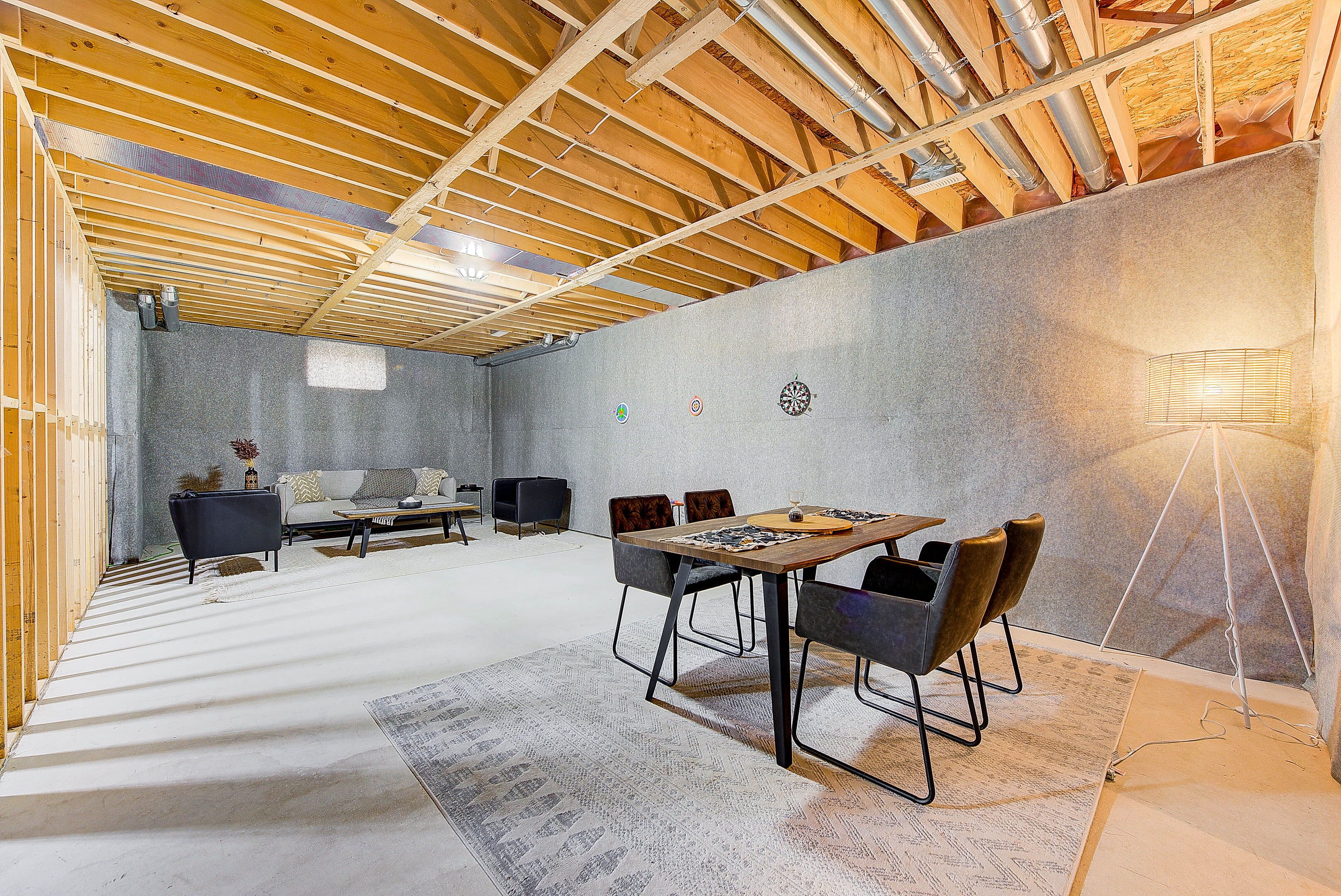 • Unspoiled basement with side entrance and bathroom rough-in for future potential.