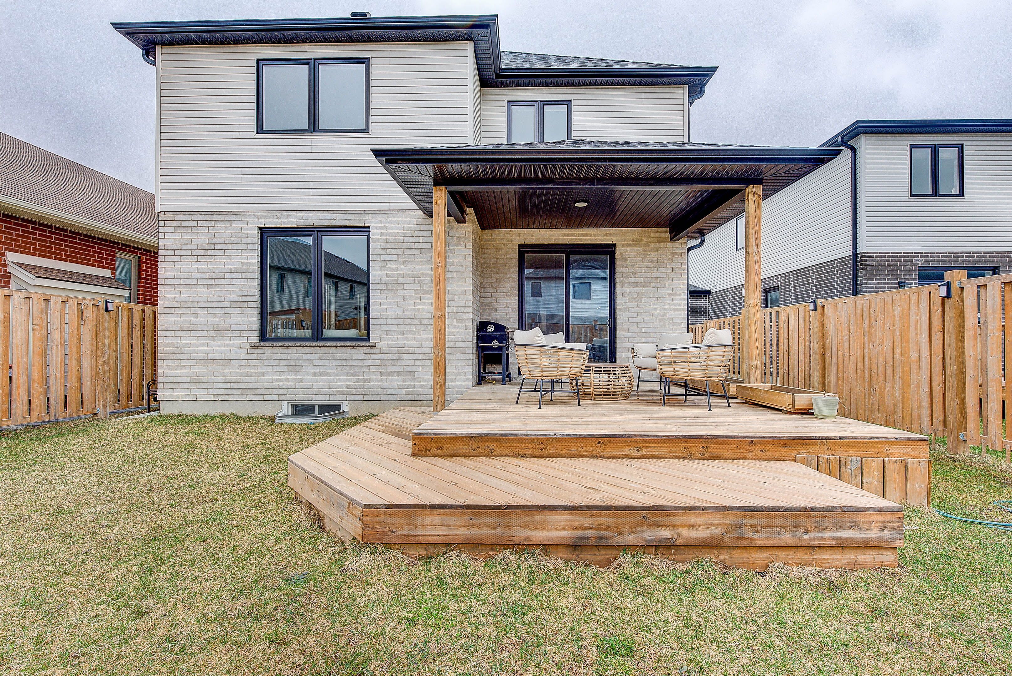 Welcome to 1480 medway park drive. This 2,590 sq. Ft. Home features a modern open-concept floor plan with premium finishes. The main level offers a contemporary kitchen with stainless steel appliances, bright living, dining, and sitting areas, and a spacious mudroom with ample storage. Walk out to a custom covered deck with natural gas connection, overlooking a fully fenced yard. The second level includes 4 bedrooms and 3 full bathrooms. The primary suite offers a large walk-in closet and a 5-piece ensuite. The unspoiled basement includes a builder-installed side entrance and bathroom rough-in, providing excellent potential for an accessory dwelling unit (adu) or in-law suite. Currently used as a game room. Conveniently located close to schools, including the new north west public school, and all nearby amenities.