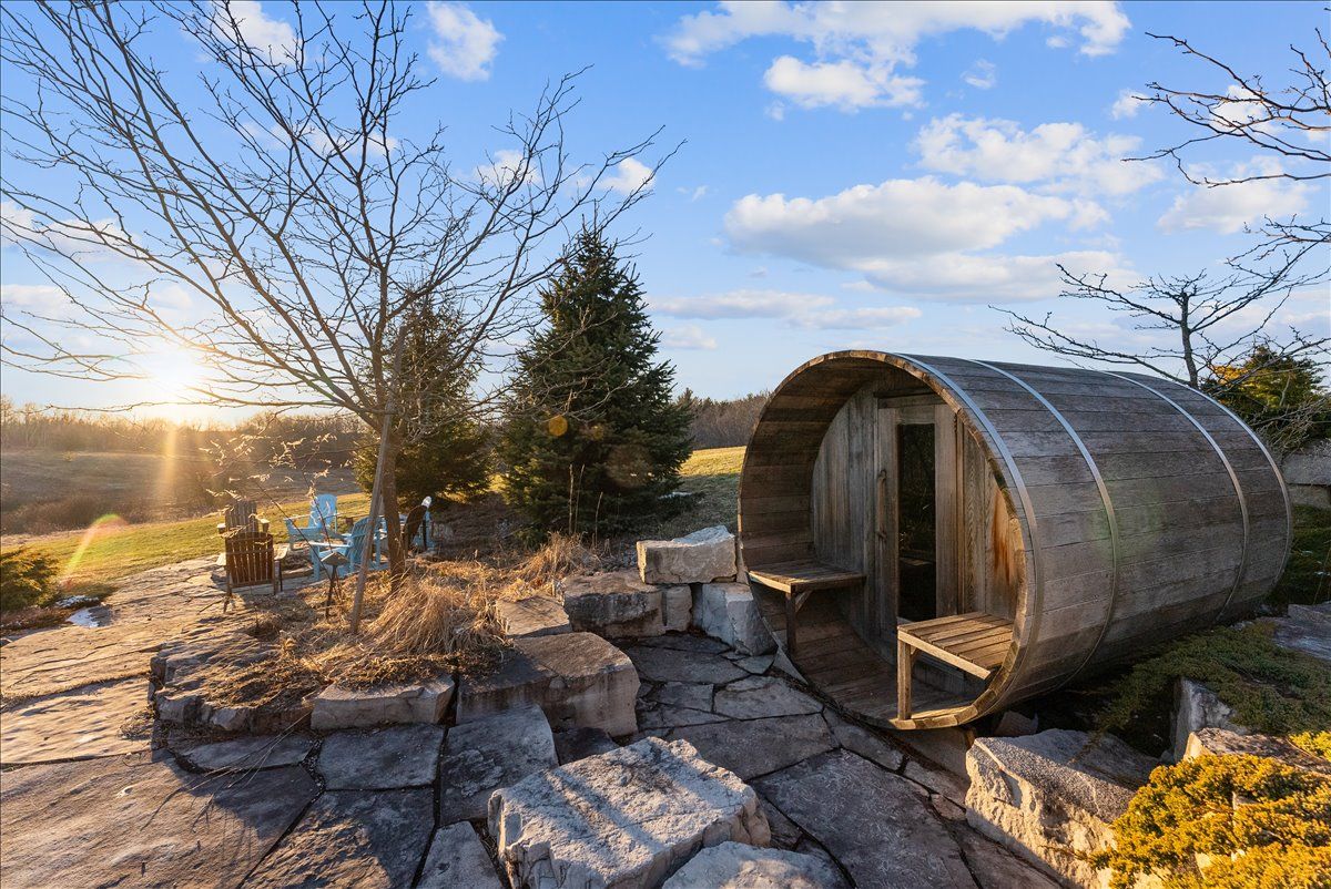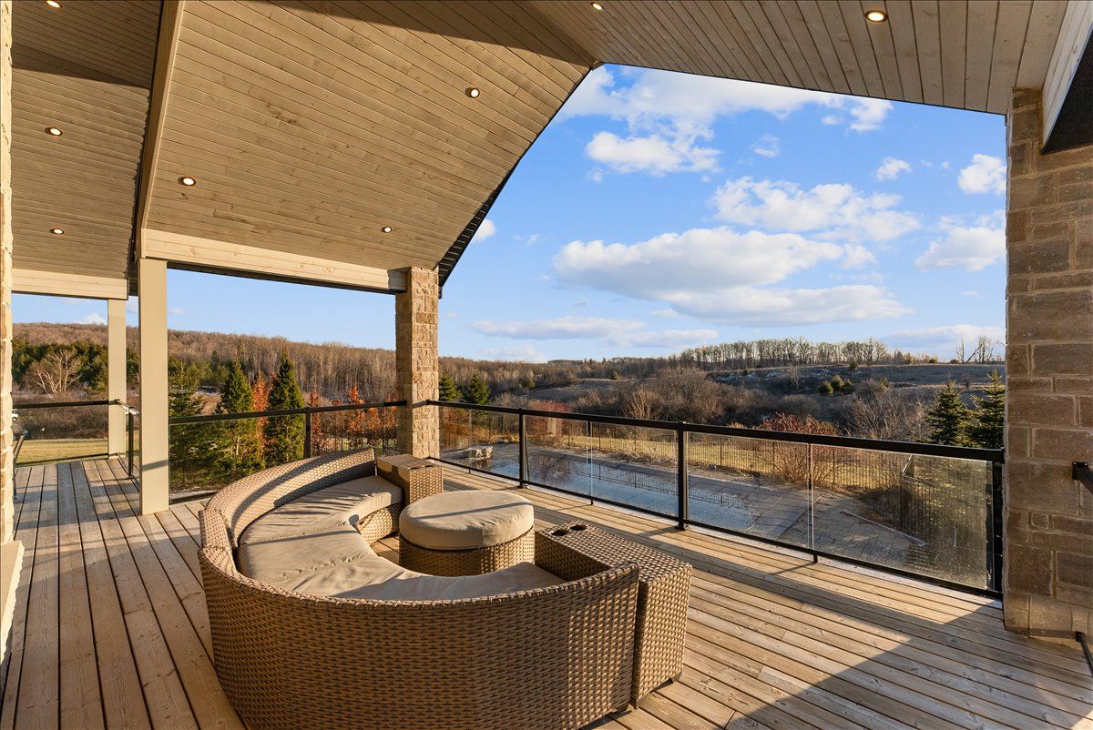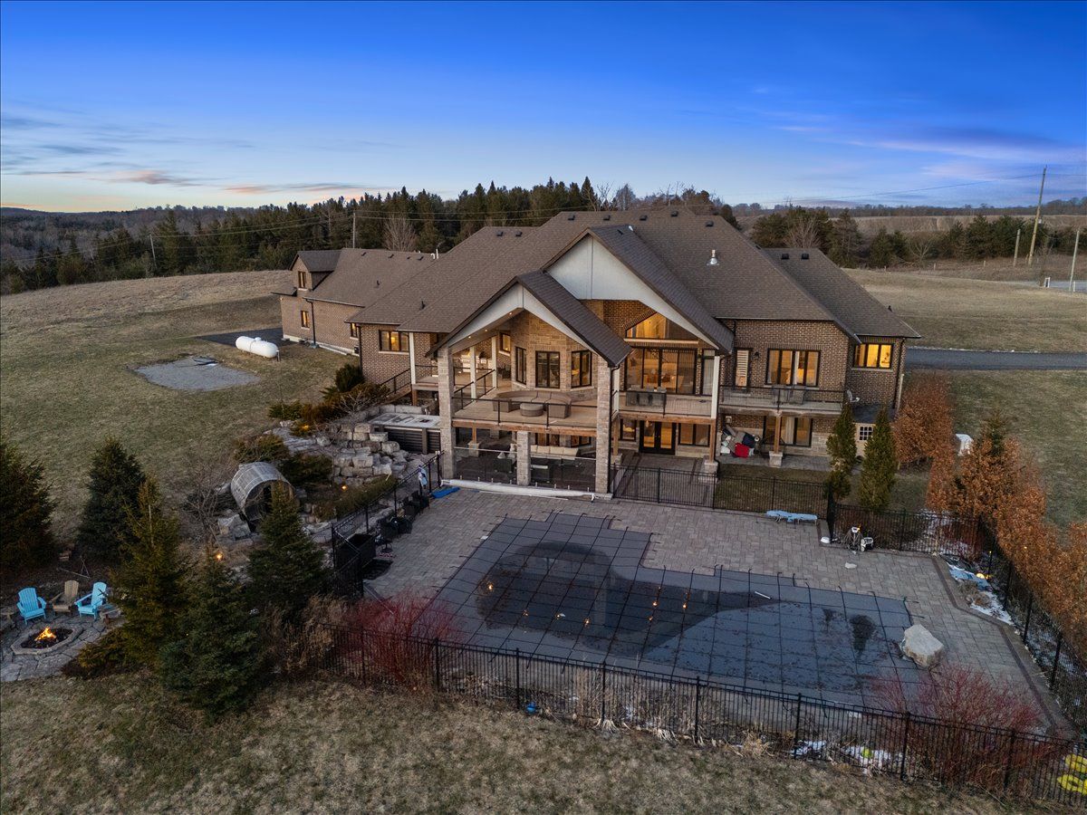 Welcome to 14806 york durham line-an extraordinary custom-built stone & brick estate set on a breathtaking 11. 3-acre private retreat in whitchurch-stouffville. Offering nearly 8,000 sq ft of refined living space, this home showcases exceptional craftsmanship, upscale finishes, and a layout designed for both everyday comfort and grand entertaining. The open-concept great room impresses with soaring vaulted ceilings and a striking 4-ft linear fireplace, while the chef-inspired kitchen features maple cabinetry, stone countertops, a large centre island, premium thermador professional appliances, and a well-appointed butler's pantry with abundant storage, an additional fridge, and prep sink-perfect for seamless entertaining. The luxurious primary suite is a true sanctuary, complete with coffered ceilings, a spa-like 5-piece ensuite, custom walk-in closet, and a private balcony overlooking the serene grounds. Each additional bedroom is generously sized with its own private ensuite and large closet, offering comfort and privacy for family and guests alike. A versatile loft provides extended living space with potential for multi-generational use, while the walk-out lower level is fully equipped with a theatre room, gym, and bar-perfect for entertaining. Step outside to your own resort-style oasis featuring a saltwater pool, sauna, hot tub, and expansive outdoor living spaces surrounded by nature and complete privacy. Located minutes to musselman's lake, stouffville, ballantrae, aurora, markham, hwy 404, york regional forest, and approximately 40 minutes to toronto, this property offers the perfect balance of luxury living and convenient access. A professional feasibility report has been completed and will be provided, outlining that the property supports continued use as a luxury estate with potential for additional accessory structures (such as a cabana or pool house), while preserving its natural surroundings and long-term privacy.