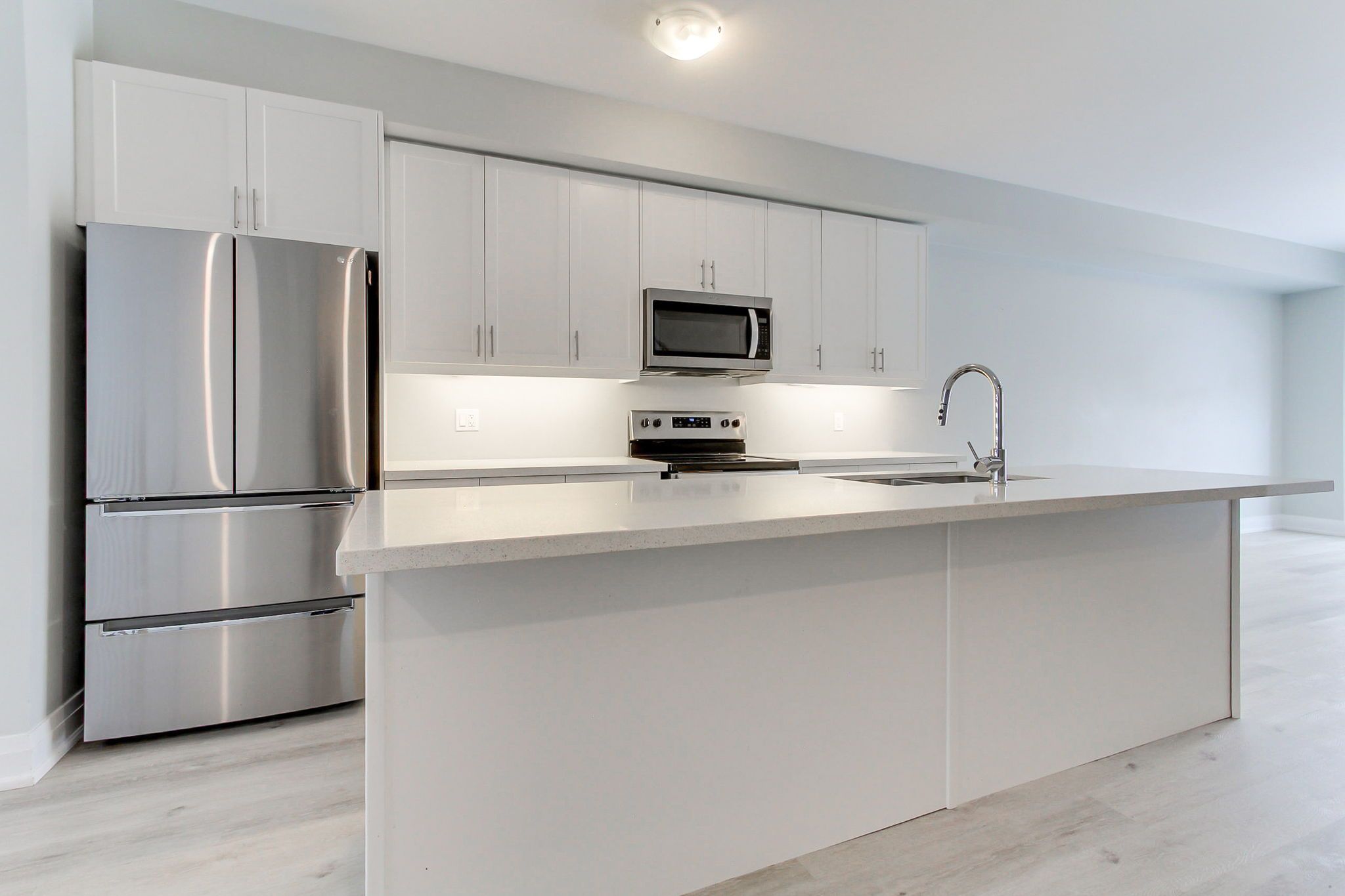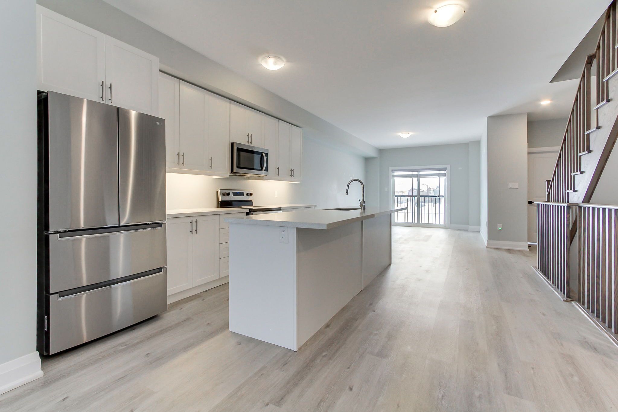 Welcome to this beautifully appointed executive townhome. The exterior facade is complimented by harmonizing ledger stone, siding and black trim to complete this modern look. Inside, the home boasts numerous pot lights, high end window coverings, luxury vinyl plank flooring and ceramic tile throughout. All levels are connected by oak staircases stained to accompany the entire interior colour palette. The main floor also enjoys 10' ceilings with over sized windows to the north and south for an enormous amount of natural light. The wide open concept main floor, is centred by the kitchen, with the family room and dining room on either side for an incredible entertaining experience. The oversized breakfast bar/island in the kitchen is the central point of the main floor. The kitchen is highlighted with a double sink, quartz countertop and is loaded with cupboard space. All of the closets throughout have updated organizers for maximum space efficiency. The large primary bedroom offers a 4-piece ensuite, walk-in closet and overlooks the backyard and the strip of greenbelt immediately past the lot line. The walkout basement is fully finished with a sliding door for easy back yard access and enjoyment. For added convenience, the basement also offers access to an oversized 1-car garage with a large, separate storage room. Lefroy is a growing community with excellent growth potential and exciting developments that are up and coming supporting property appreciation. The proximity to hwy 400, yonge street, lake simcoe waterfront, public transit, local attractions and all the amenities that innisfil has to offer make this a standout opportunity.