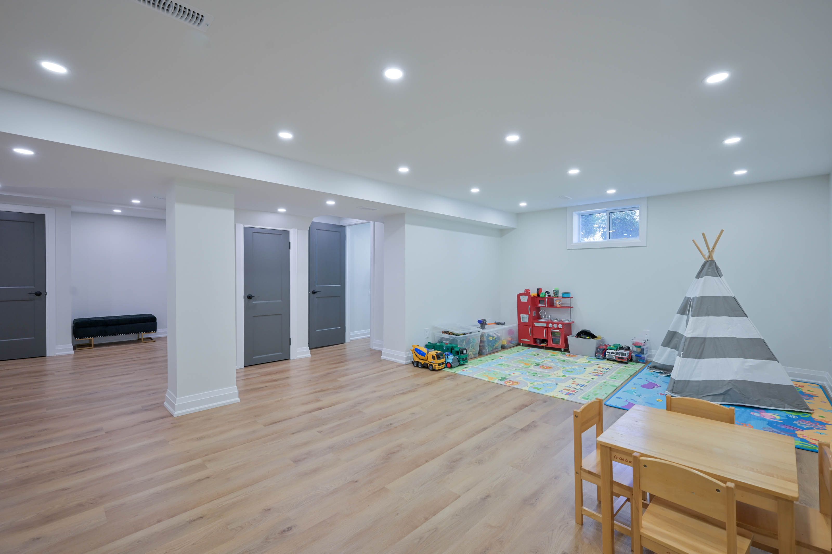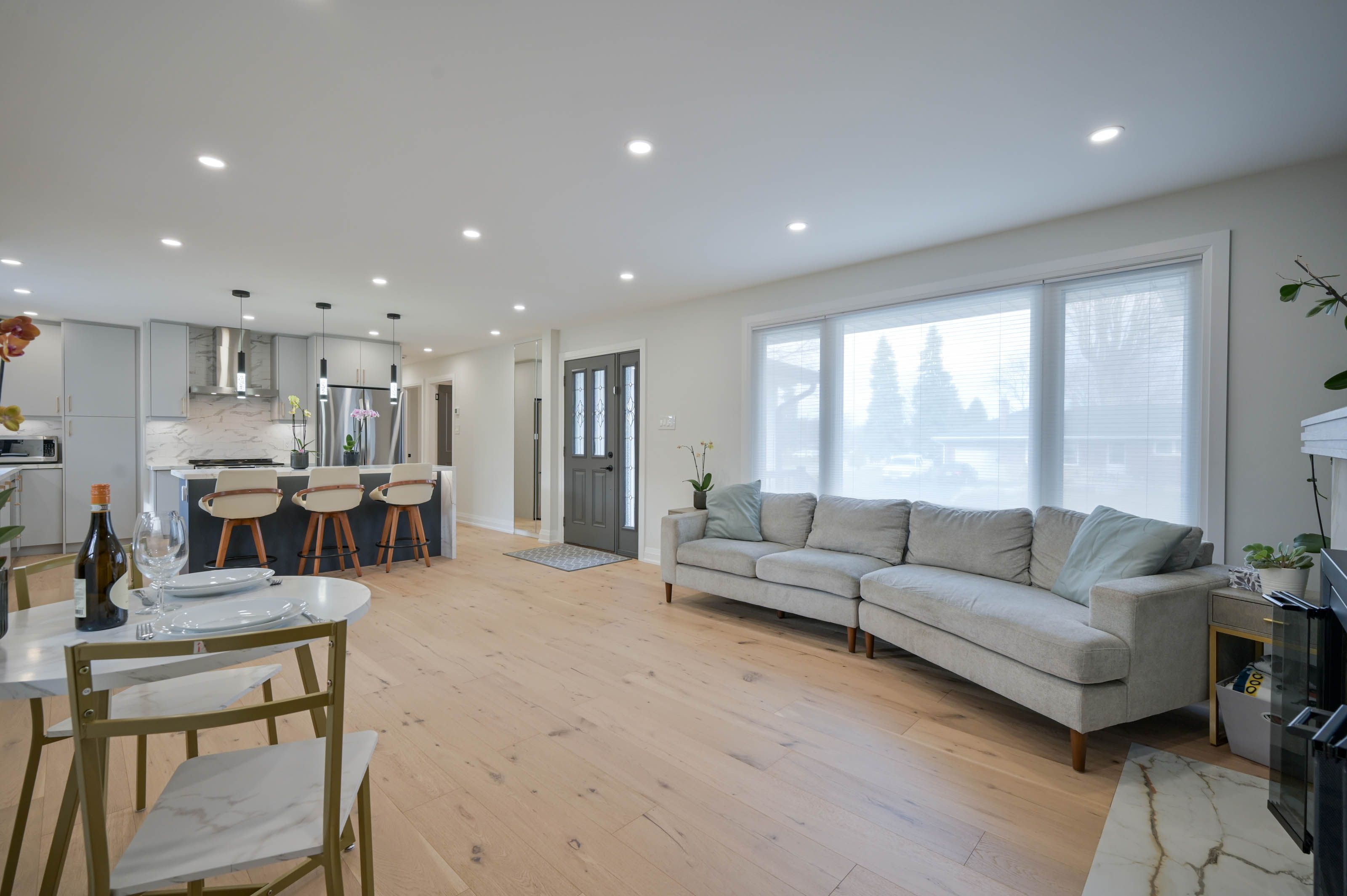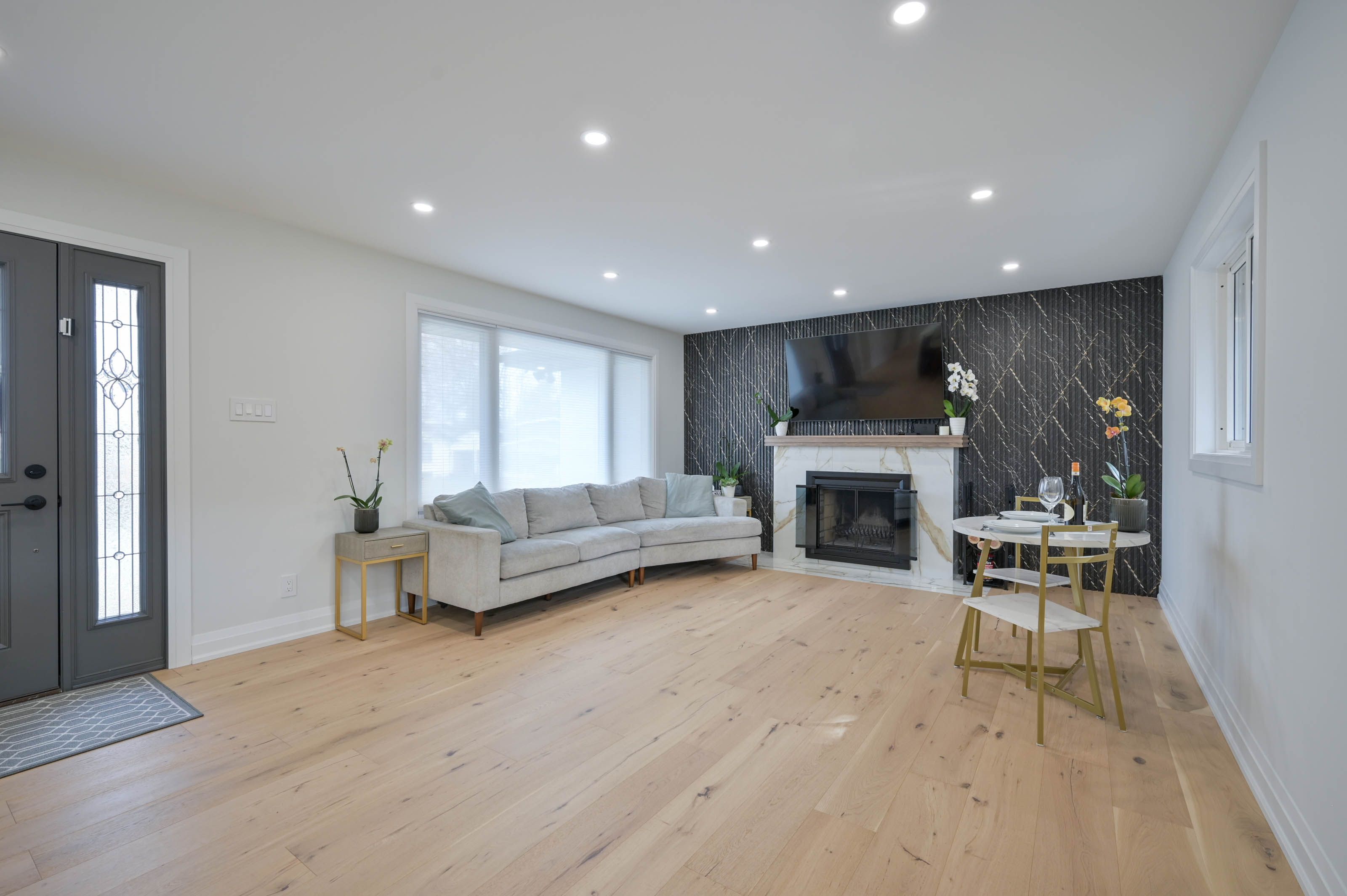 • Hardwood floors and pot lights throughout add a modern touch.