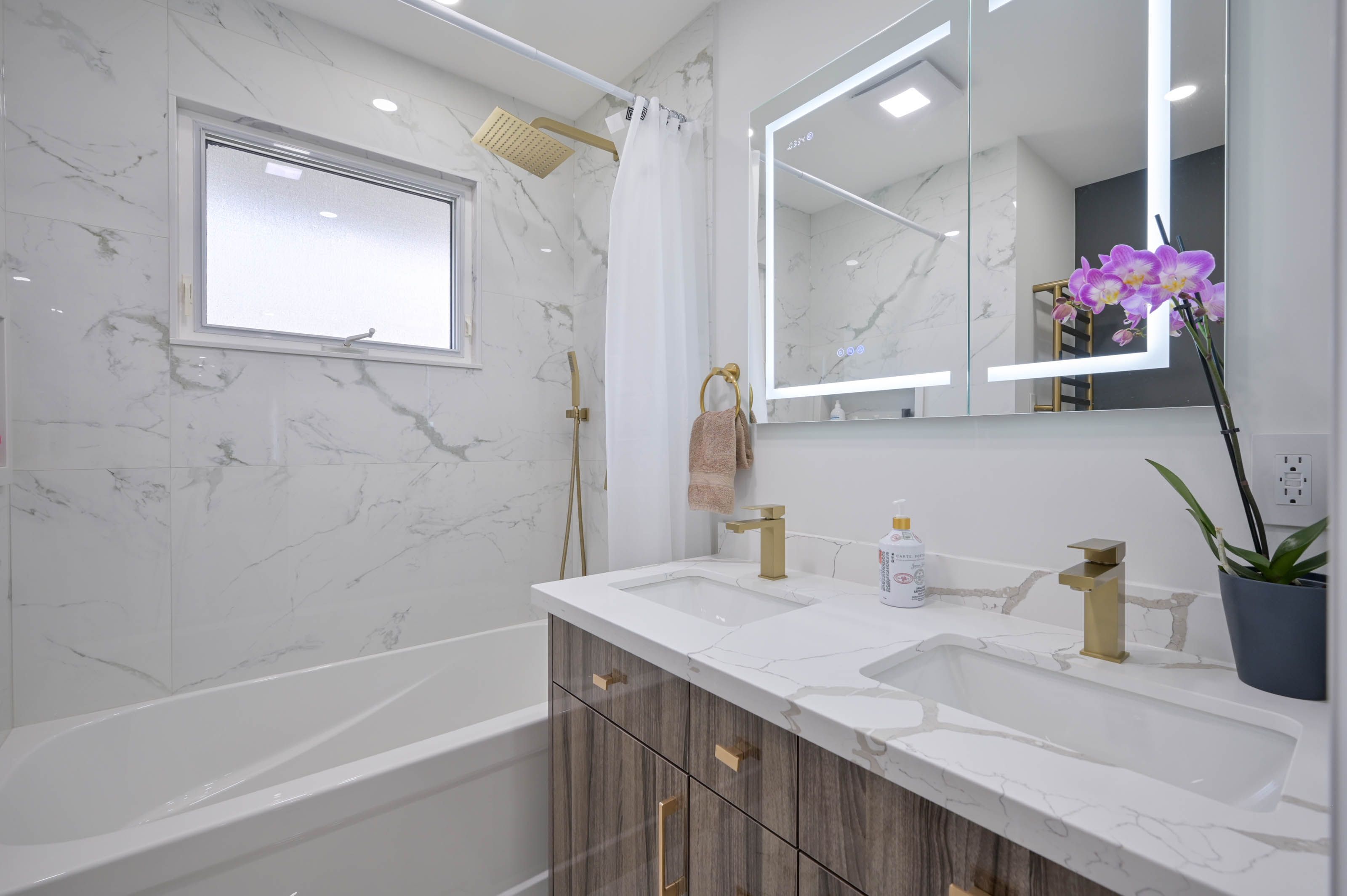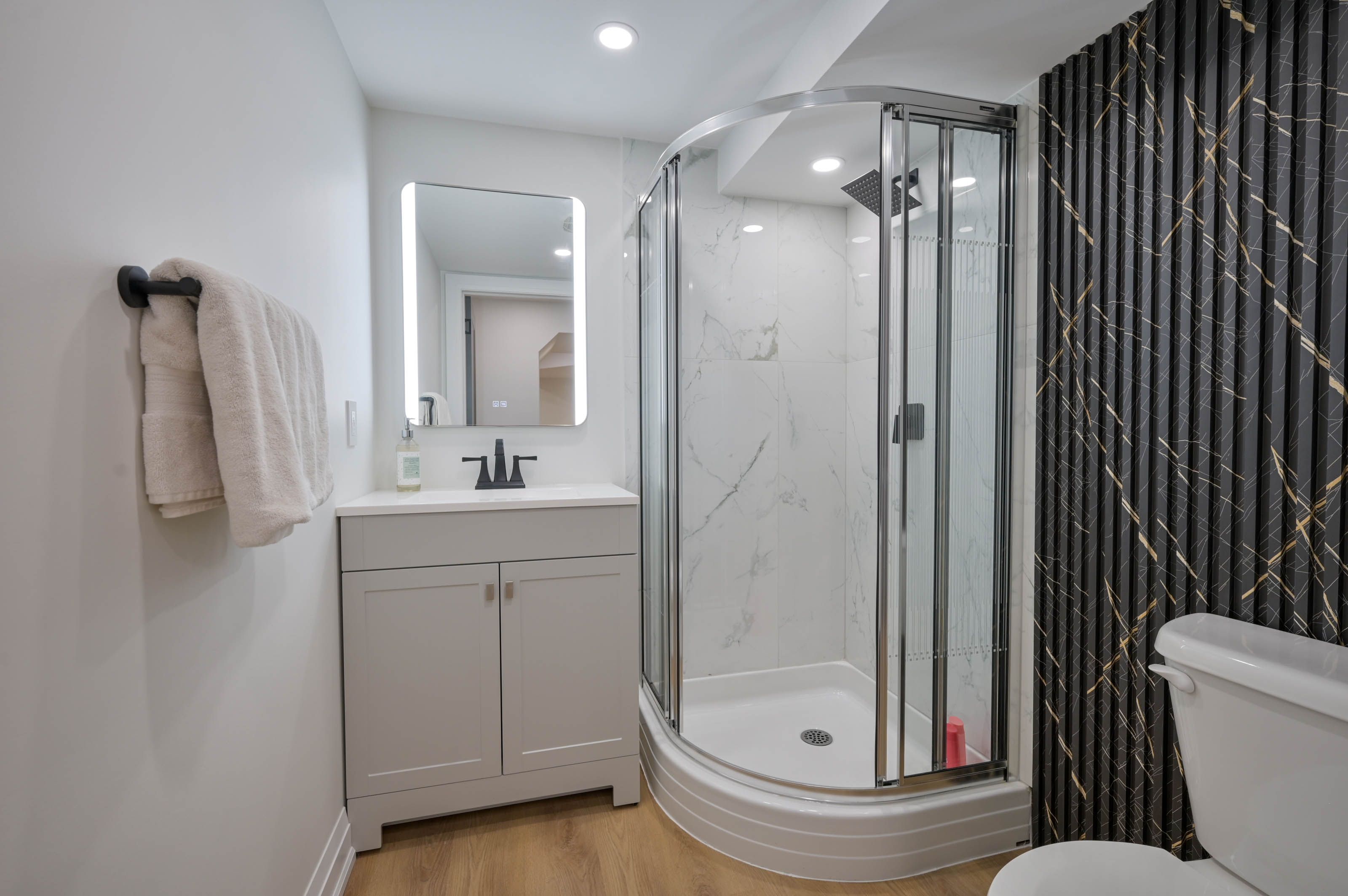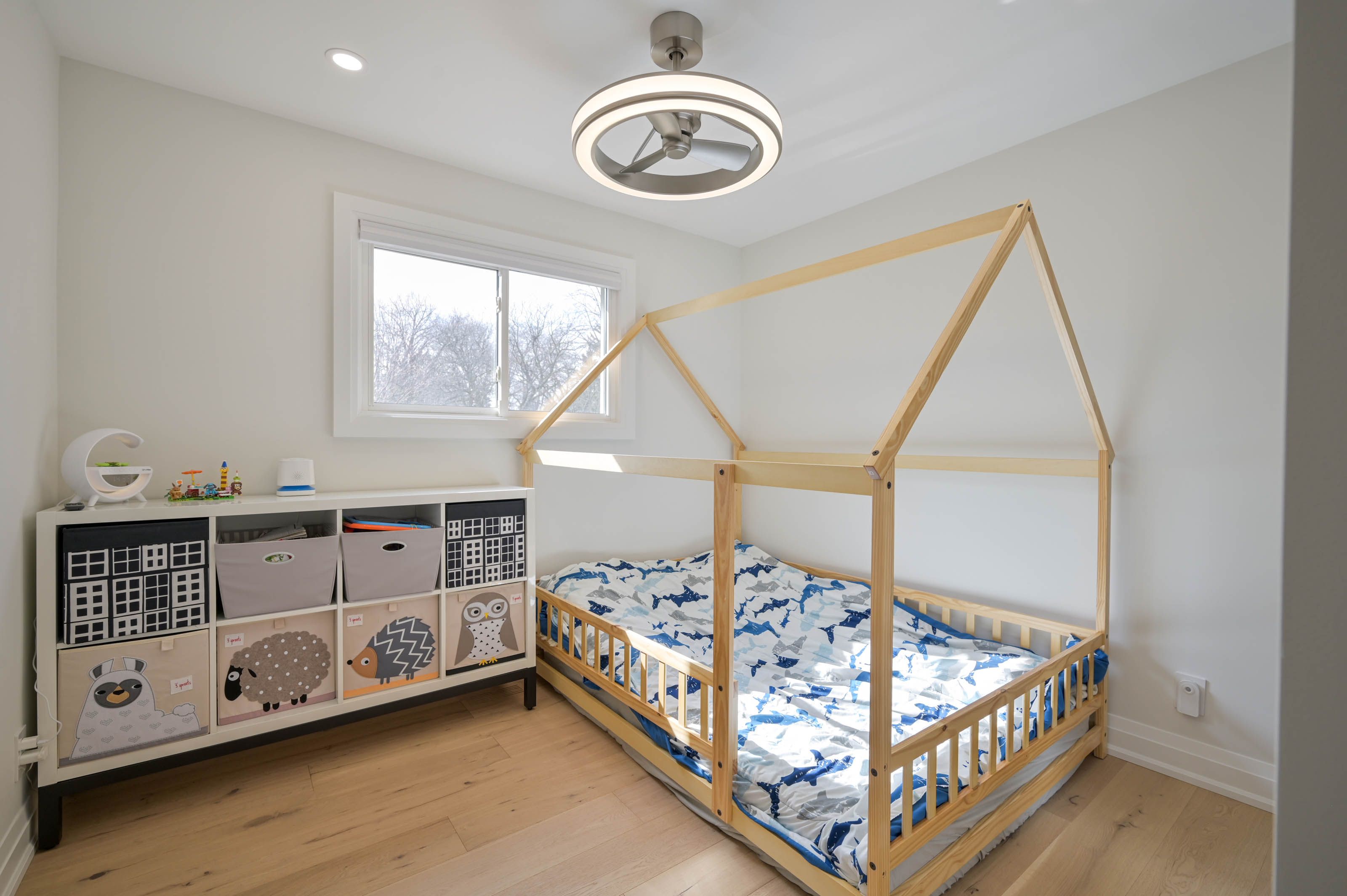 • Hardwood floors and pot lights throughout add a modern touch.