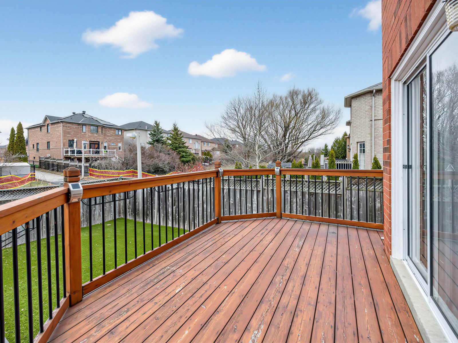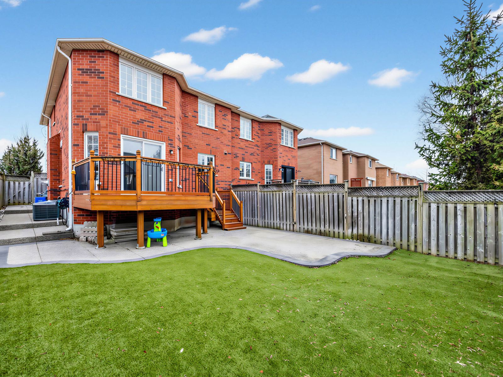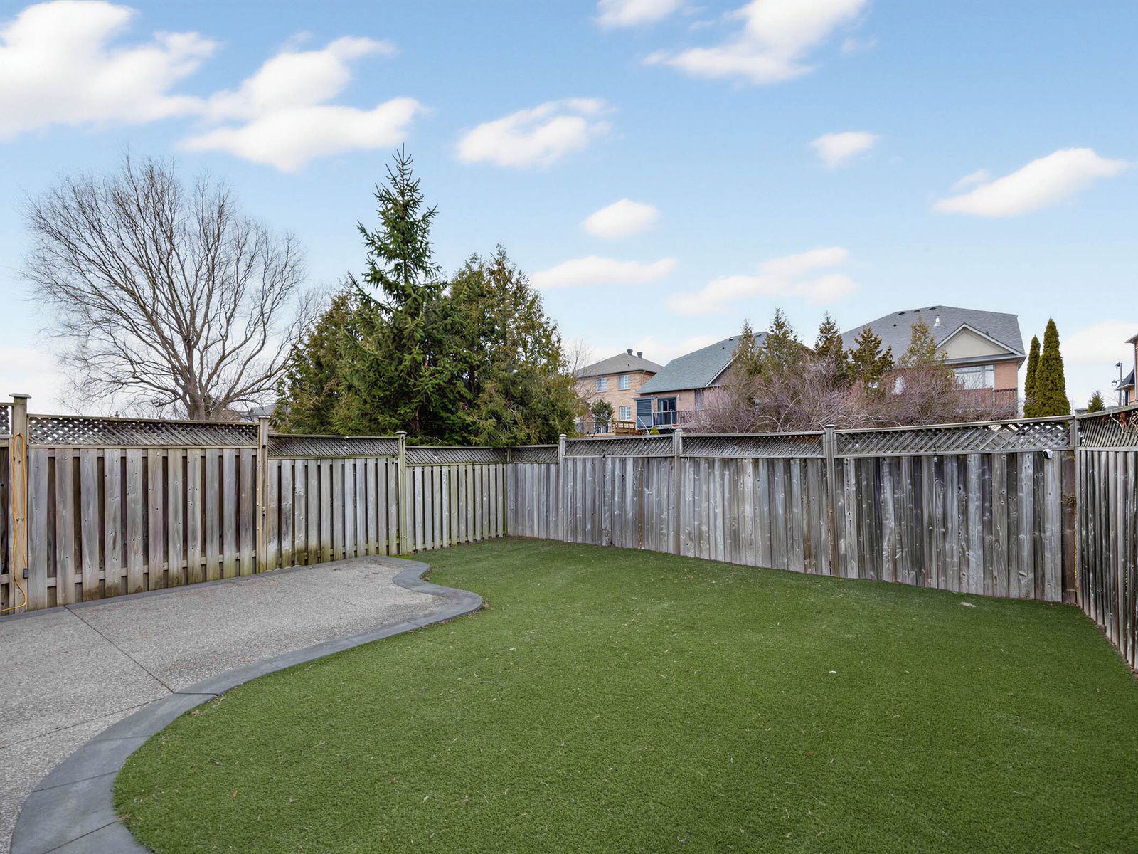 • Private backyard with low-maintenance synthetic turf and large deck for entertaining.