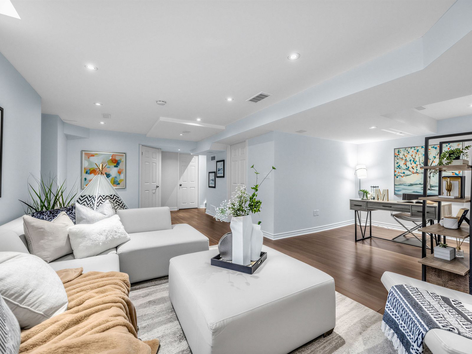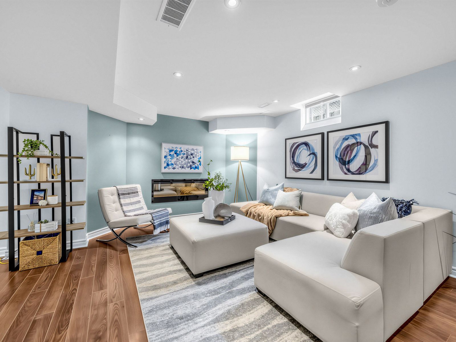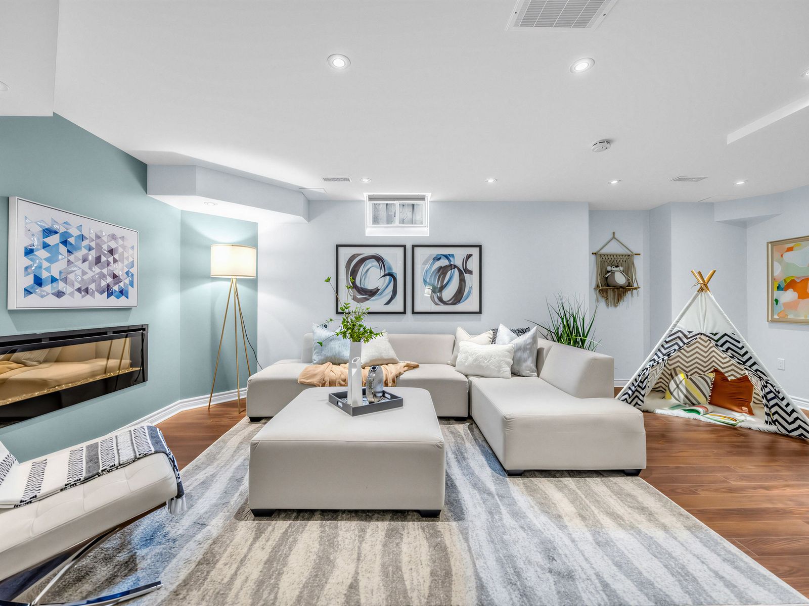 • Finished basement with electric fireplace, perfect for media or play areas.