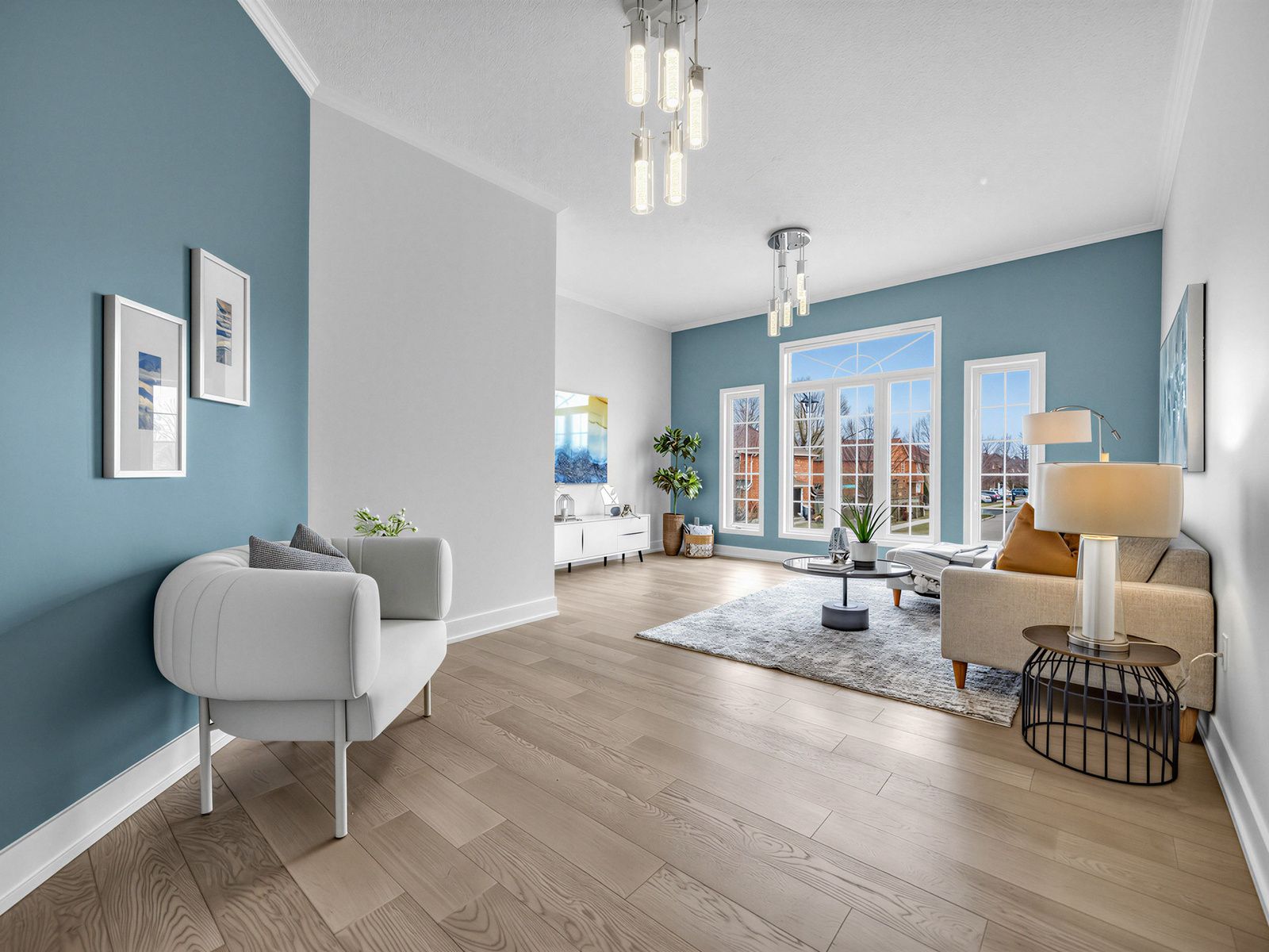 • Oversized family room filled with natural light, great for relaxation and gatherings.