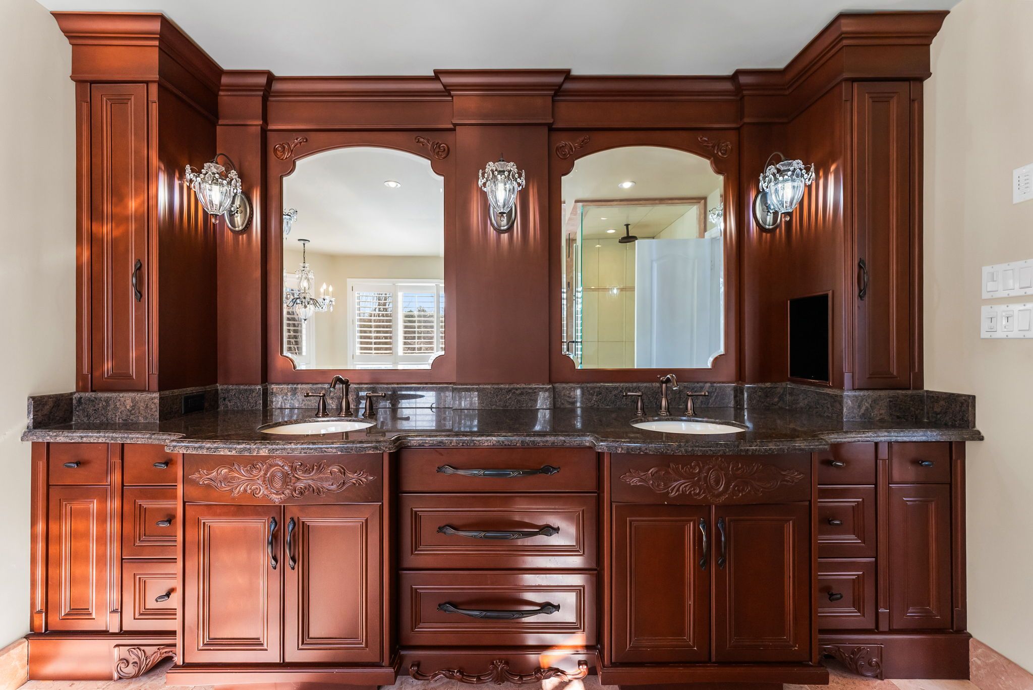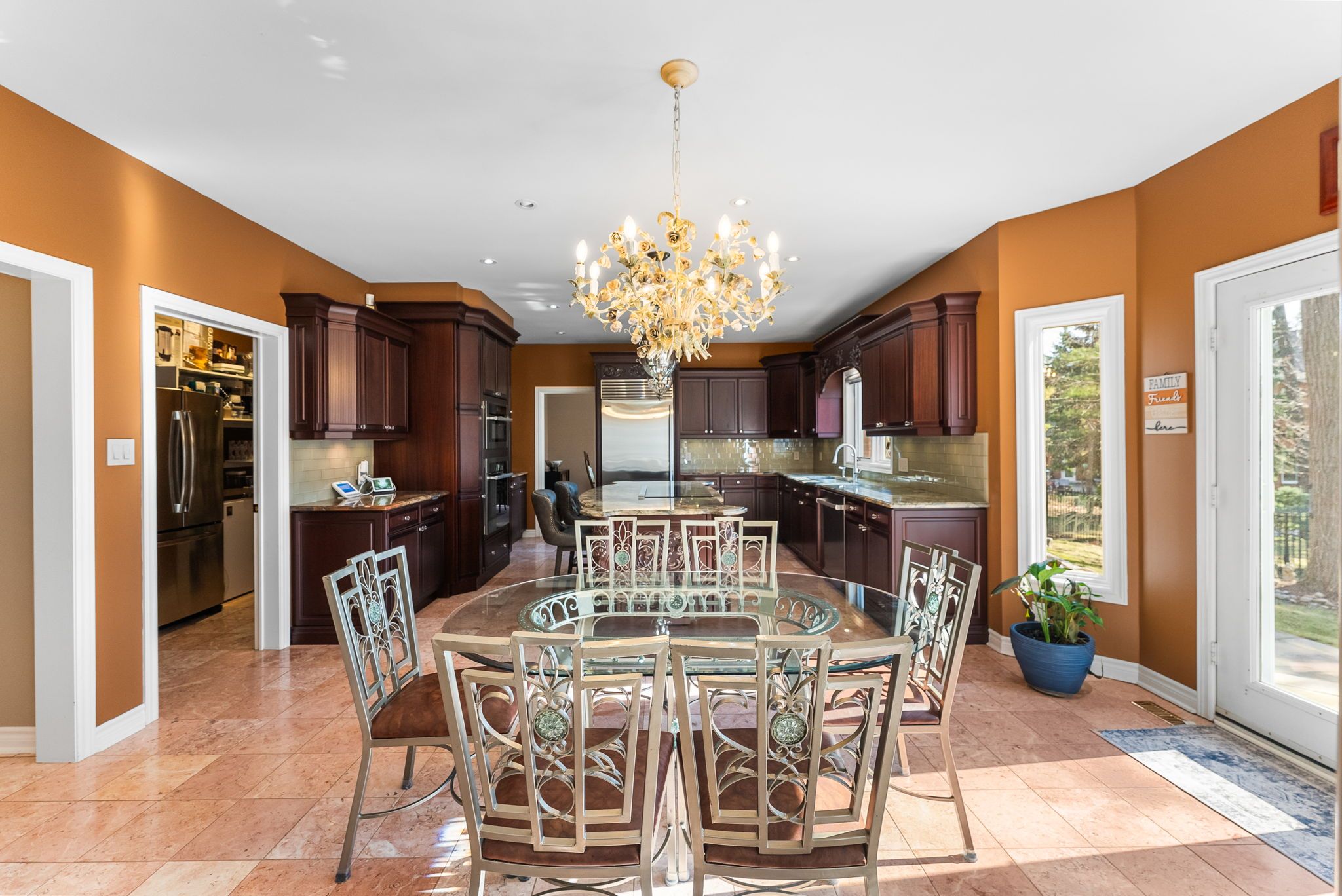 • Custom European-designed kitchen with premium appliances and oversized pantry.